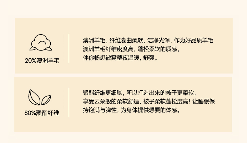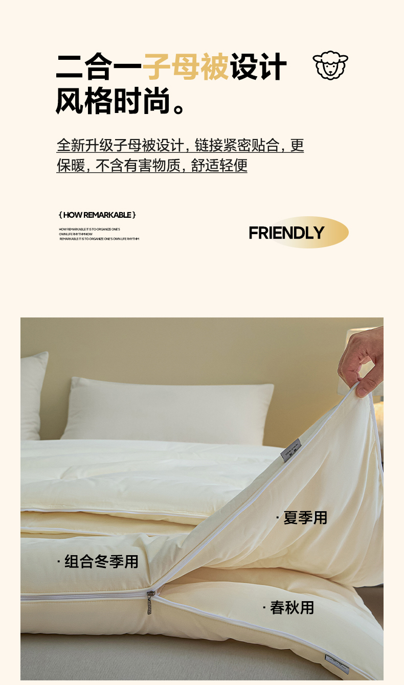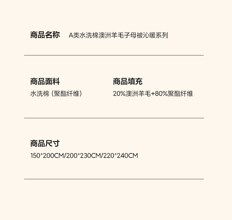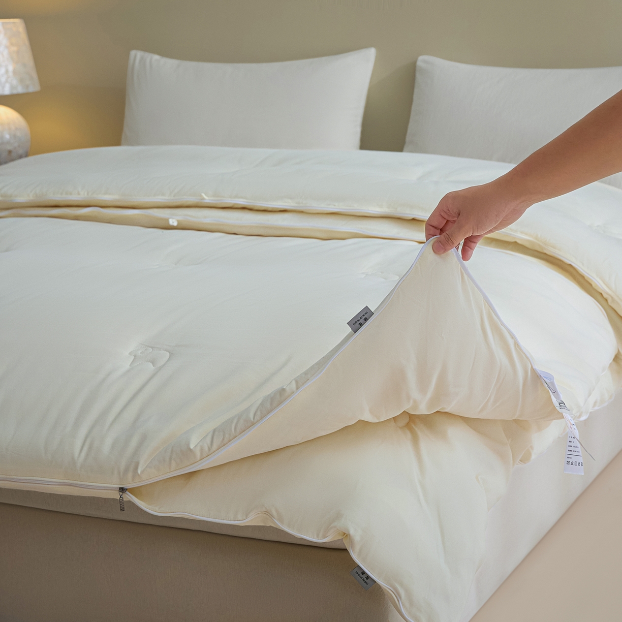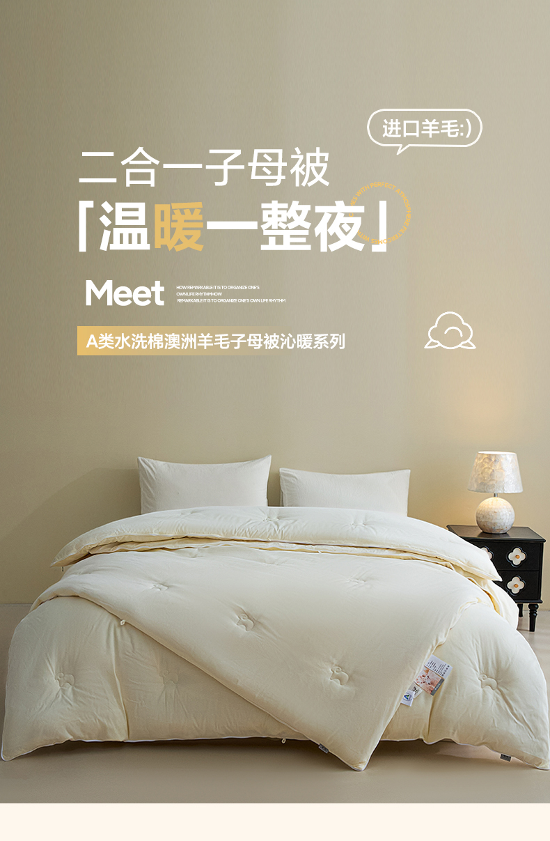 > 莱登卡奴 2025新款A类原棉澳洲羊毛纤维羊毛被沁暖系列被子被芯-子母被 子母被-沁暖奶白