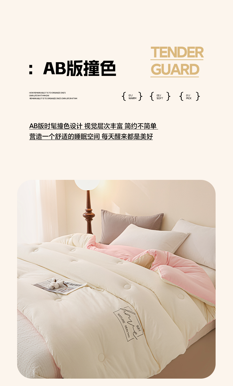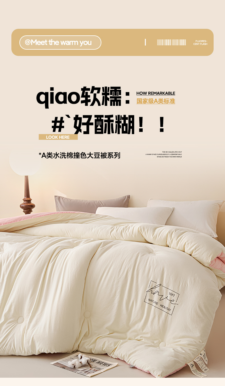 2025新款A类水洗棉撞色大豆被系列被子被芯