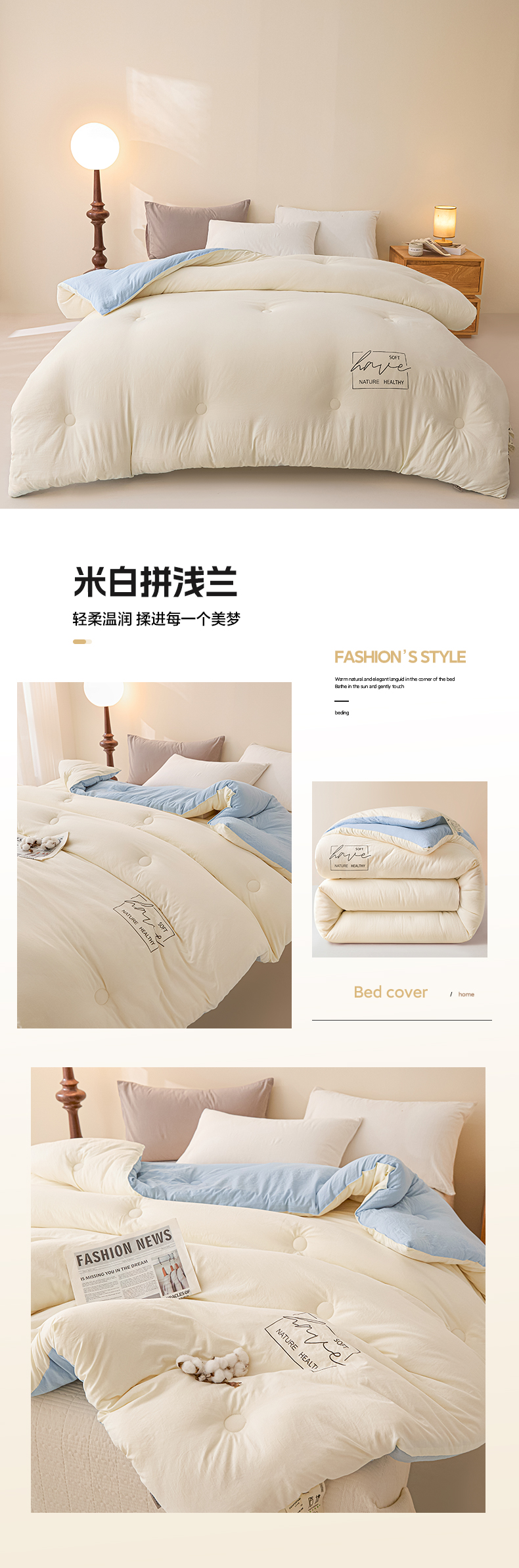 2025春夏款学生宿舍被芯A类原棉水洗棉贴标大豆被系列