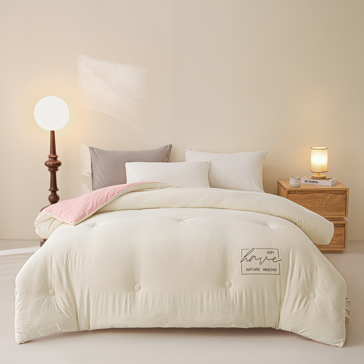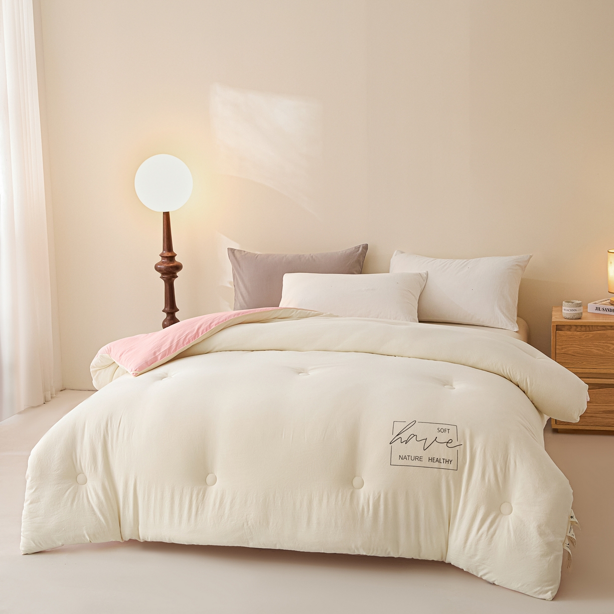 莱登卡奴 2025新款A类水洗棉撞色大豆被系列被子被芯-单被 米白拼玉