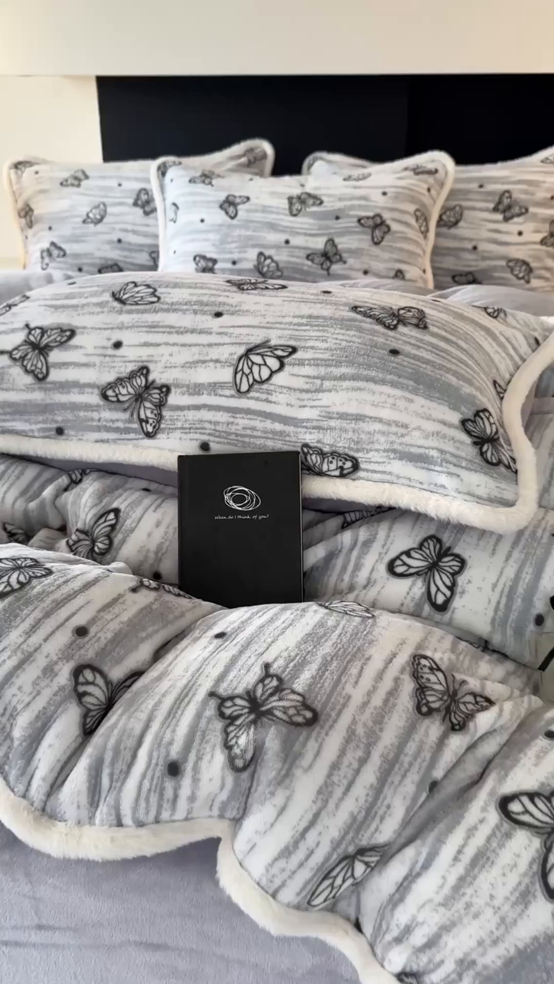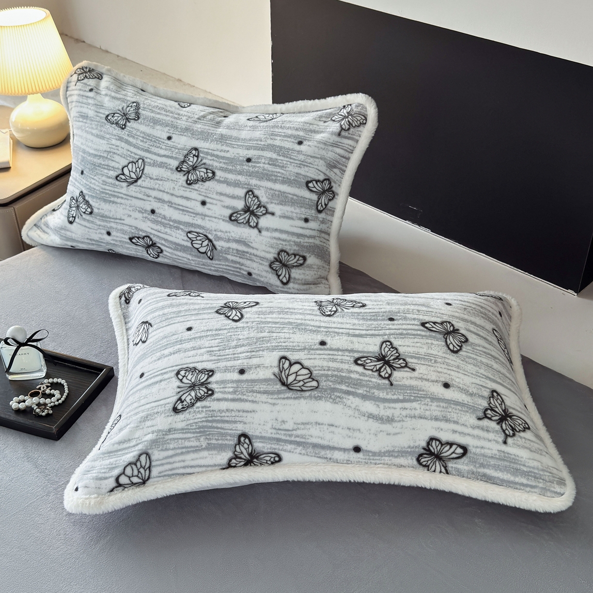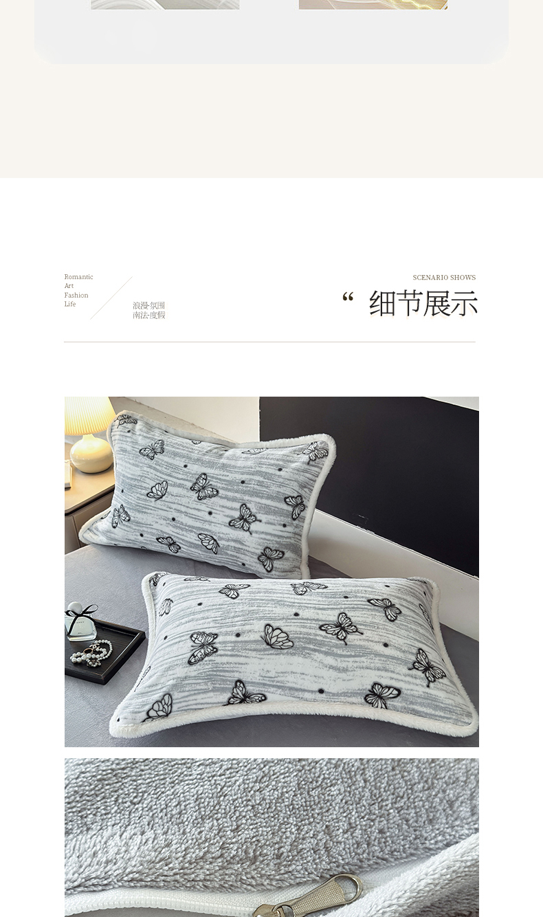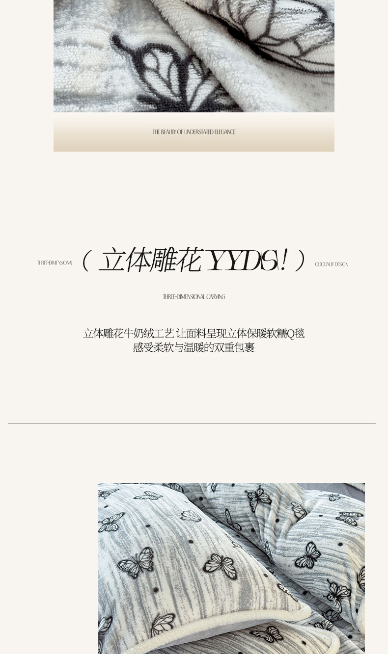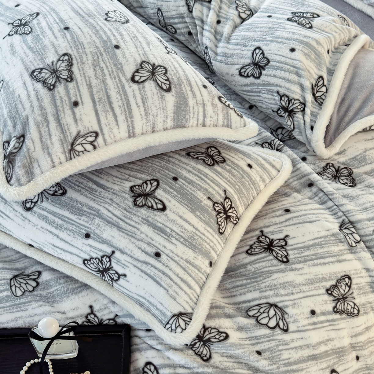 莱登卡奴 2025新款高克重牛奶绒雕花兔毛包边款系列四件套 蝶舞纷飞-银灰