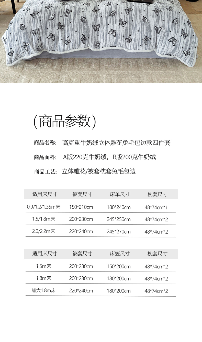 2025新款高克重牛奶绒雕花兔毛包边款系列四件套