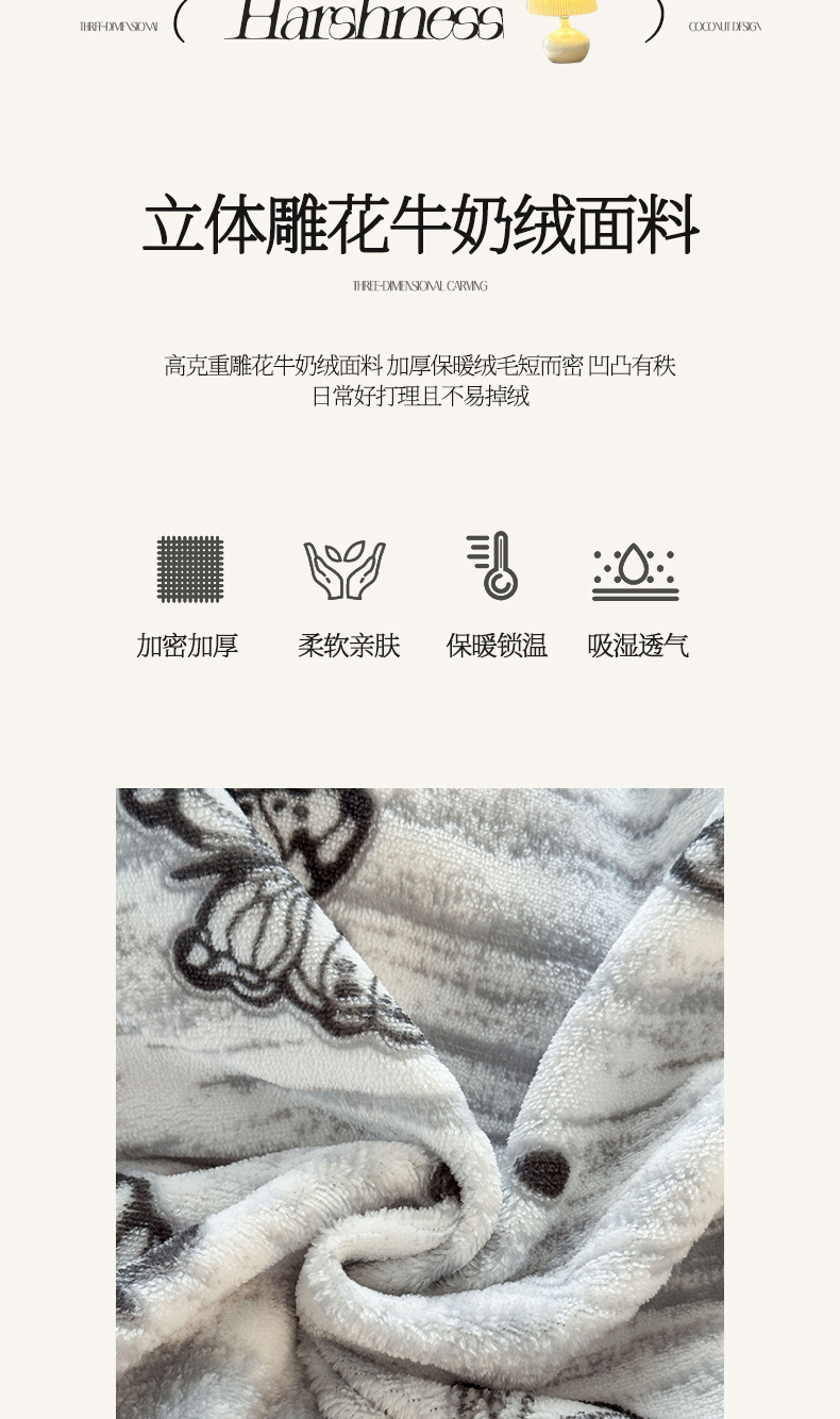 2025新款牛奶绒着色立体浮雕雕花绒四件套-赫本系列