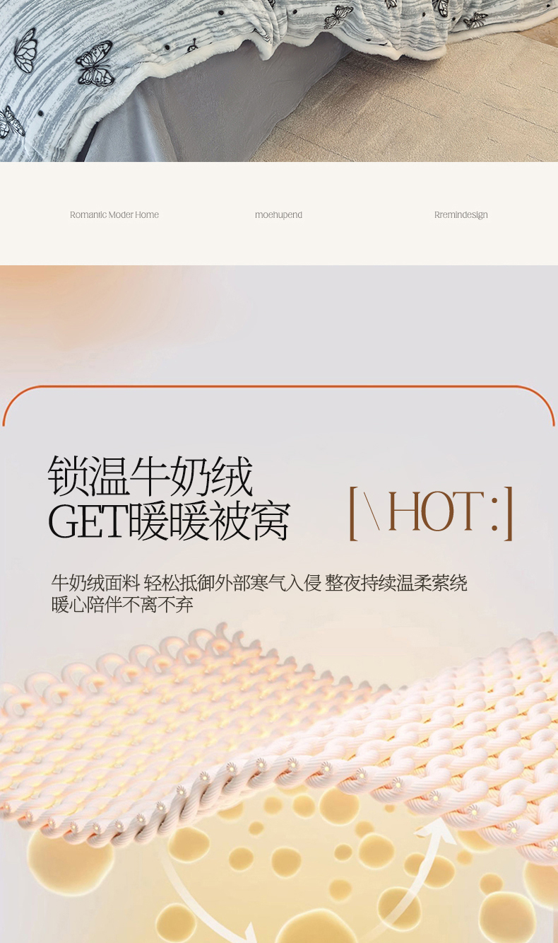 2025新款A类高克重牛奶绒泡泡绒印花美拉德风系列四件套