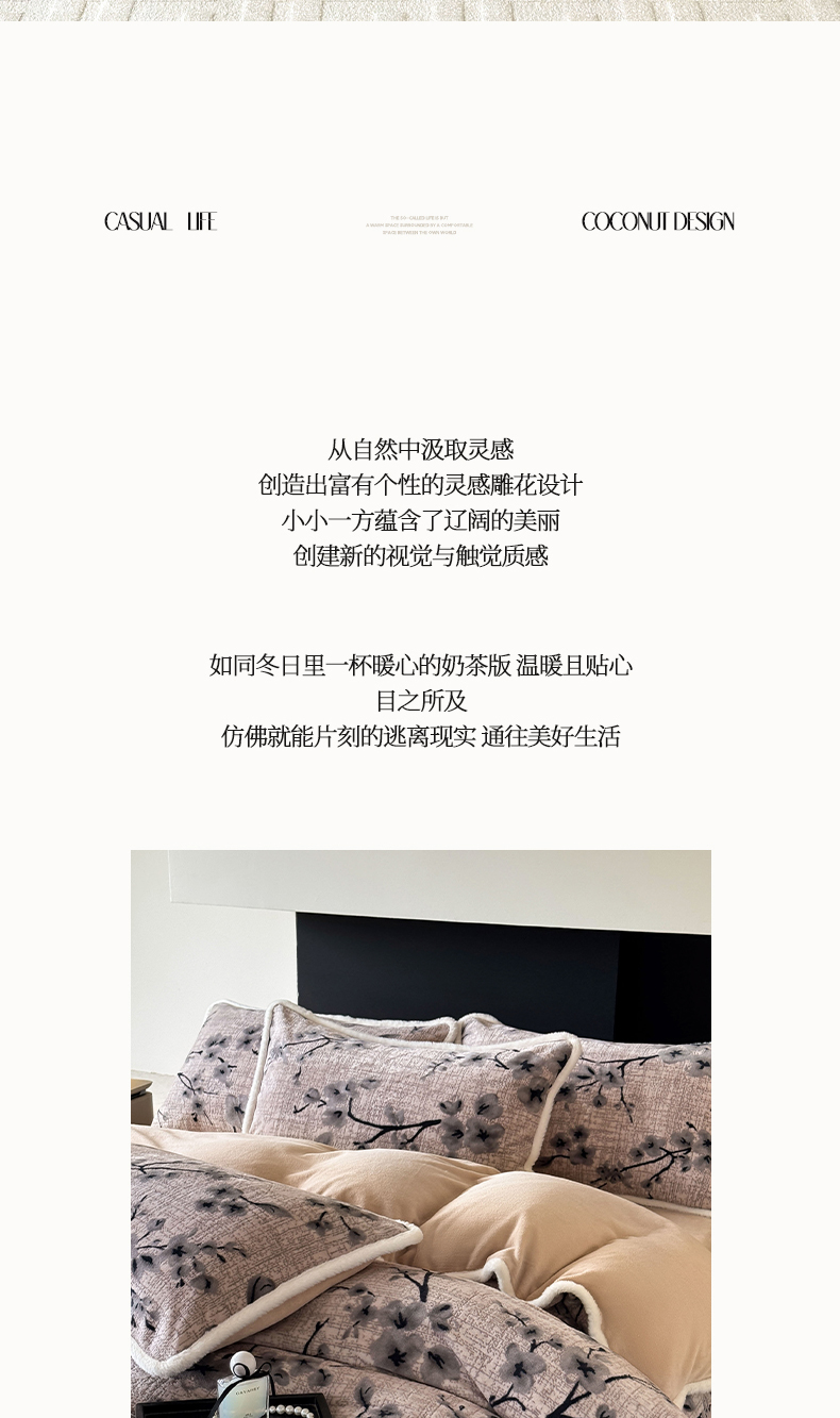 莱登卡奴 2025新款高克重牛奶绒雕花兔毛包边款系列四件套 琳瑜陌语-咖