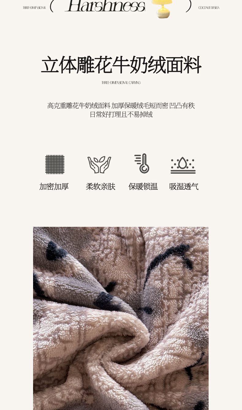 2025新款牛奶绒着色立体浮雕雕花绒四件套-赫本系列