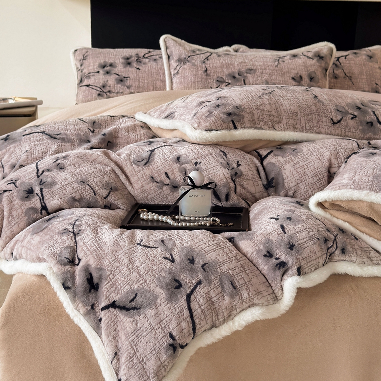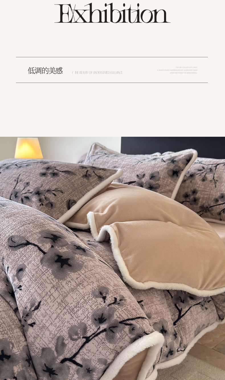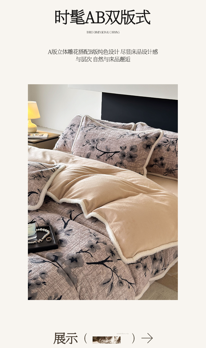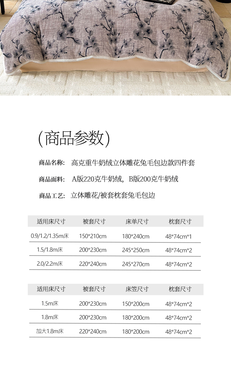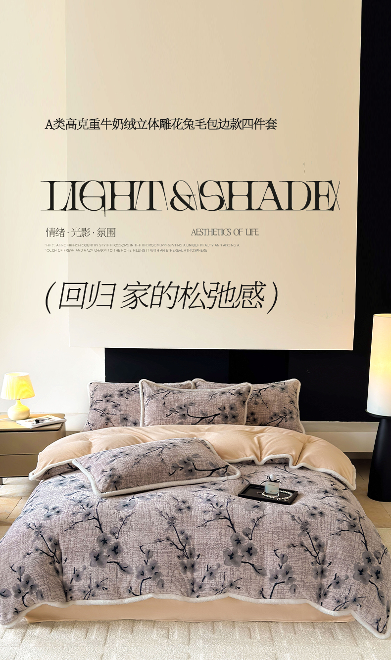 2025新款高克重牛奶绒雕花兔毛包边款系列四件套