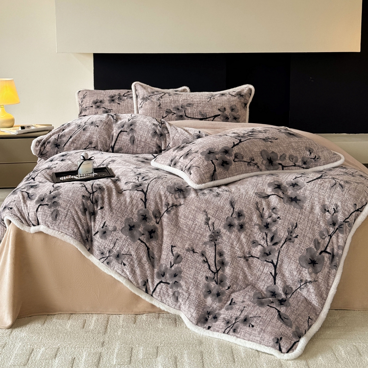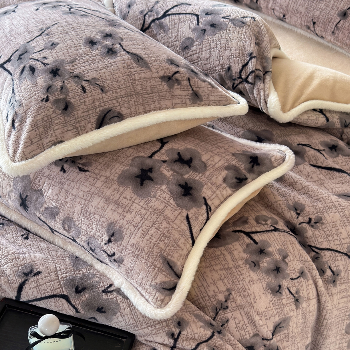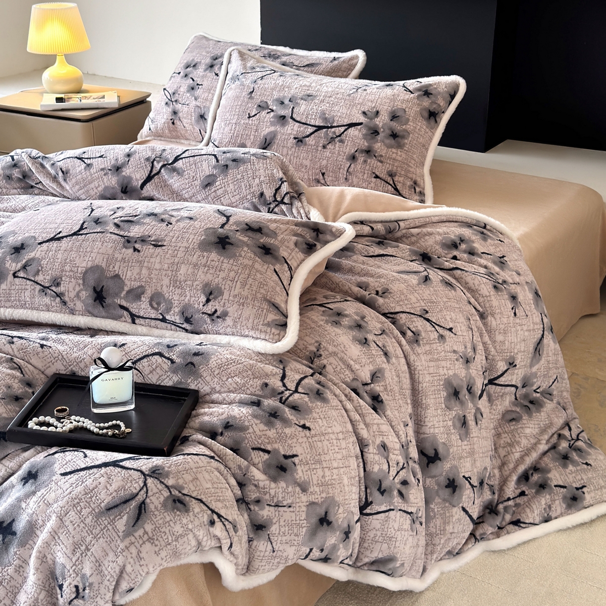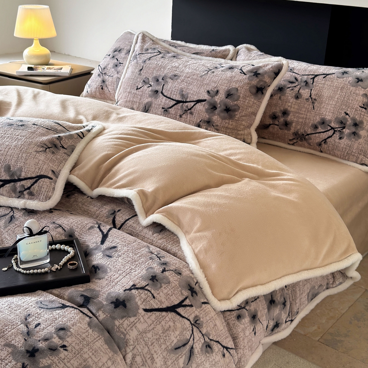 2025新款高克重牛奶绒雕花兔毛包边款系列四件套