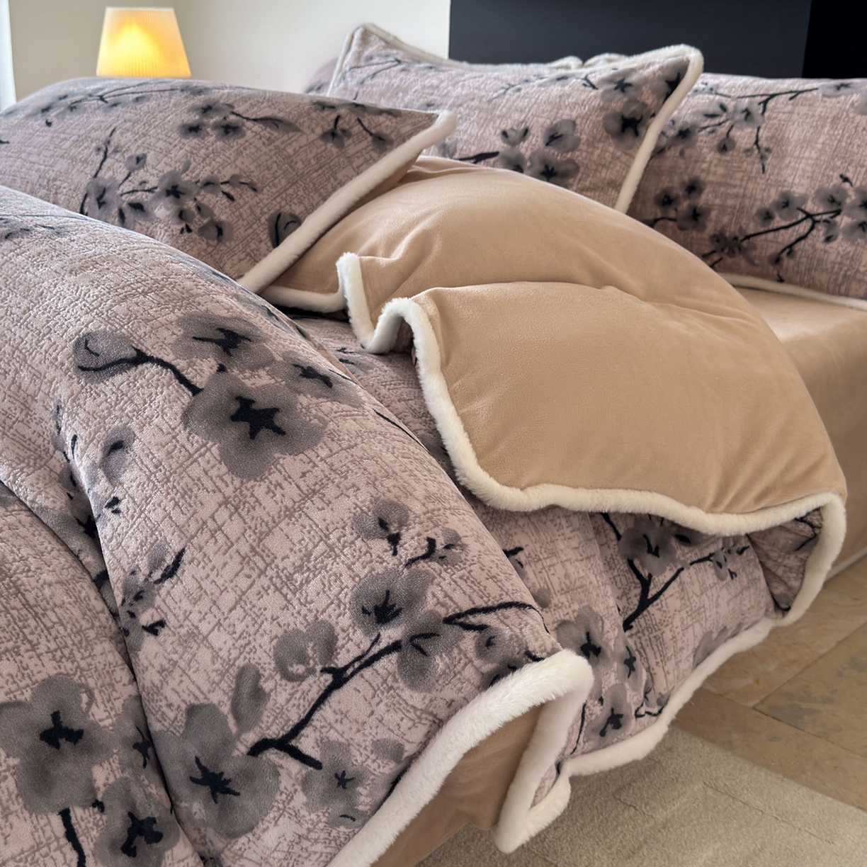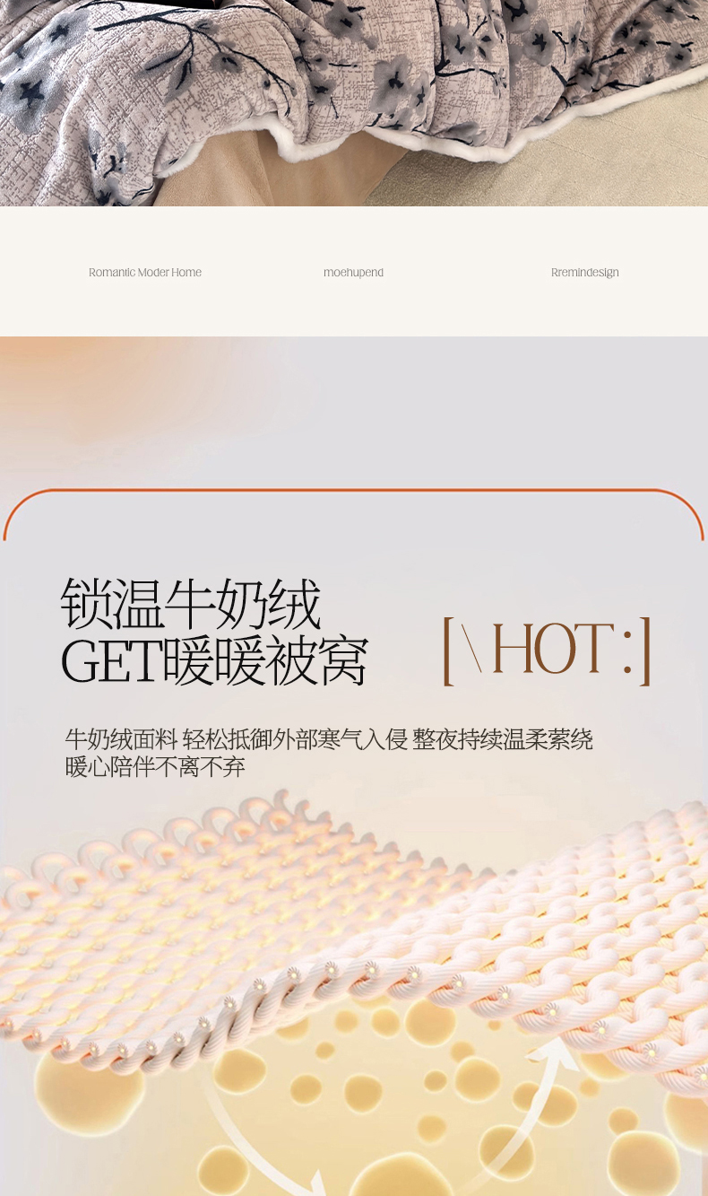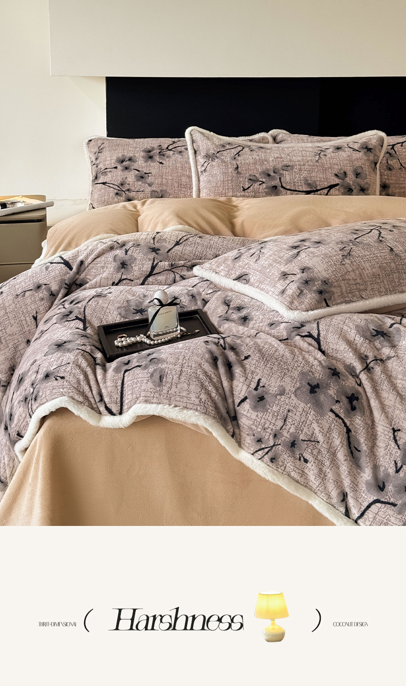 2025新款A类高克重牛奶绒泡泡绒印花美拉德风系列四件套