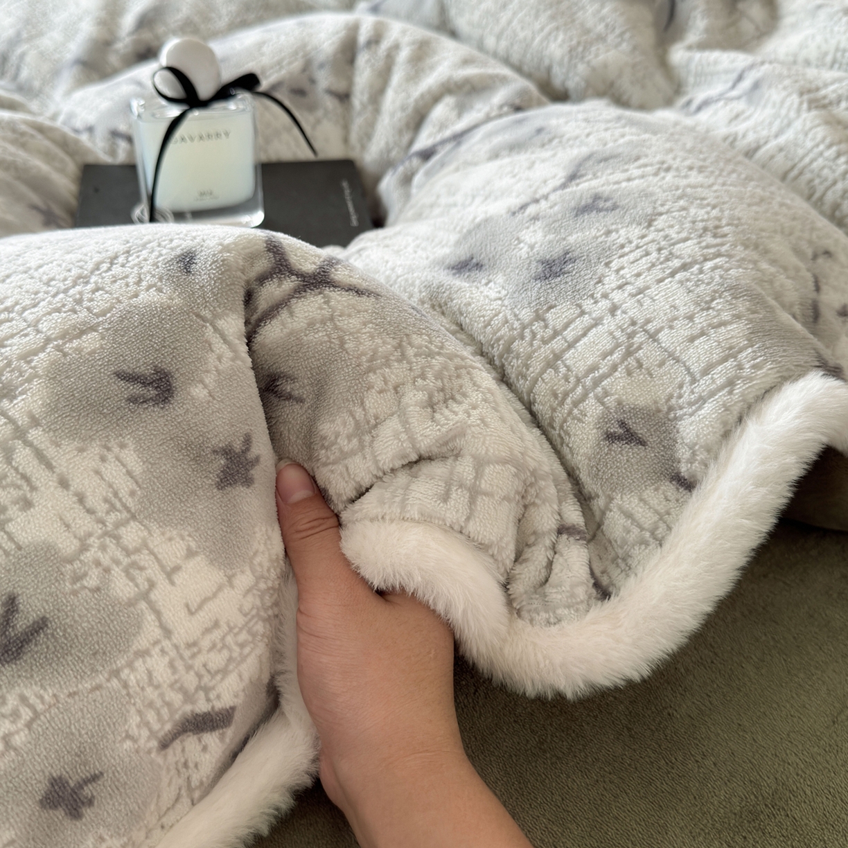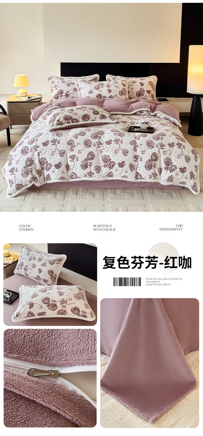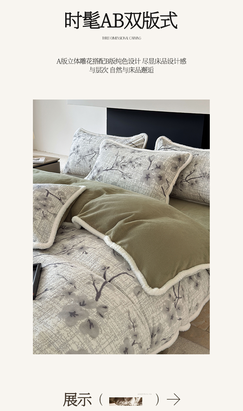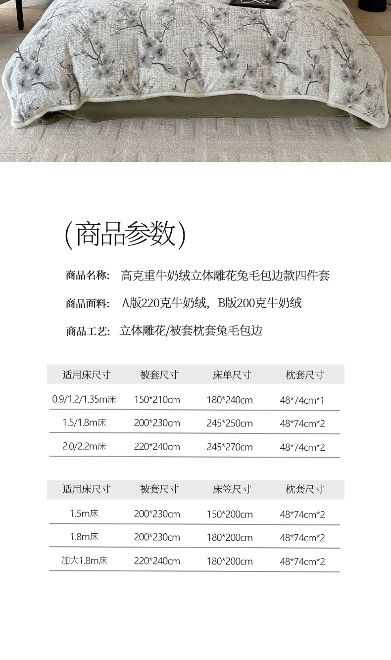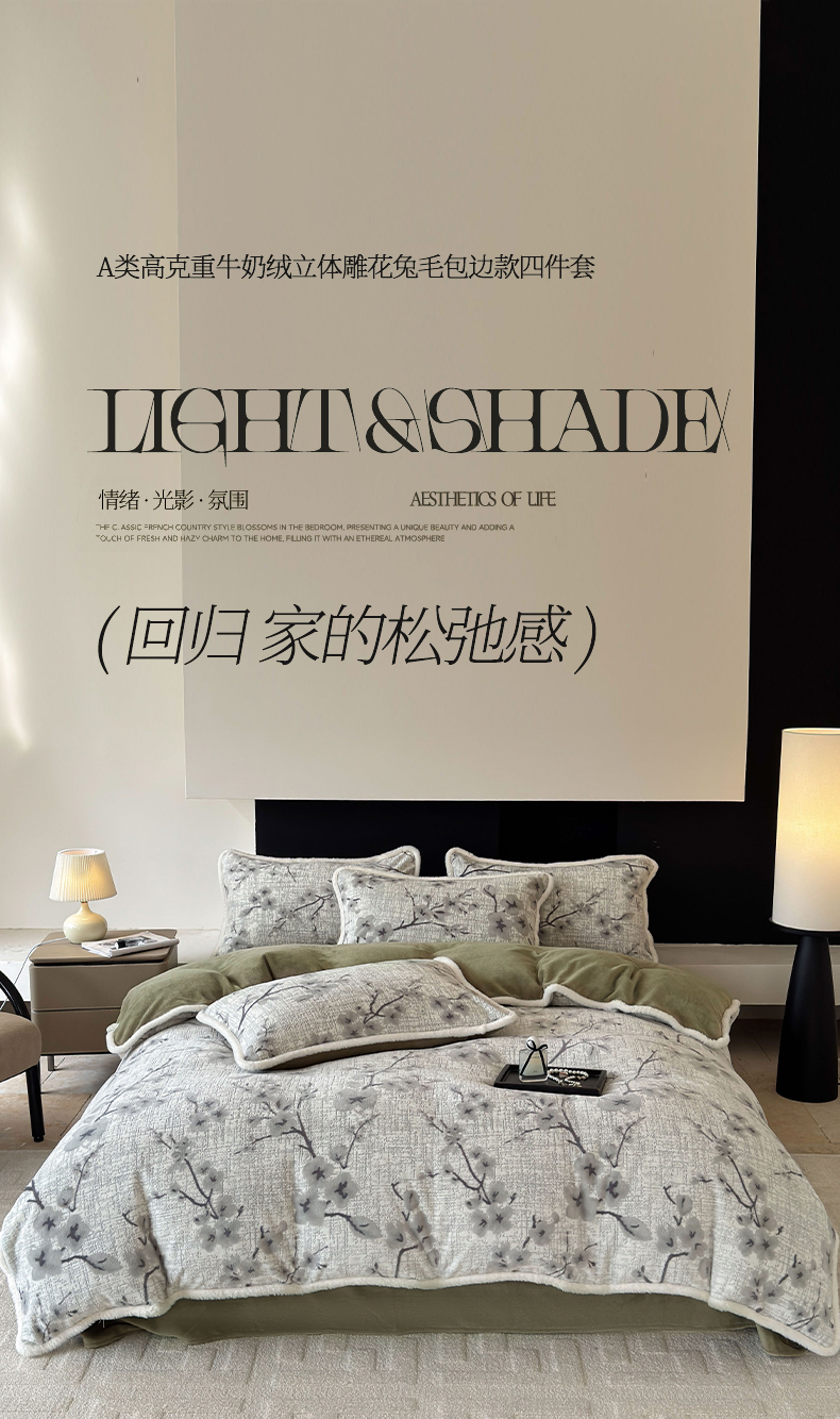 2025新款高克重牛奶绒雕花兔毛包边款系列四件套