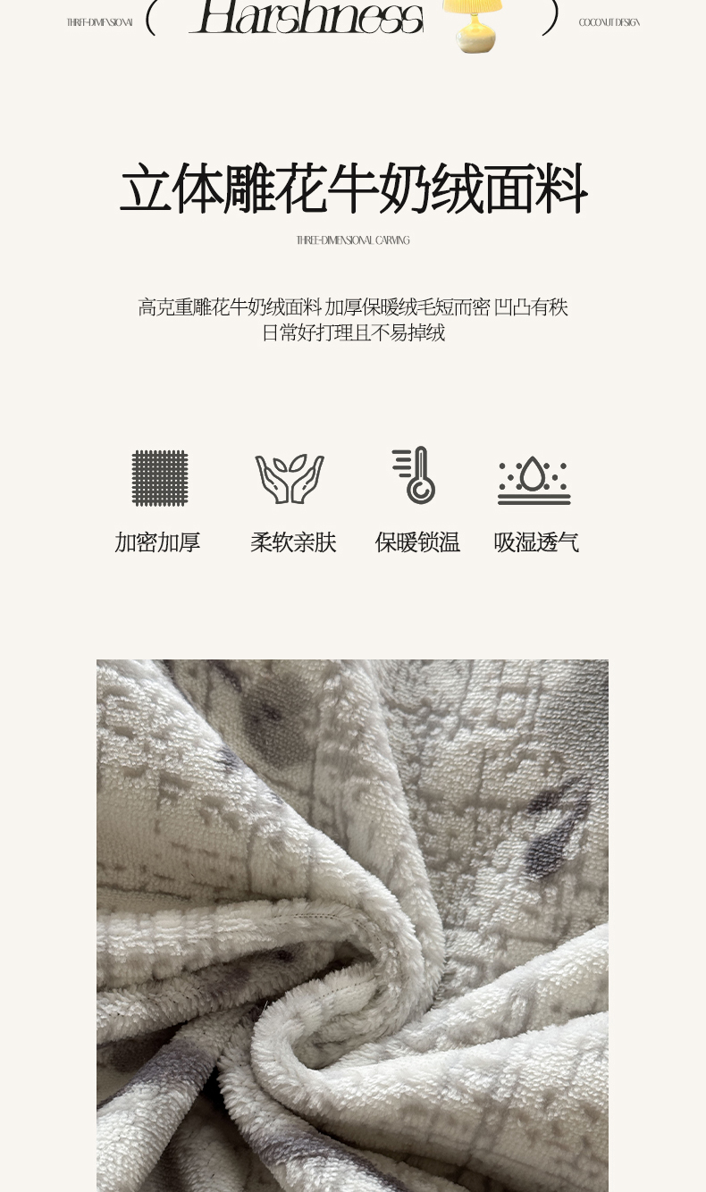 2025新款牛奶绒着色立体浮雕雕花绒四件套-赫本系列