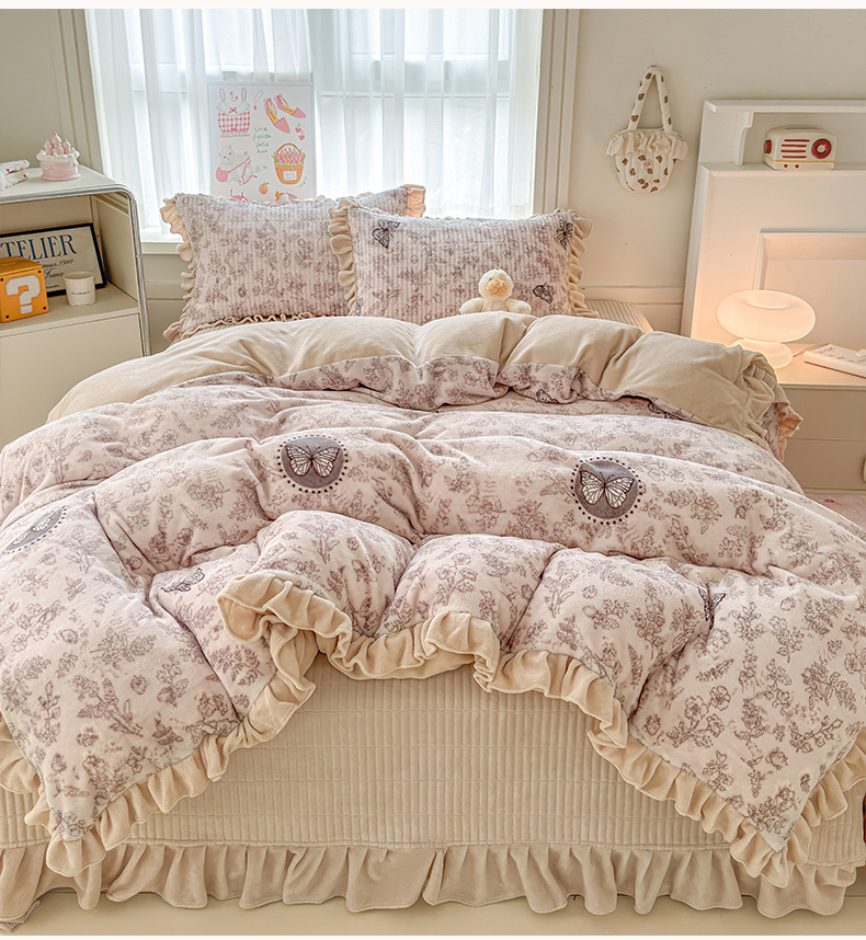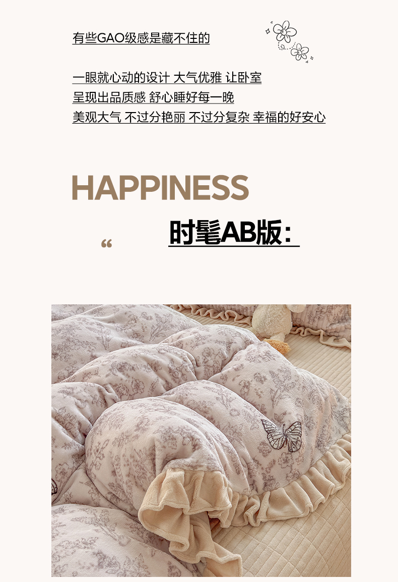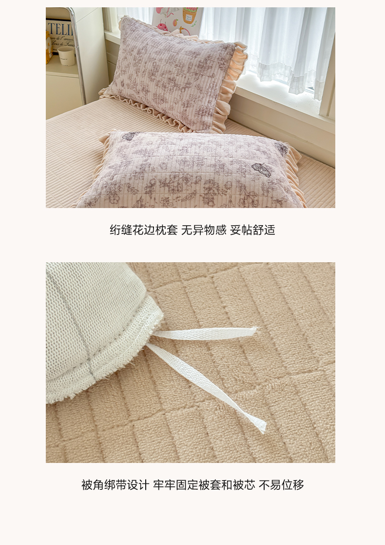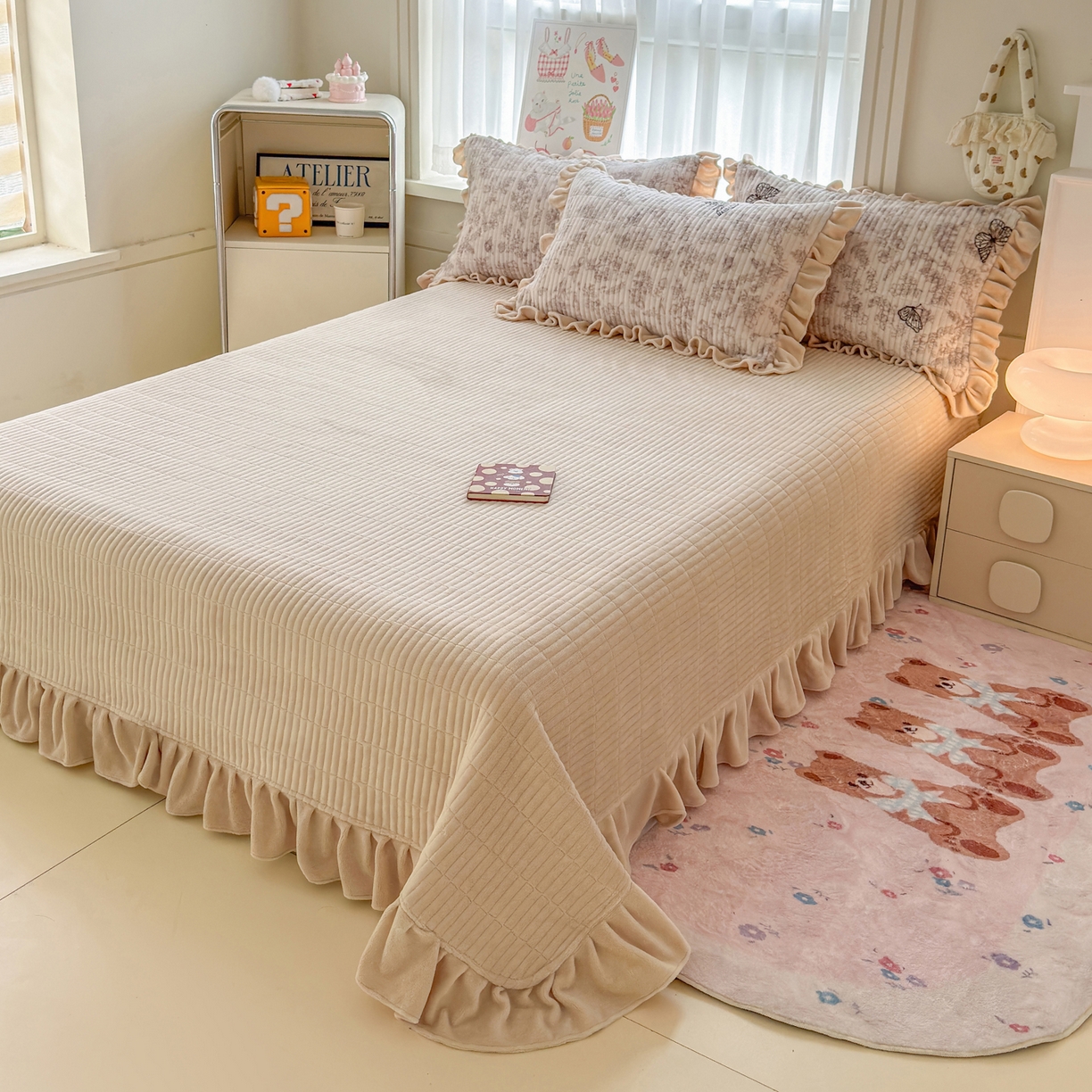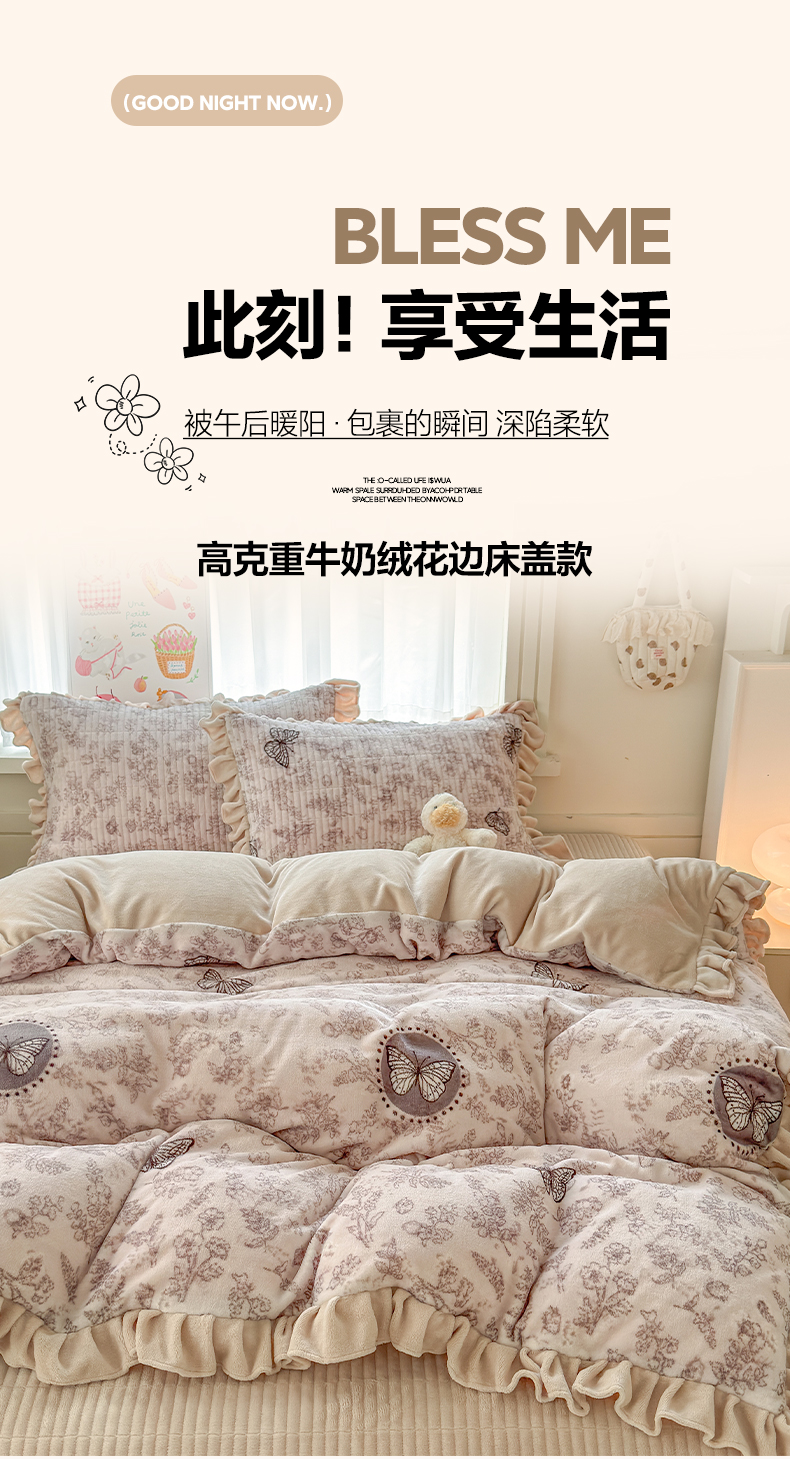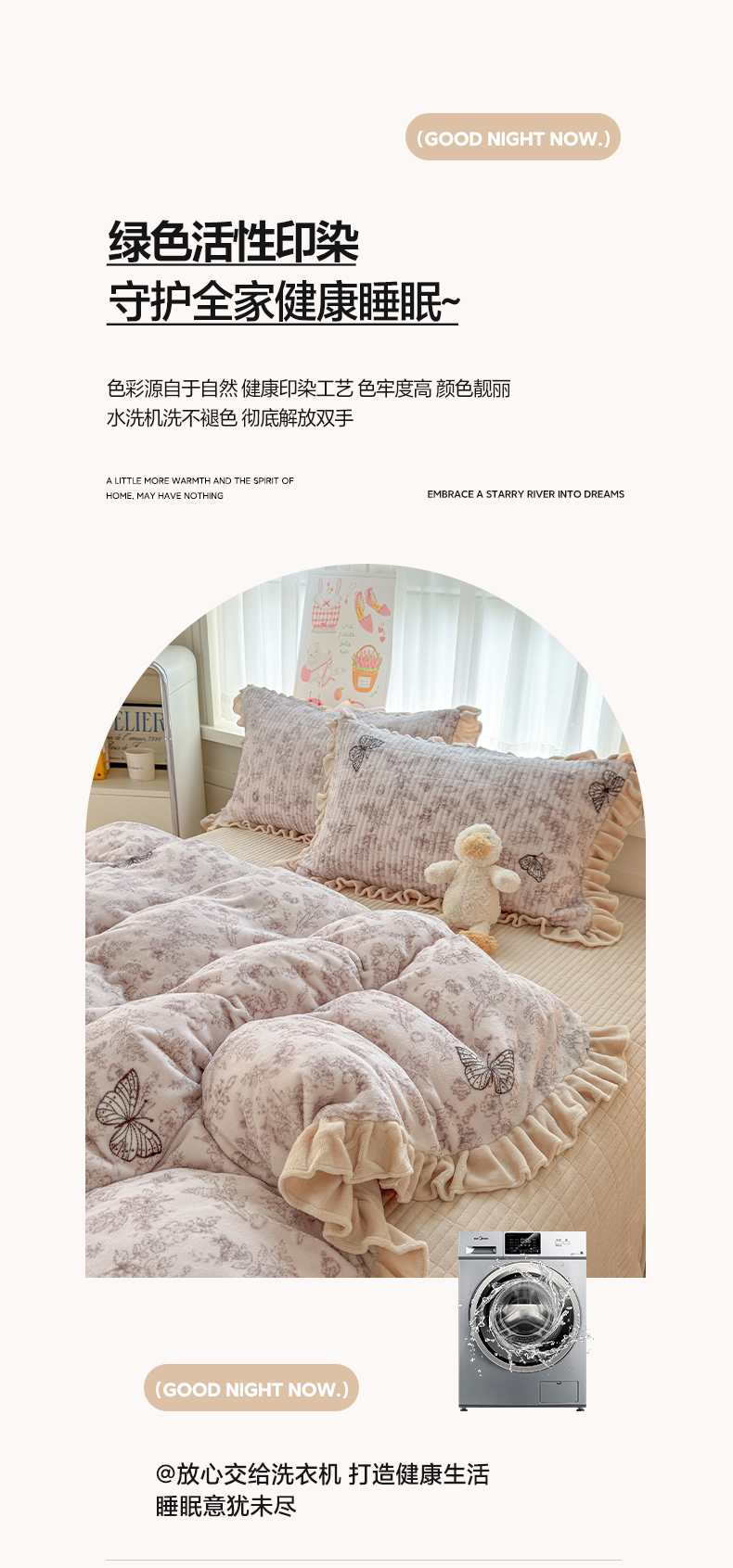 2025新款高克重牛奶绒花边床盖款系列四件套