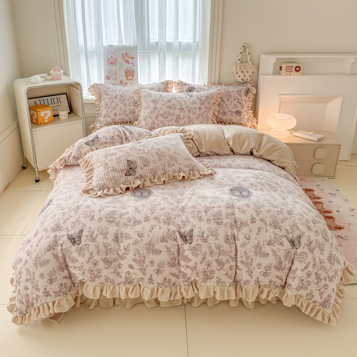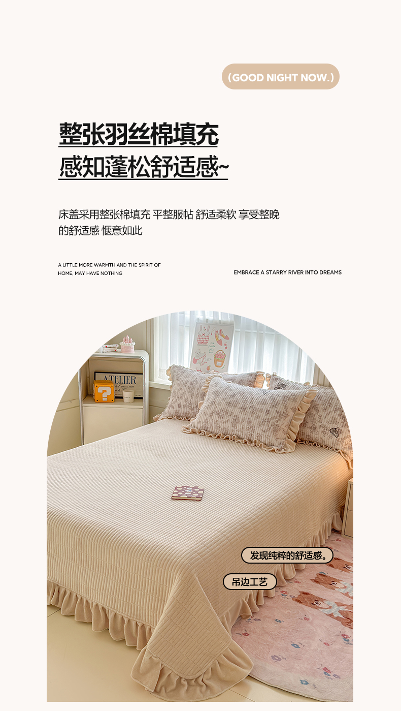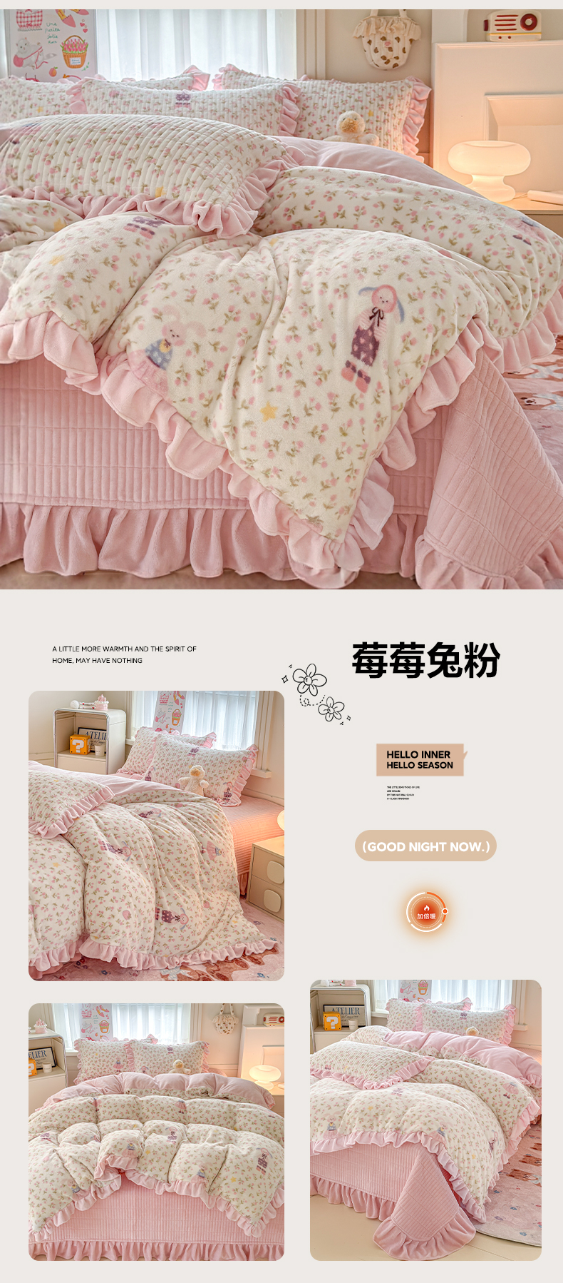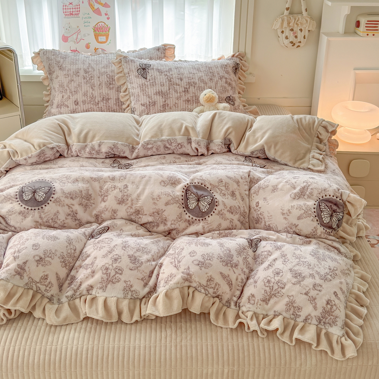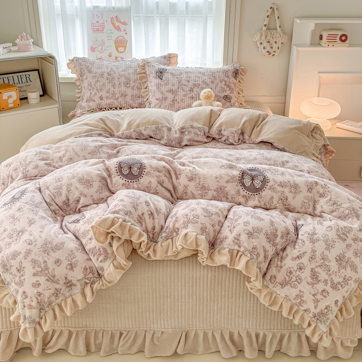 2025新款高克重牛奶绒花边床盖款系列四件套