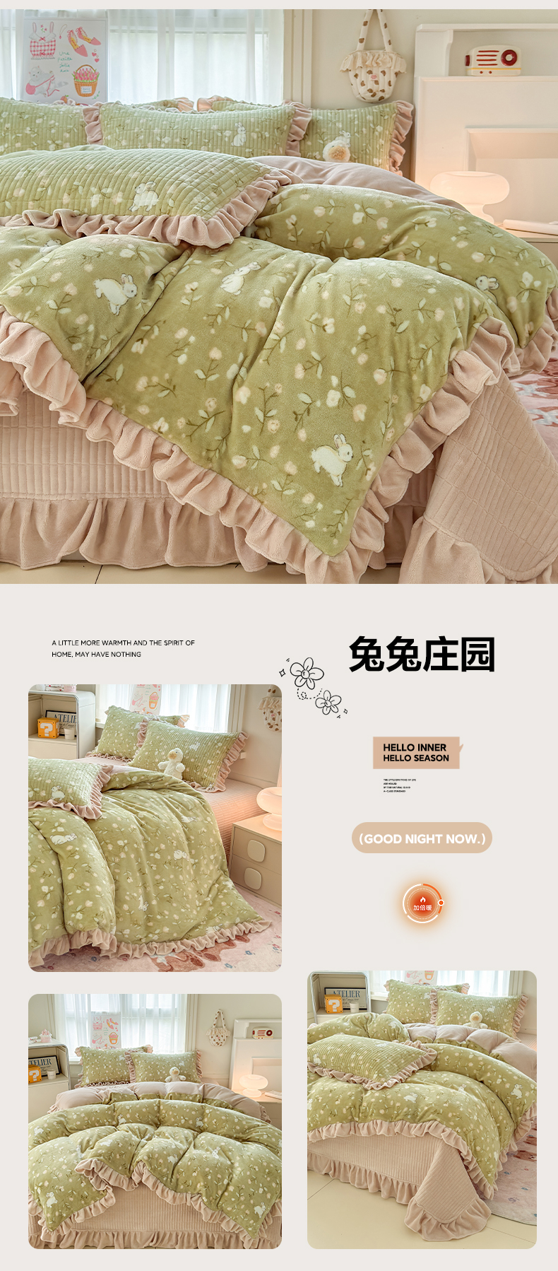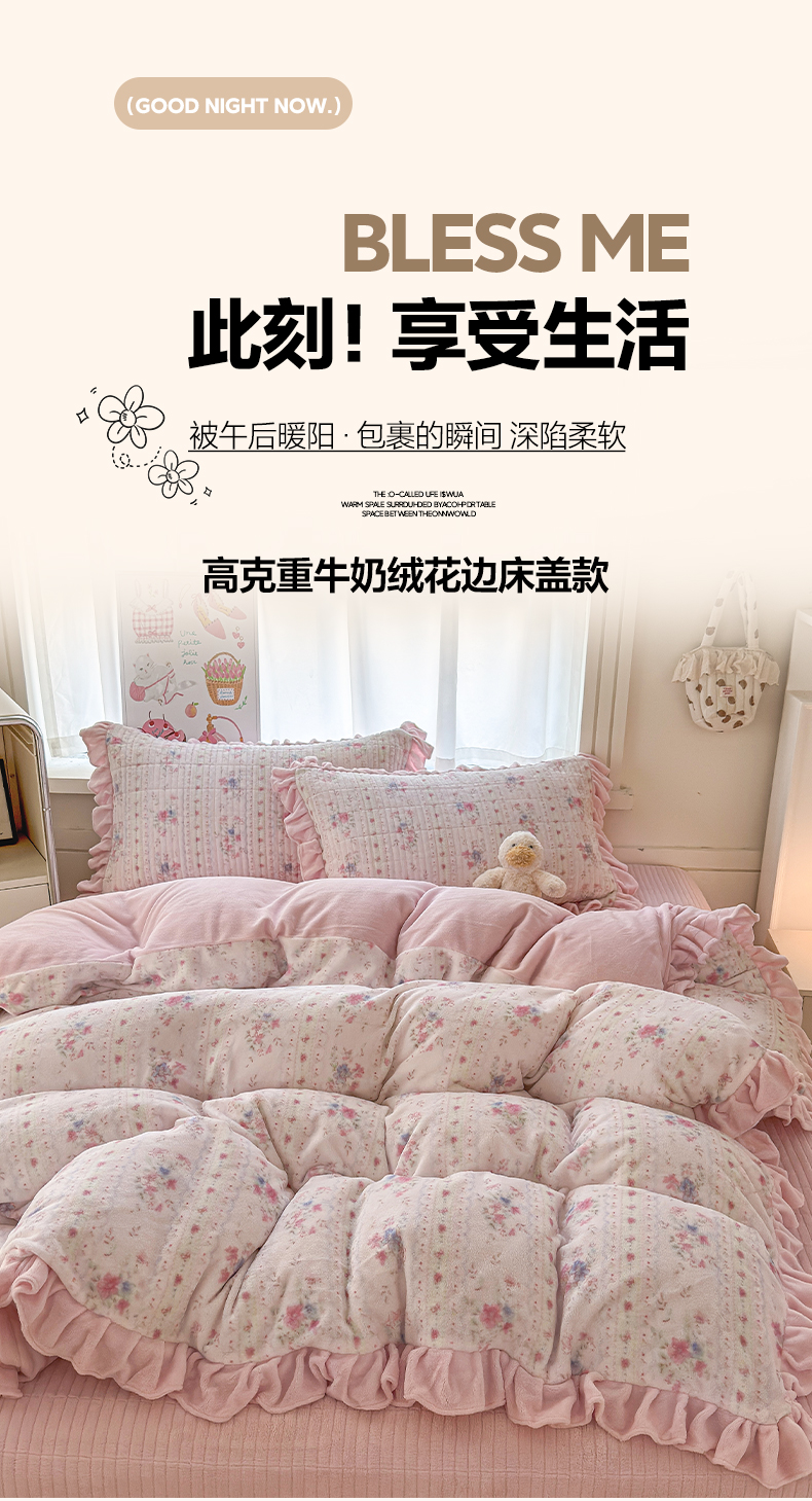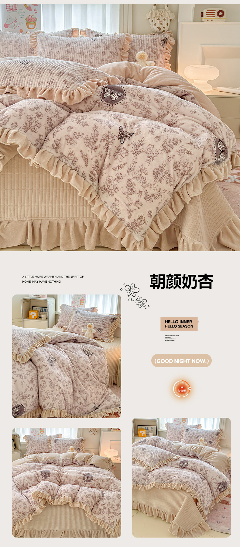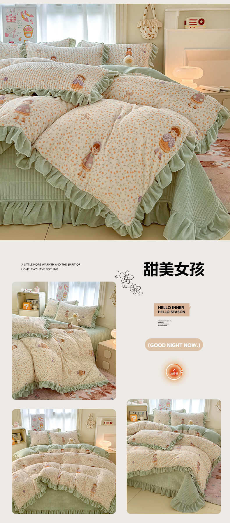 2025新款高克重牛奶绒花边床盖款系列四件套