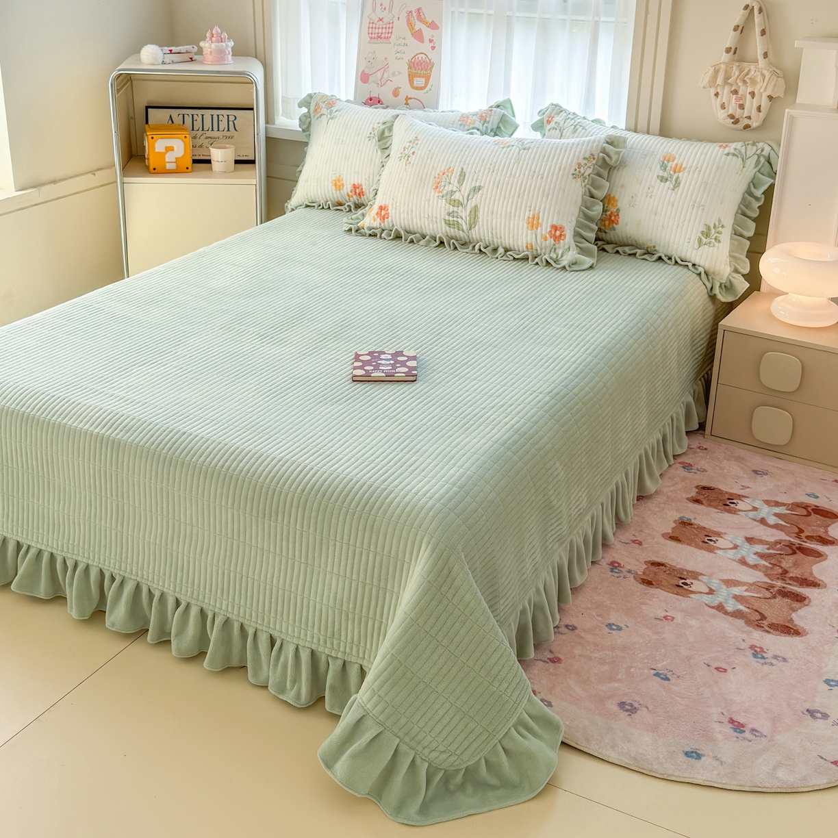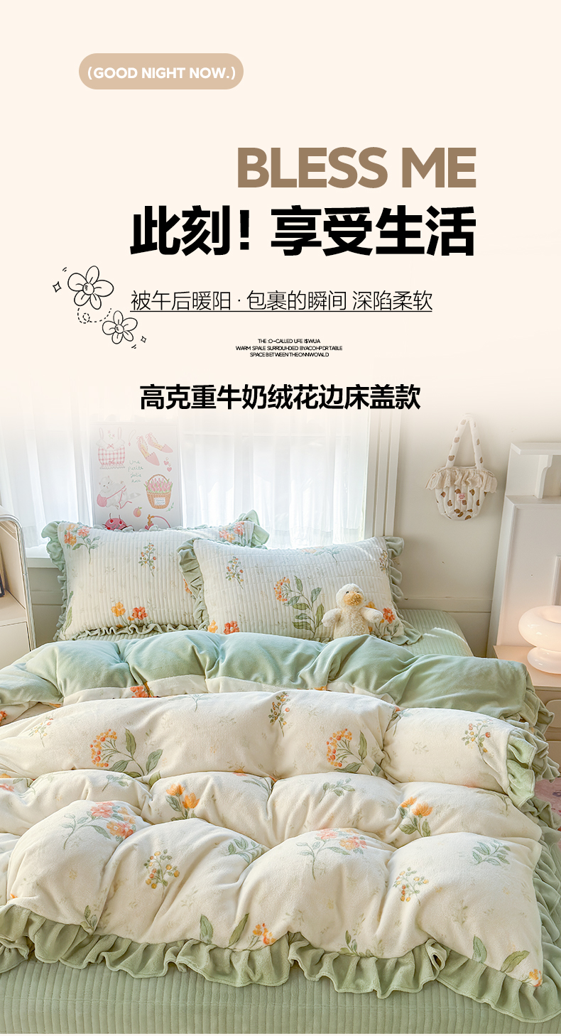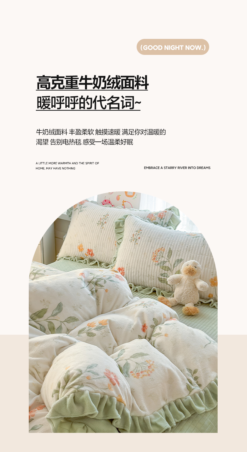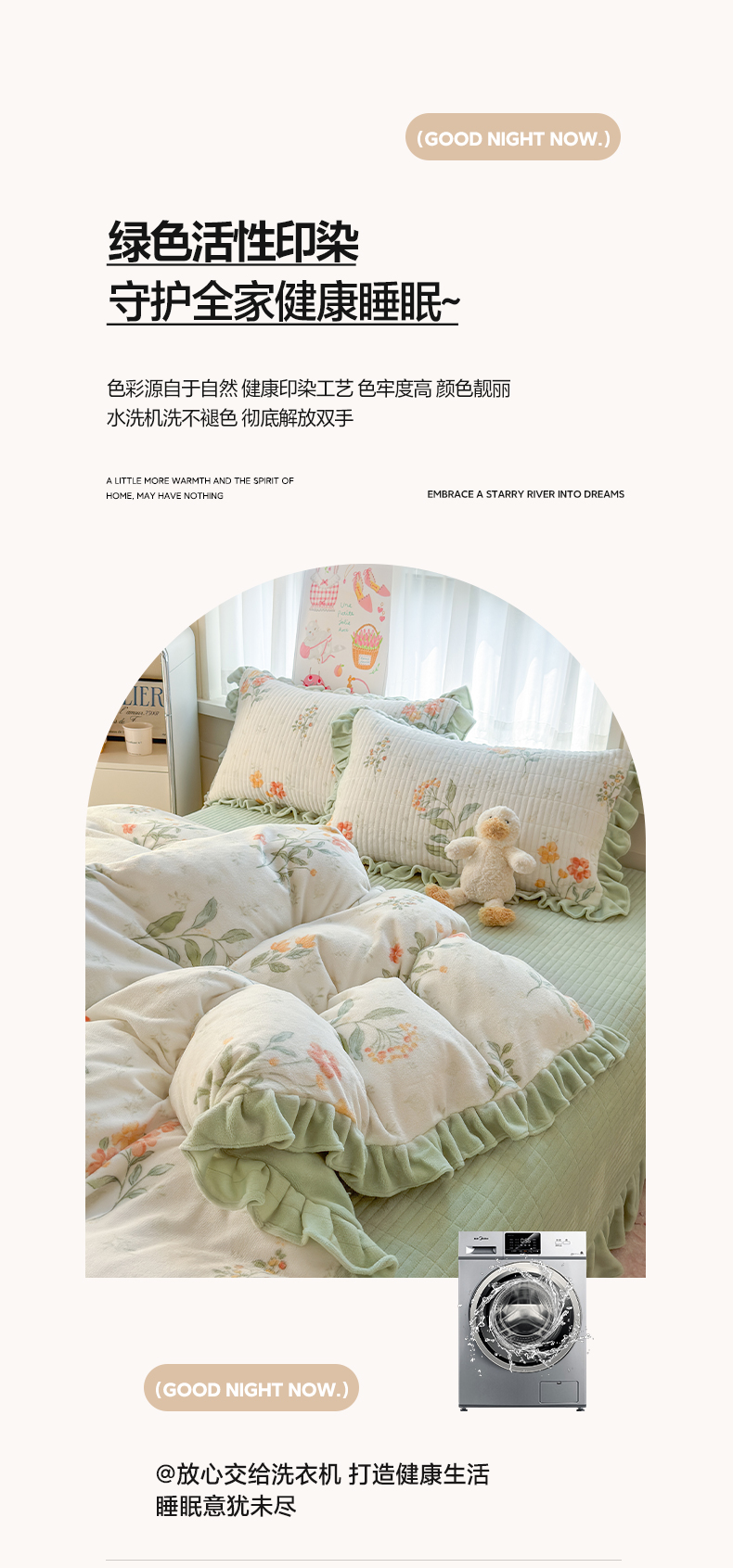 2025新款高克重牛奶绒花边床盖款系列四件套