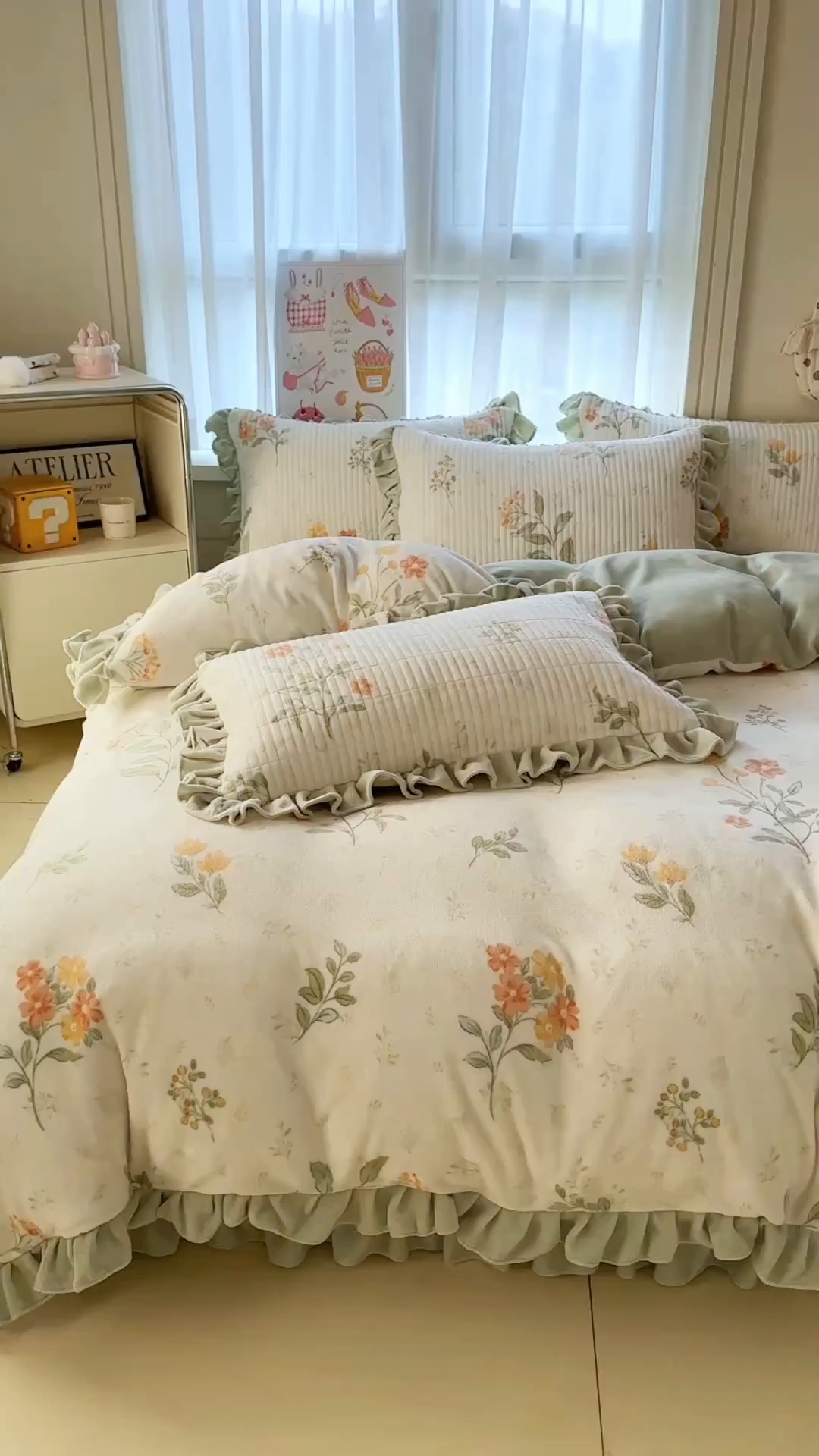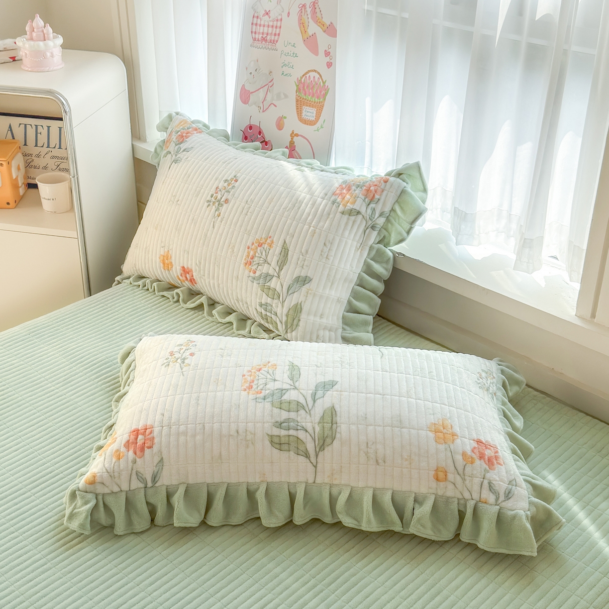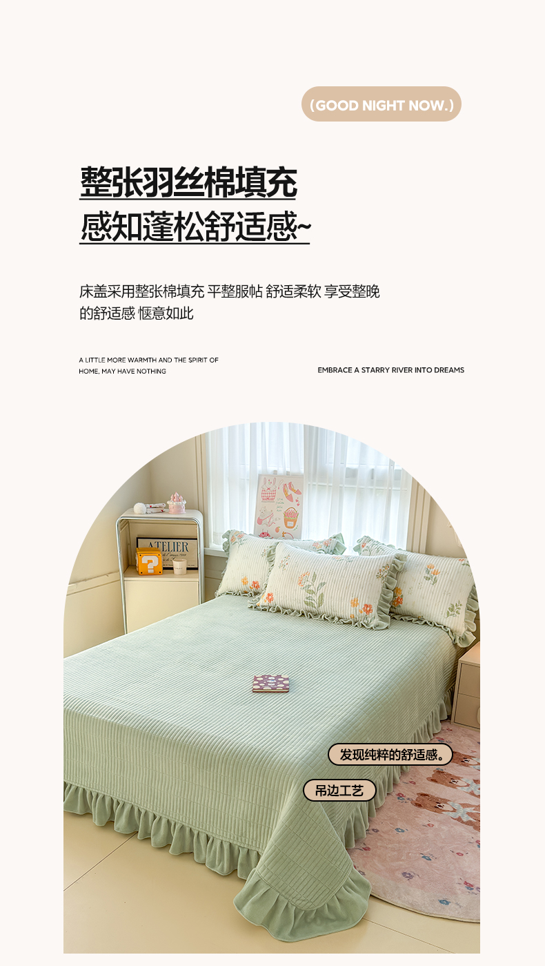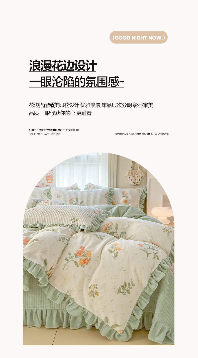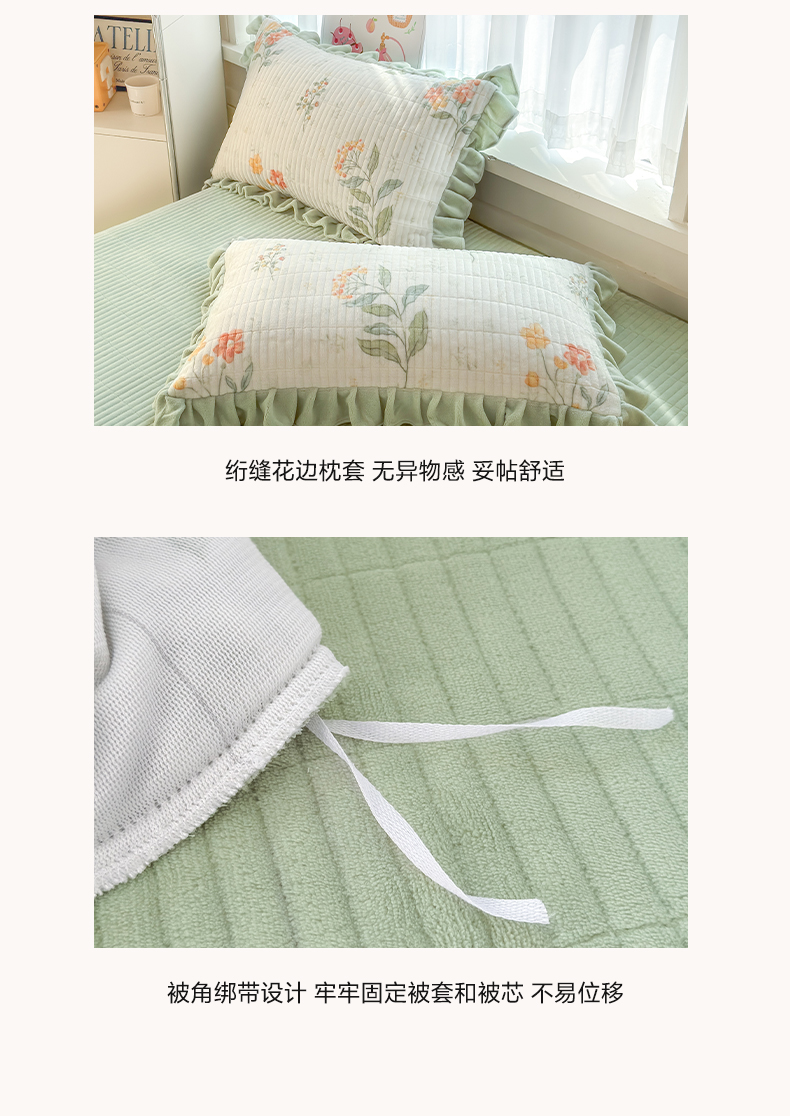 2025新款高克重牛奶绒花边床盖款系列四件套
