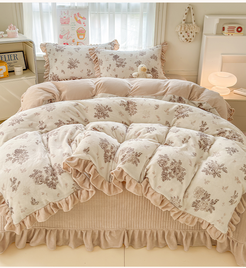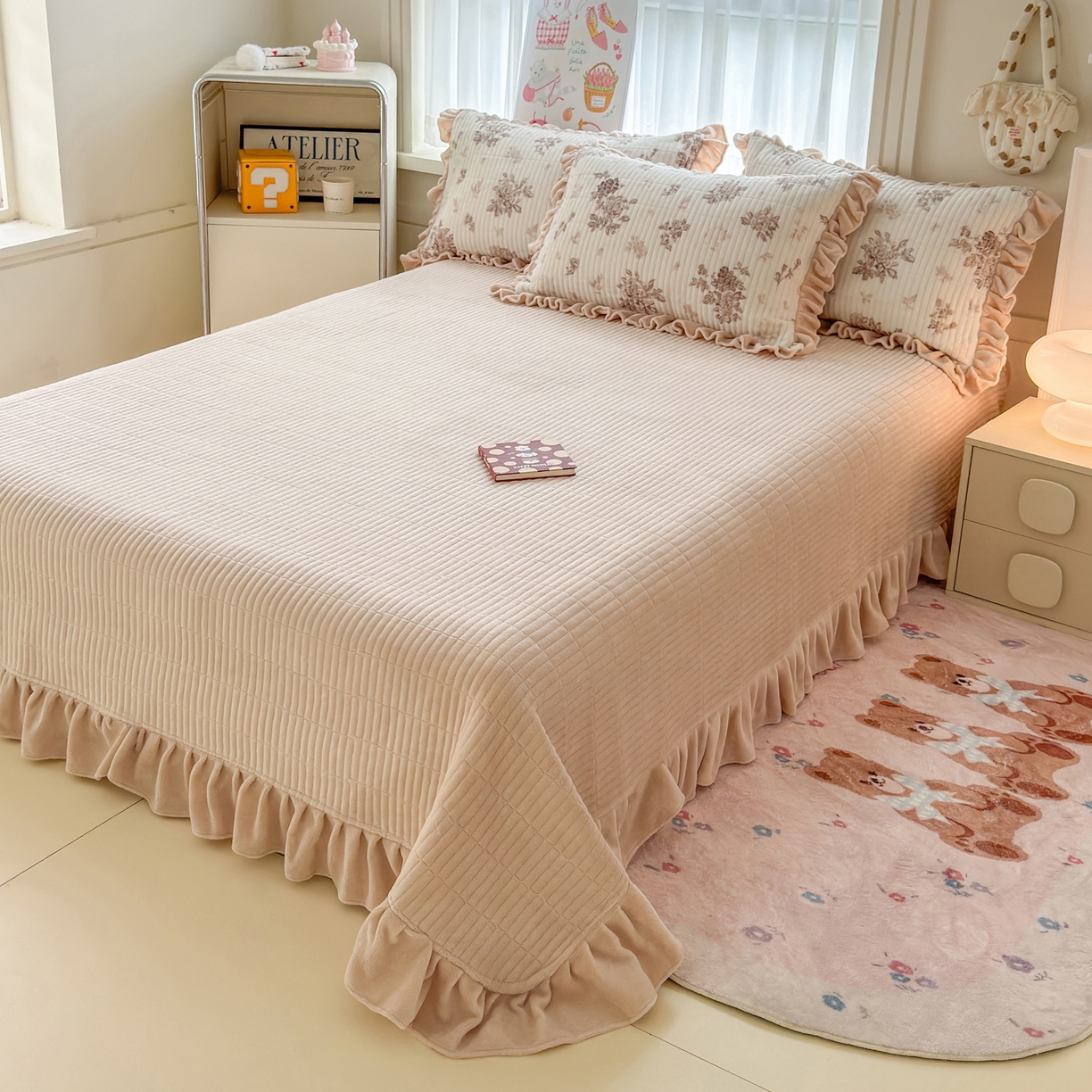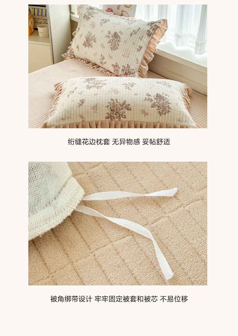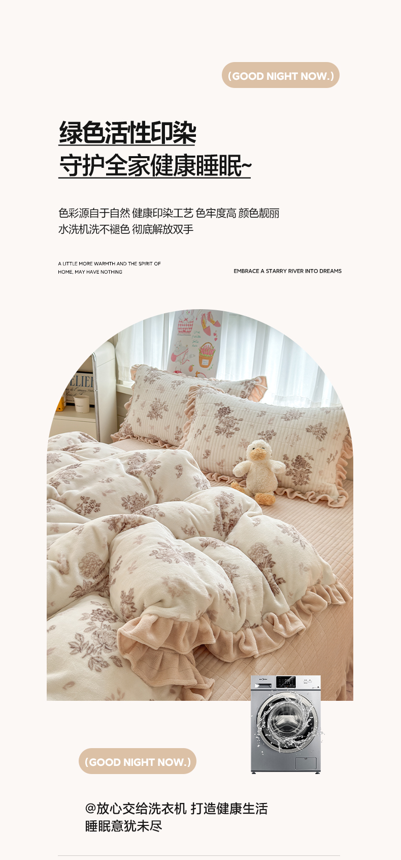 2025新款高克重牛奶绒花边床盖款系列四件套