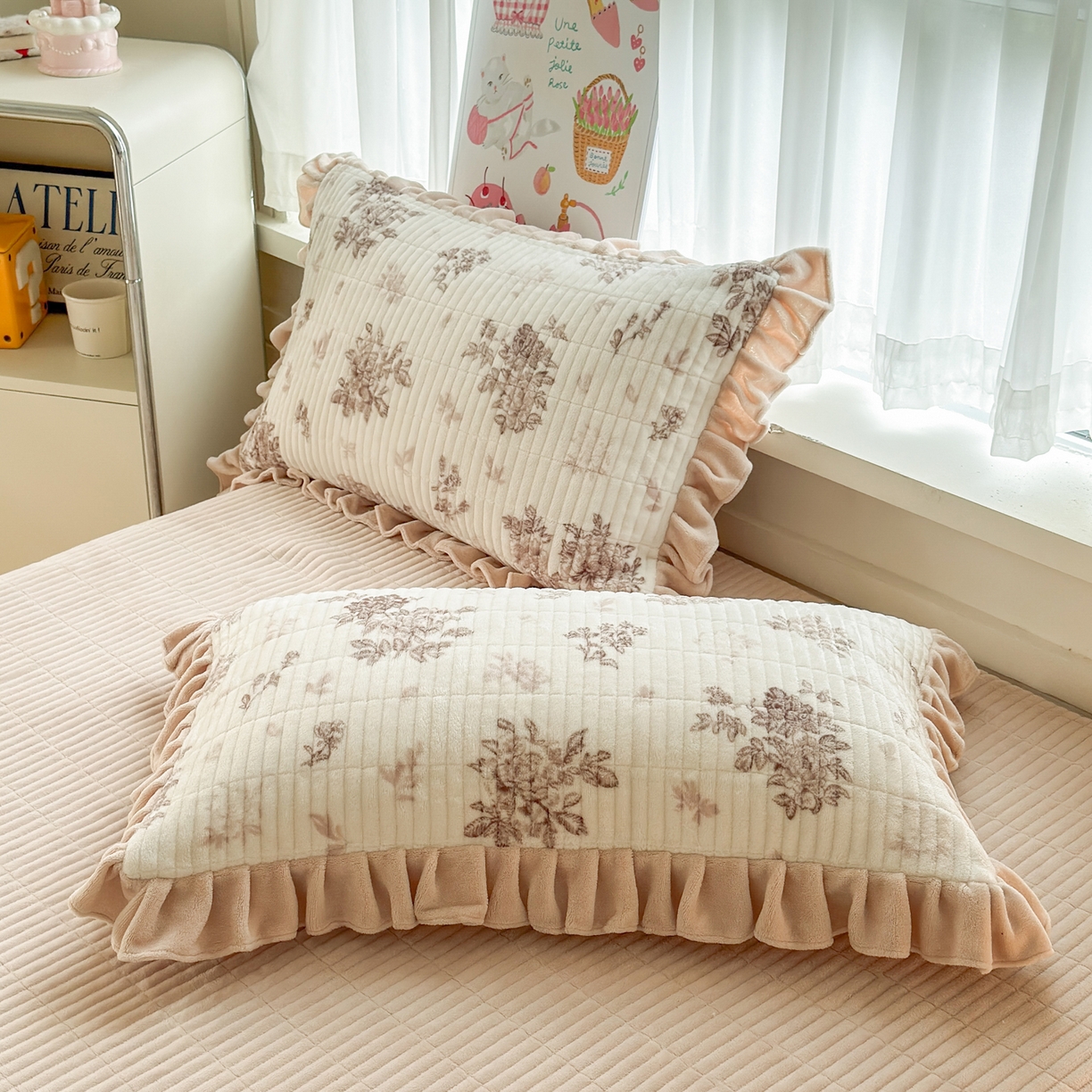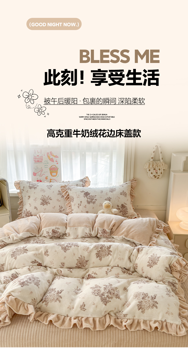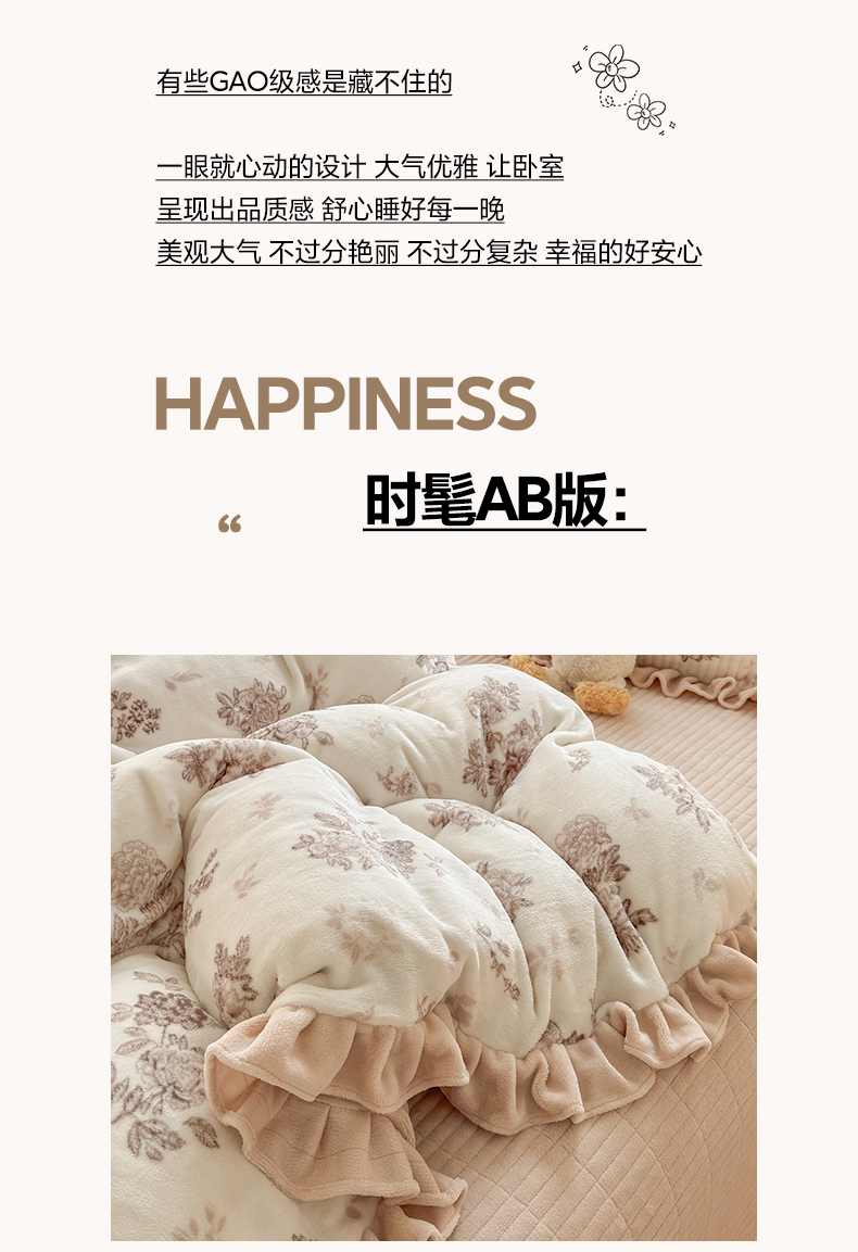 2025新款高克重牛奶绒花边床盖款系列四件套
