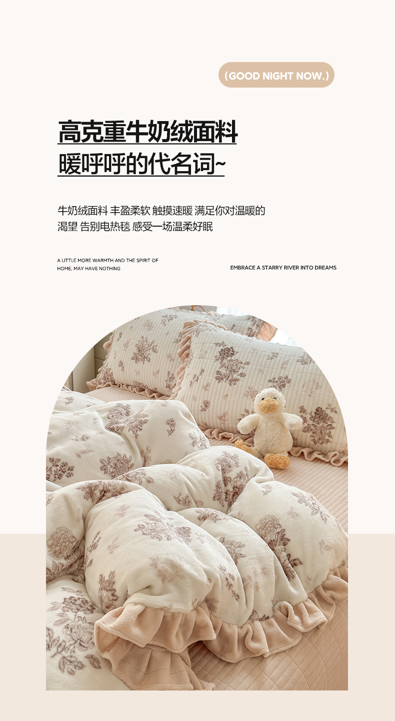 2025新款A类高克重牛奶绒泡泡绒印花美拉德风系列四件套