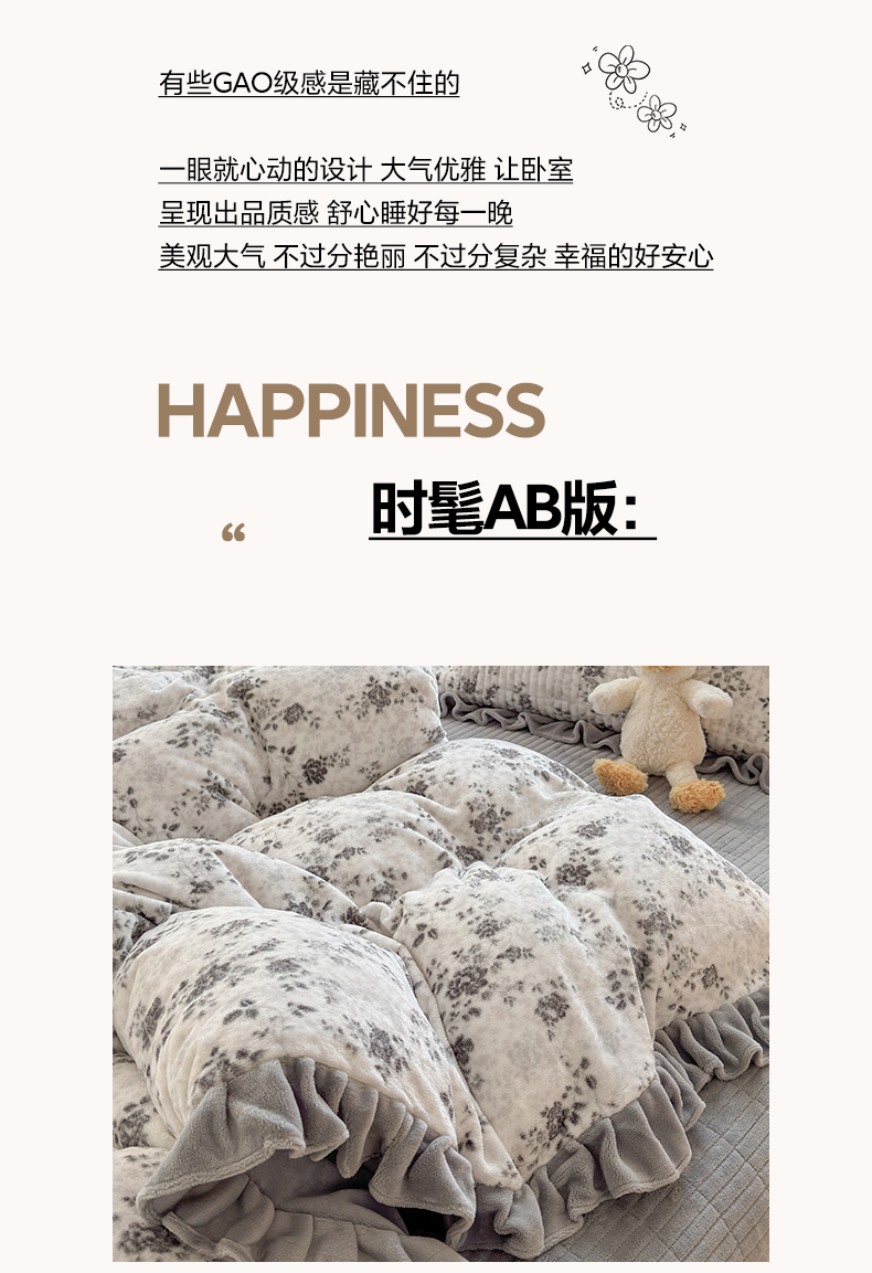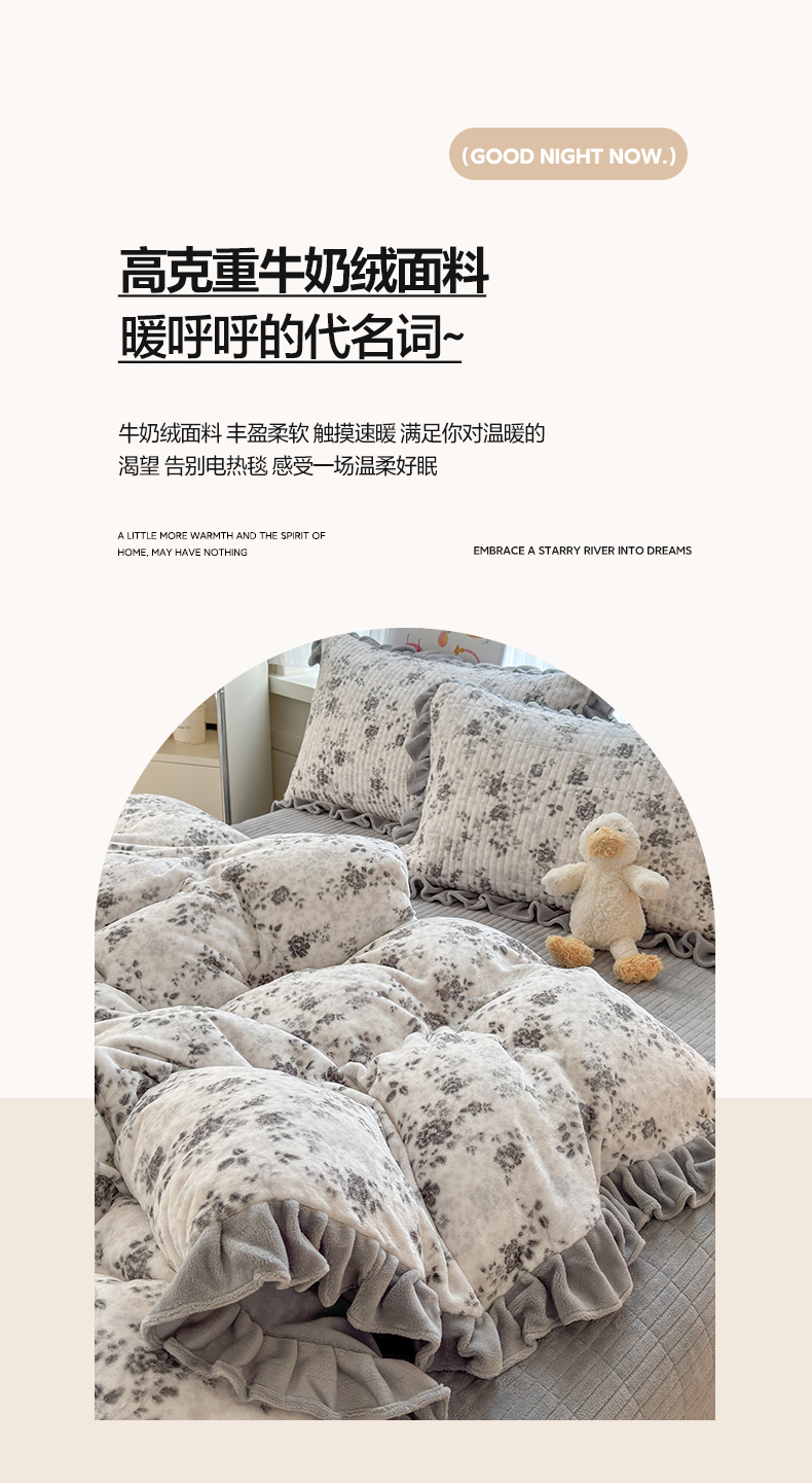 2025新款A类高克重牛奶绒泡泡绒印花美拉德风系列四件套