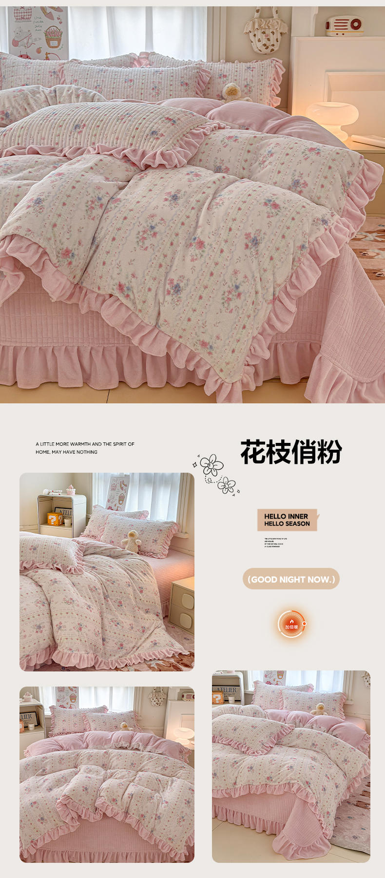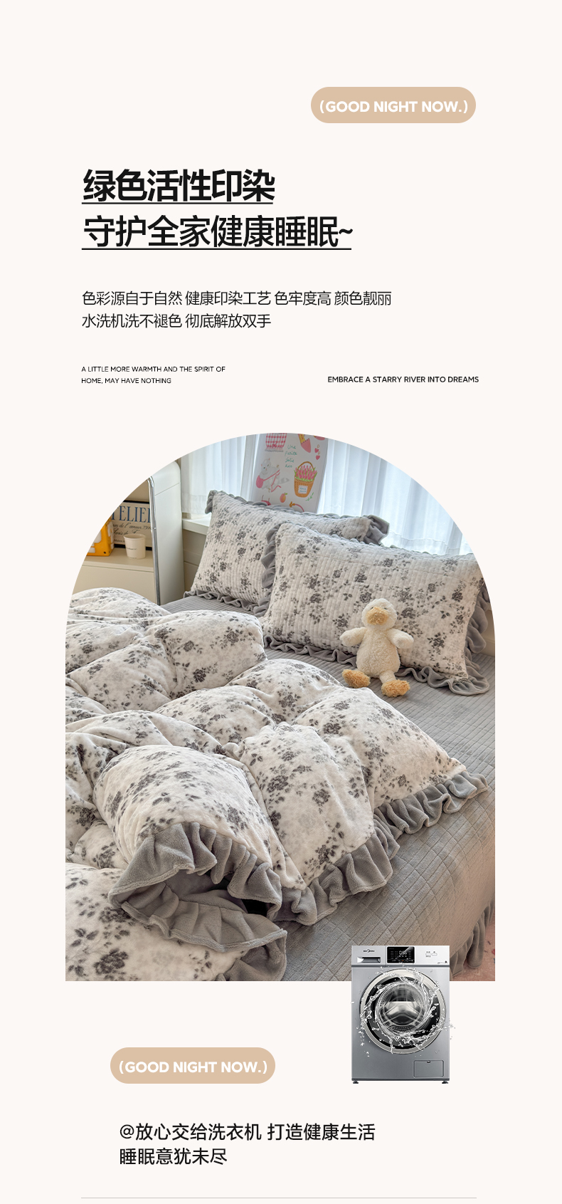 2025新款高克重牛奶绒花边床盖款系列四件套