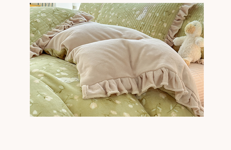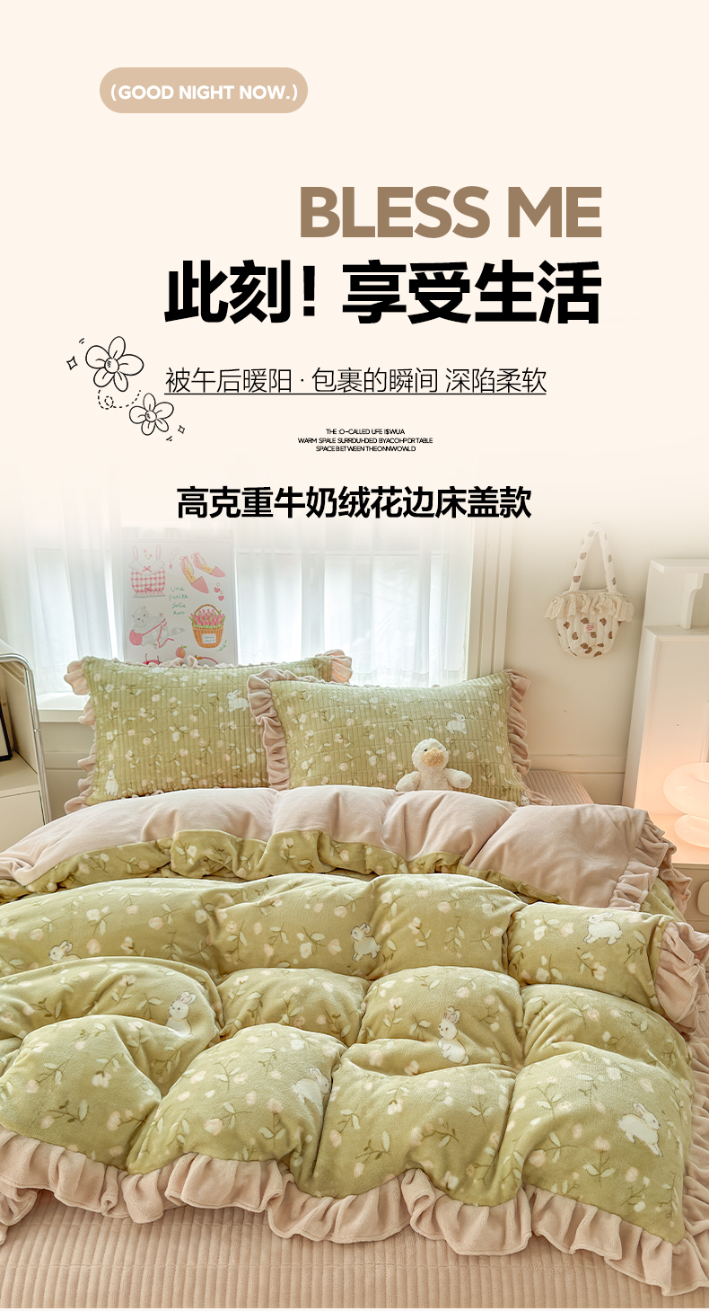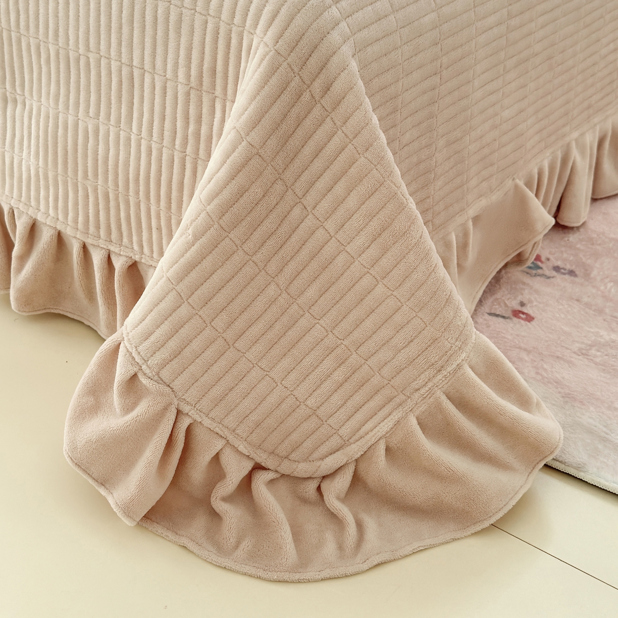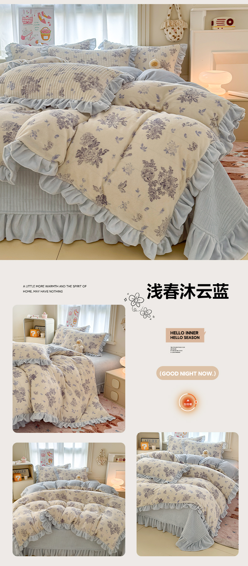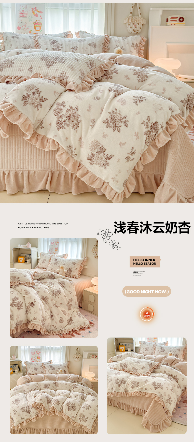 2025新款高克重牛奶绒花边床盖款系列四件套
