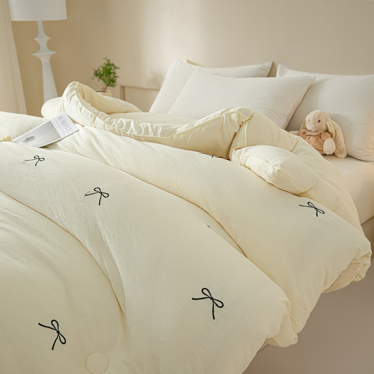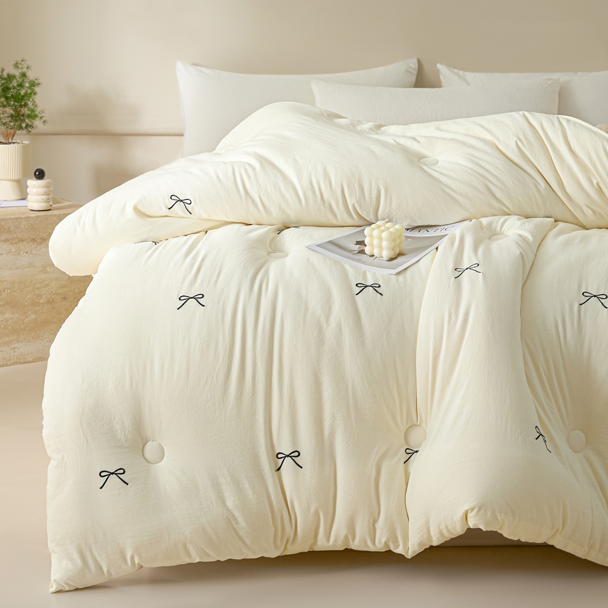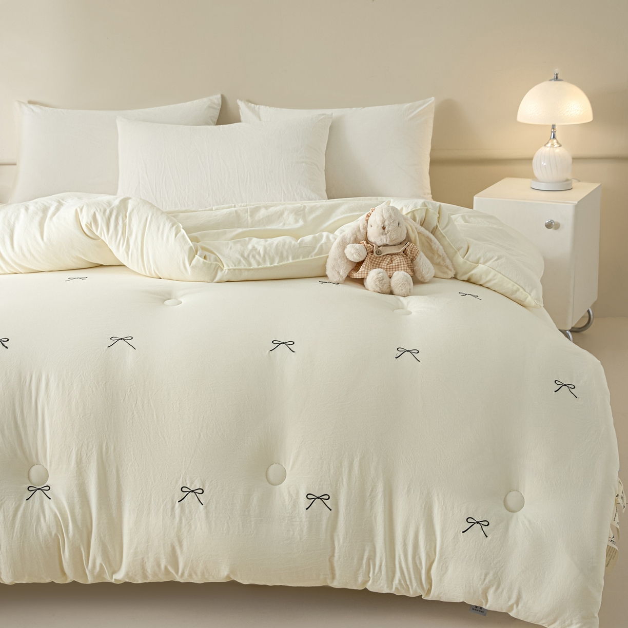 莱登卡奴 - 莱登卡奴 2025新款水洗棉满版刺绣大豆被被子被芯 满绣-蝴蝶结