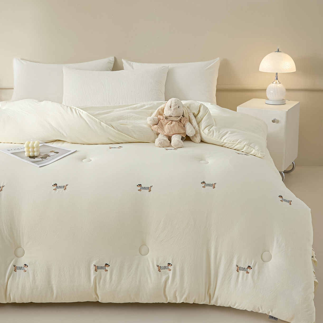 莱登卡奴 2025新款水洗棉满版刺绣大豆被被子被芯 满绣-腊肠狗