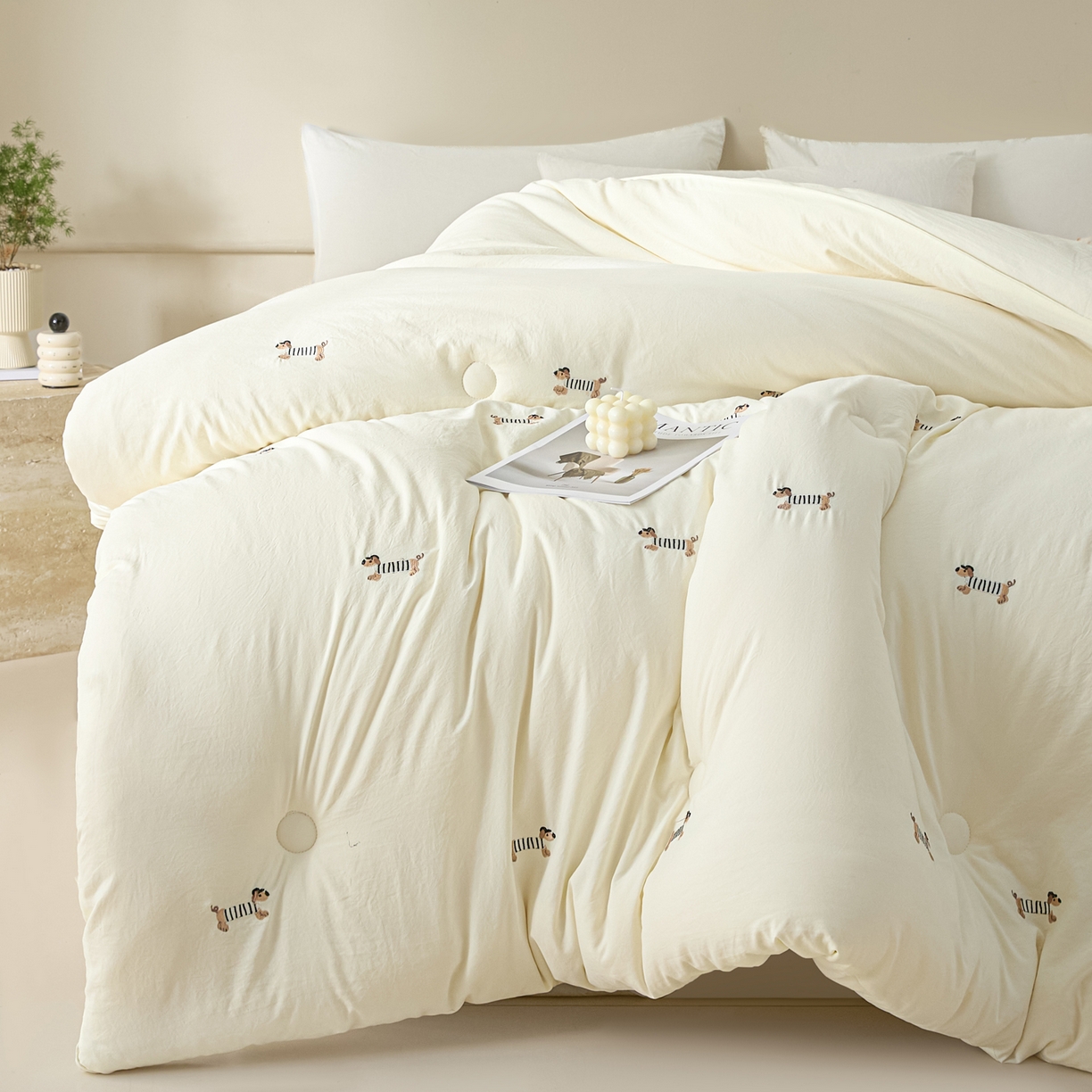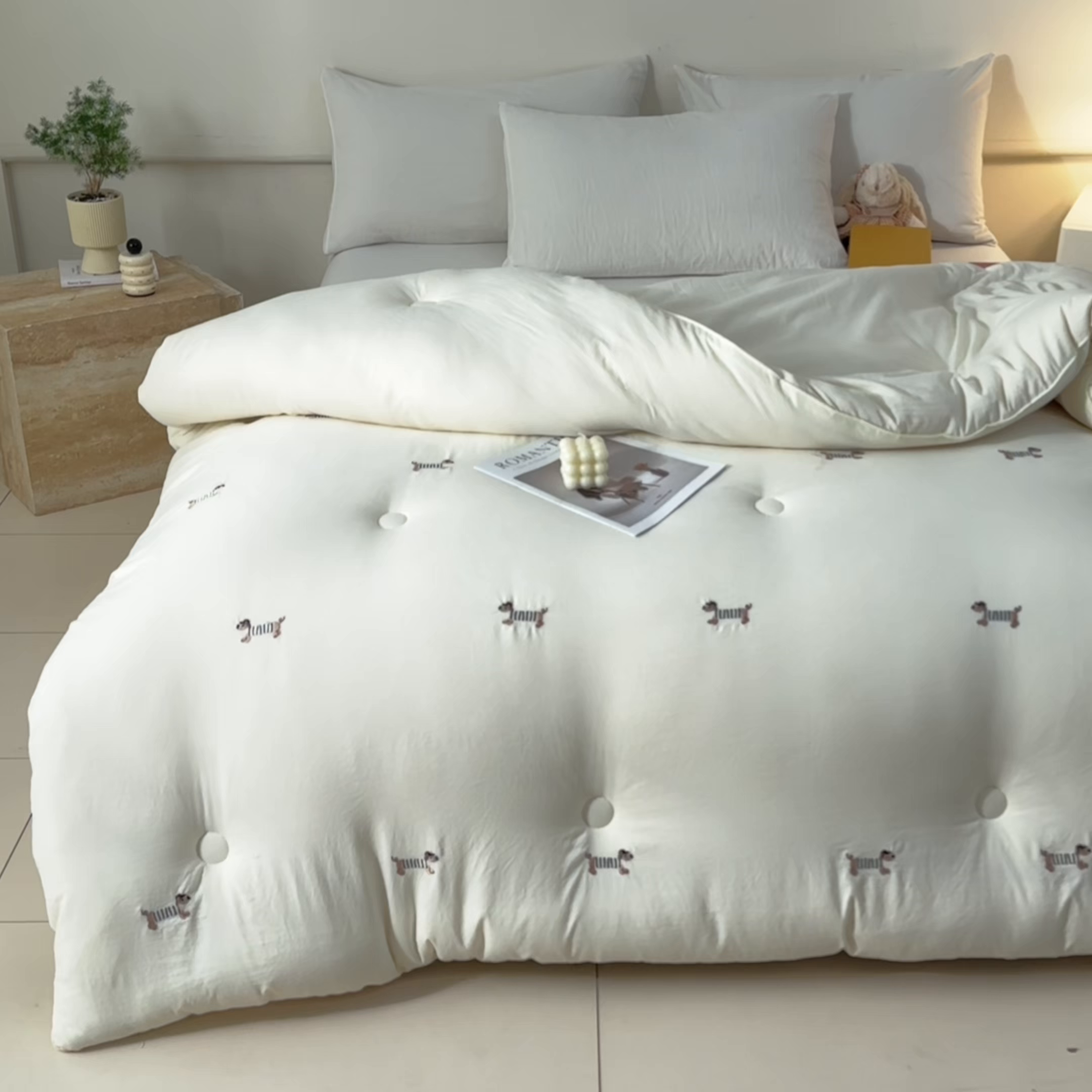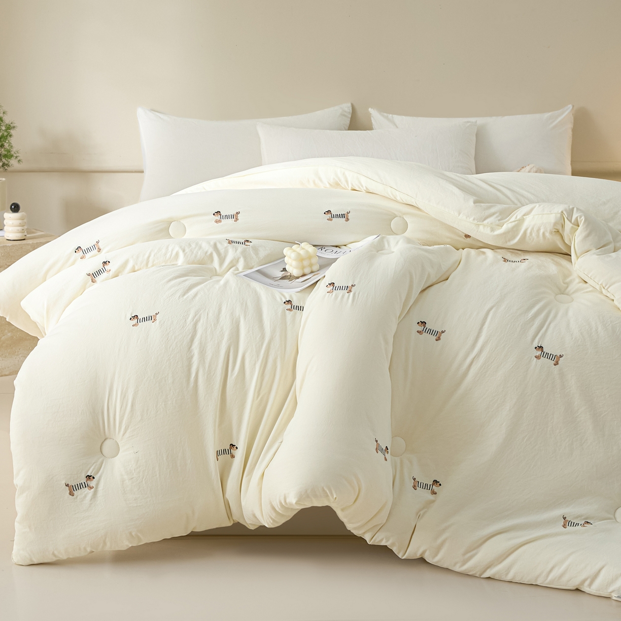 莱登卡奴 - 莱登卡奴 2025新款水洗棉满版刺绣大豆被被子被芯 满绣-腊肠狗
