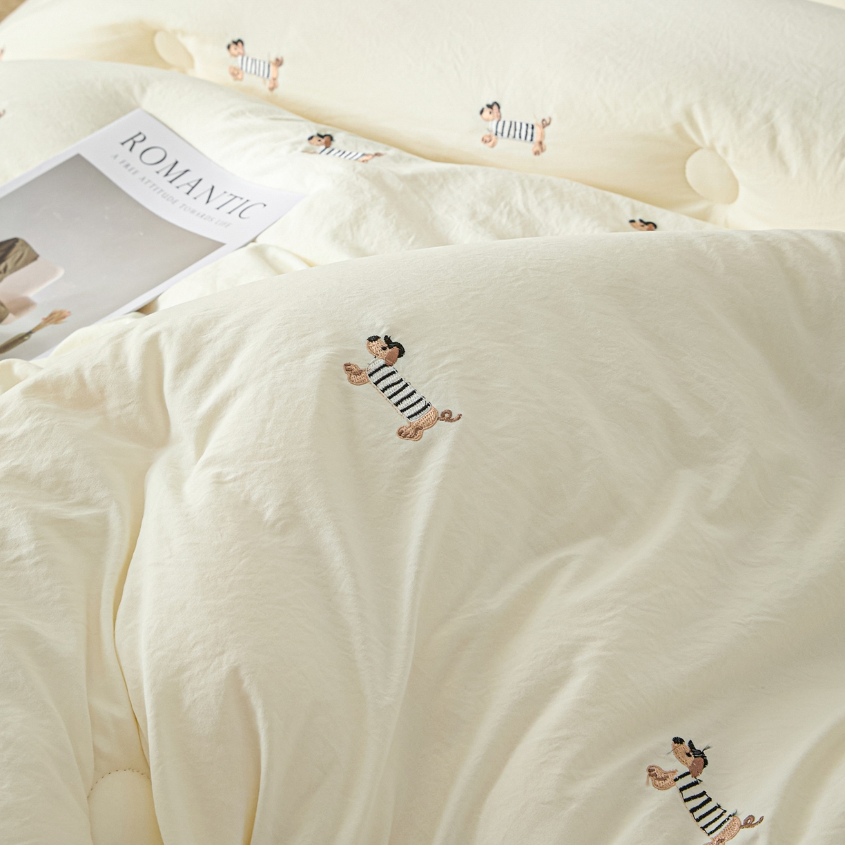 当前位置:莱登卡奴 > 莱登卡奴 2025新款水洗棉满版刺绣大豆被被子被芯 满绣-腊肠狗