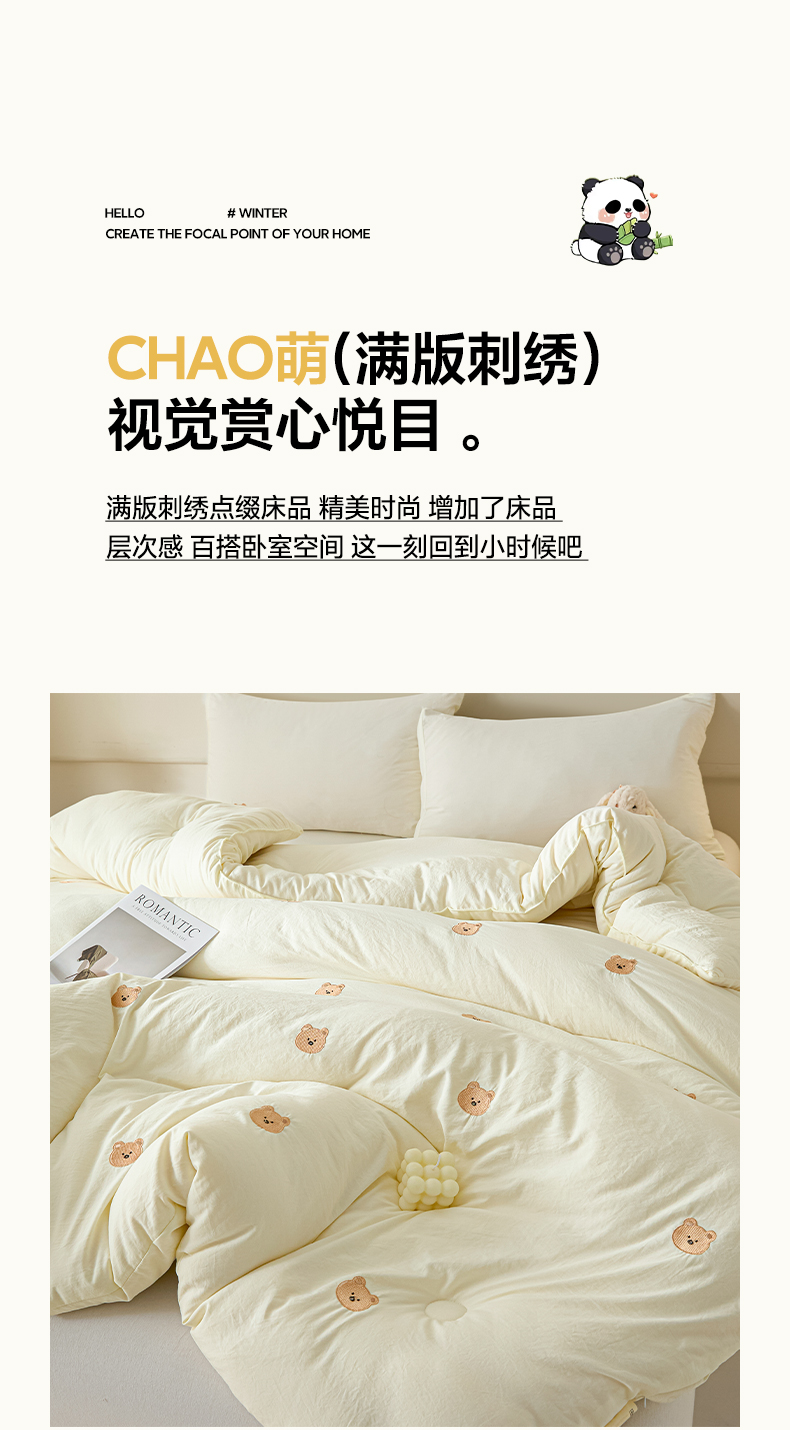 当前位置:莱登卡奴 > 莱登卡奴 2025新款水洗棉满版刺绣大豆被被子被芯 满绣-小熊