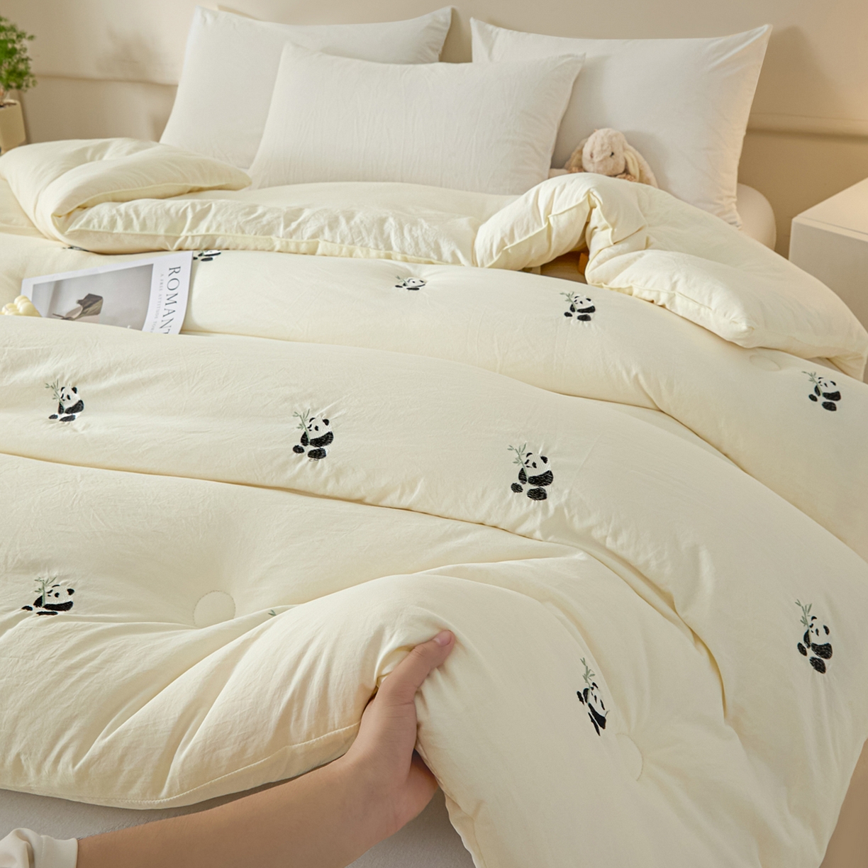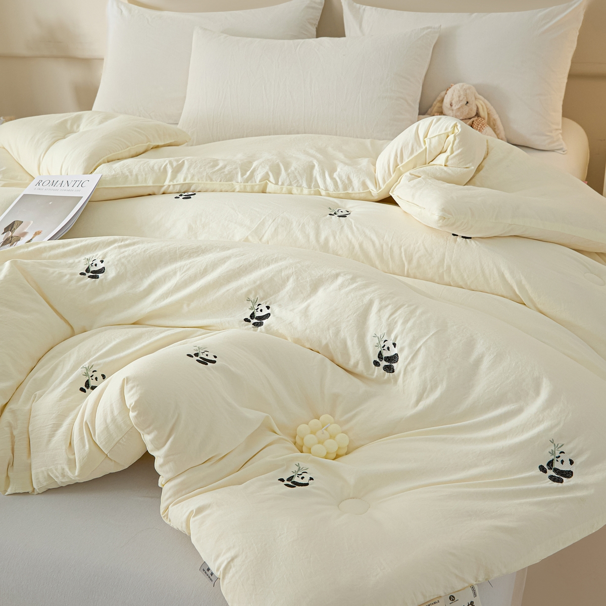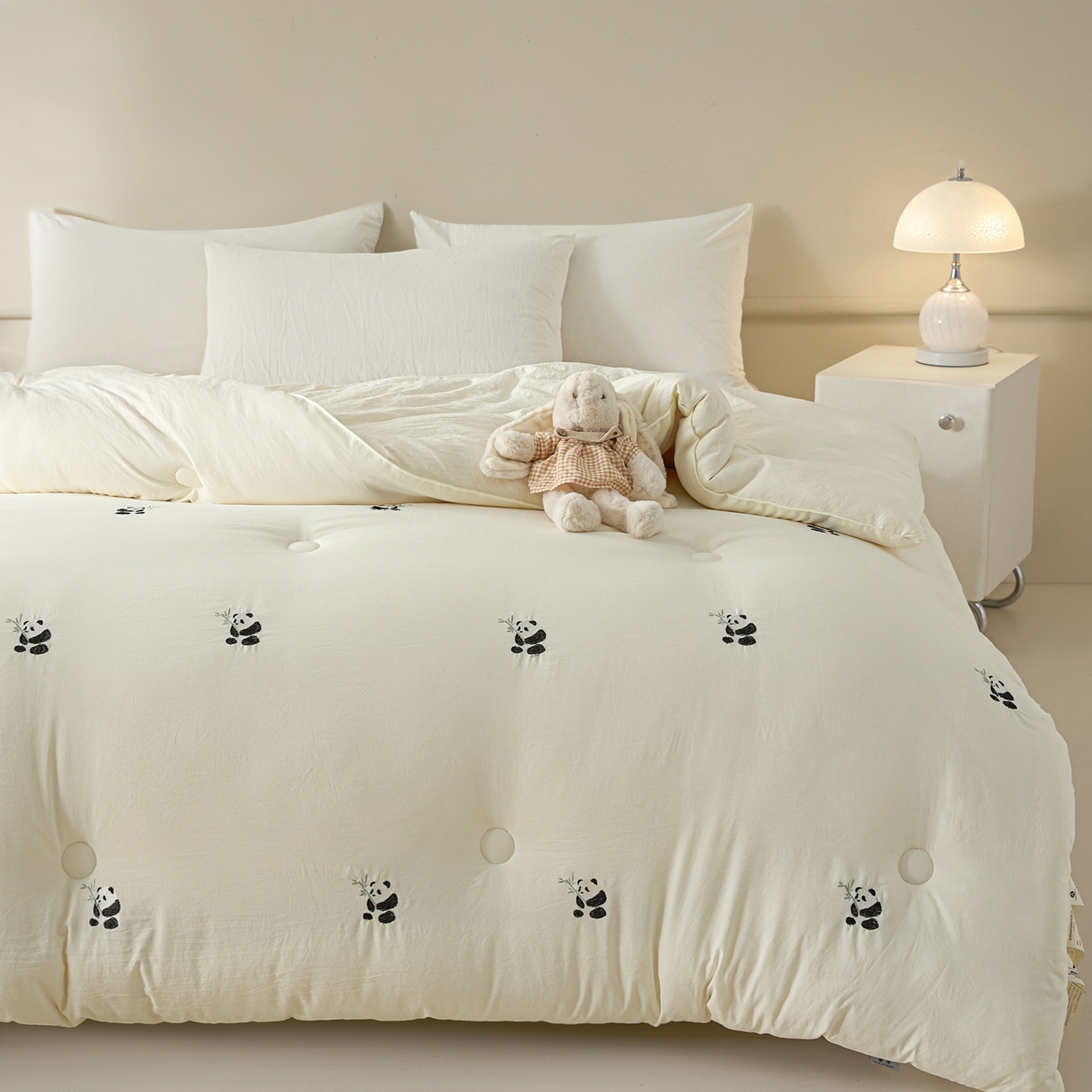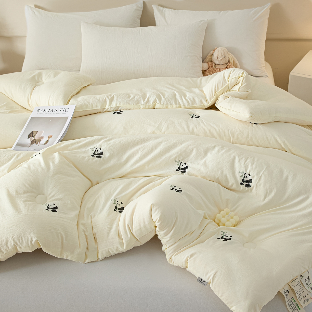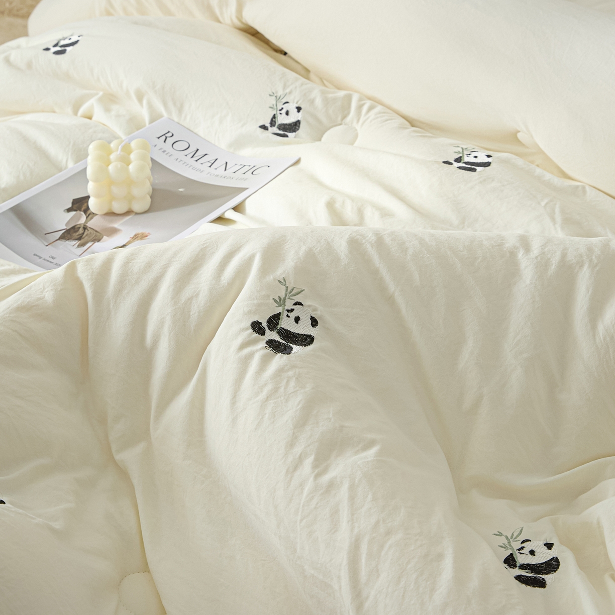 莱登卡奴 - 莱登卡奴 2025新款水洗棉满版刺绣大豆被被子被芯 满绣-熊猫