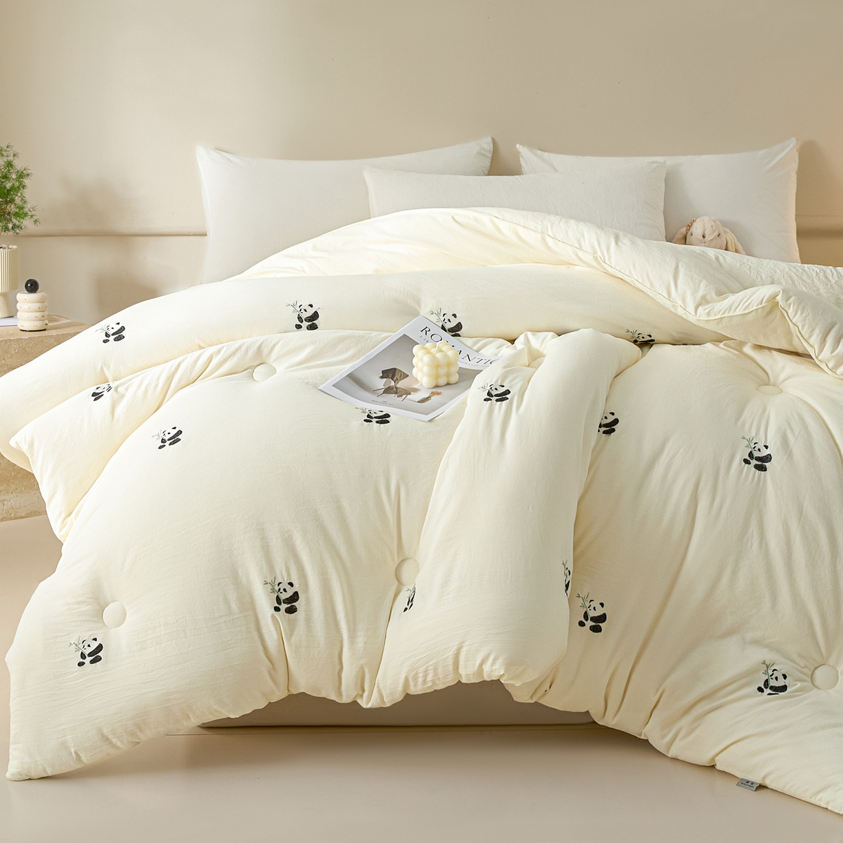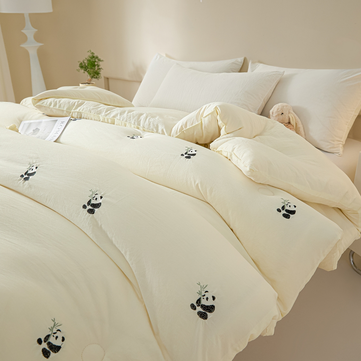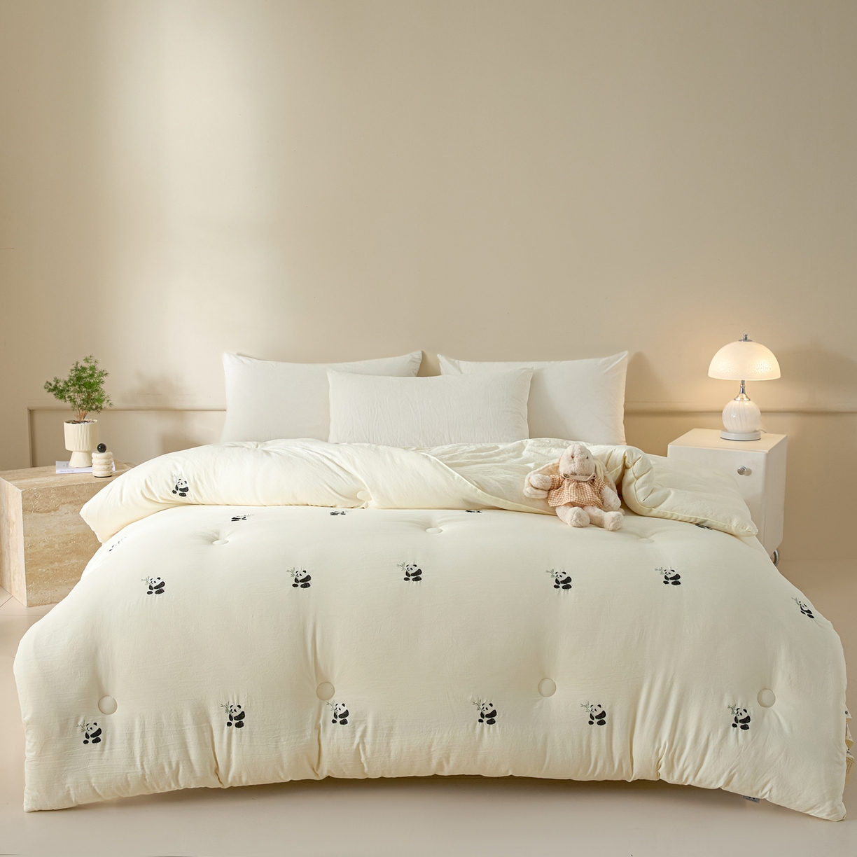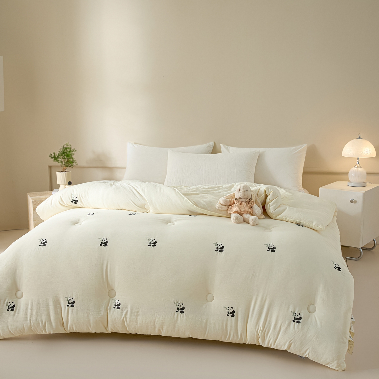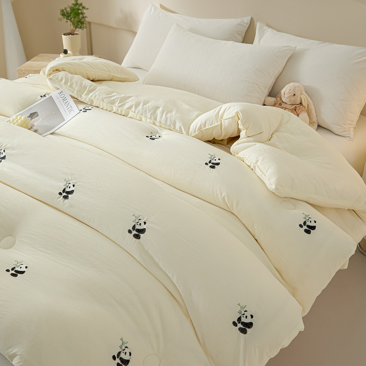 莱登卡奴 - 莱登卡奴 2025新款水洗棉满版刺绣大豆被被子被芯 满绣-熊猫