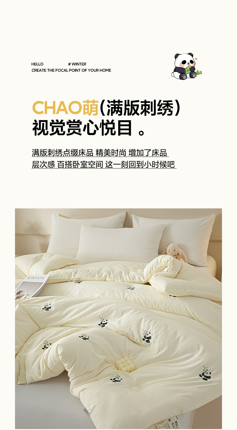 当前位置:莱登卡奴 > 莱登卡奴 2025新款水洗棉满版刺绣大豆被被子被芯 满绣-熊猫