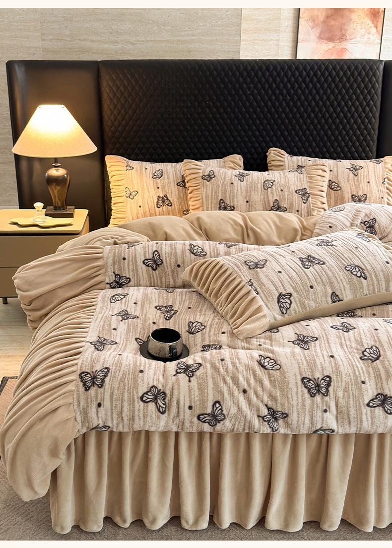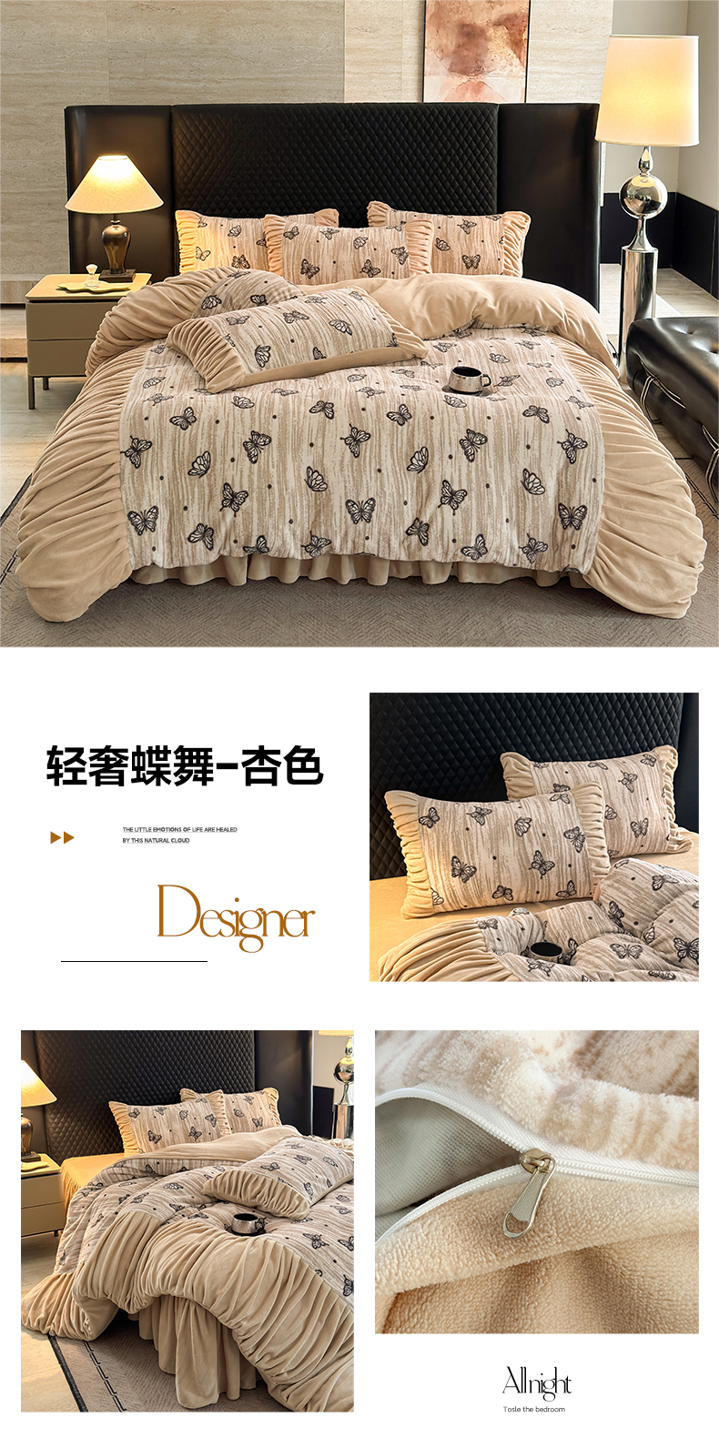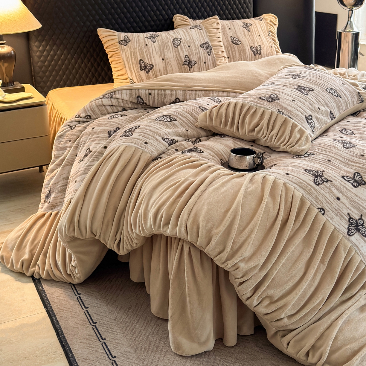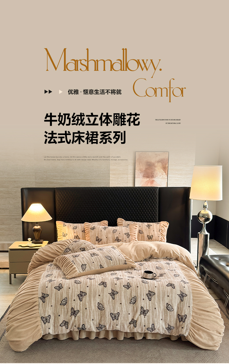> (总)莱登卡奴 2025新款高克重牛奶绒雕花法式轻奢款床单床裙系列四件套