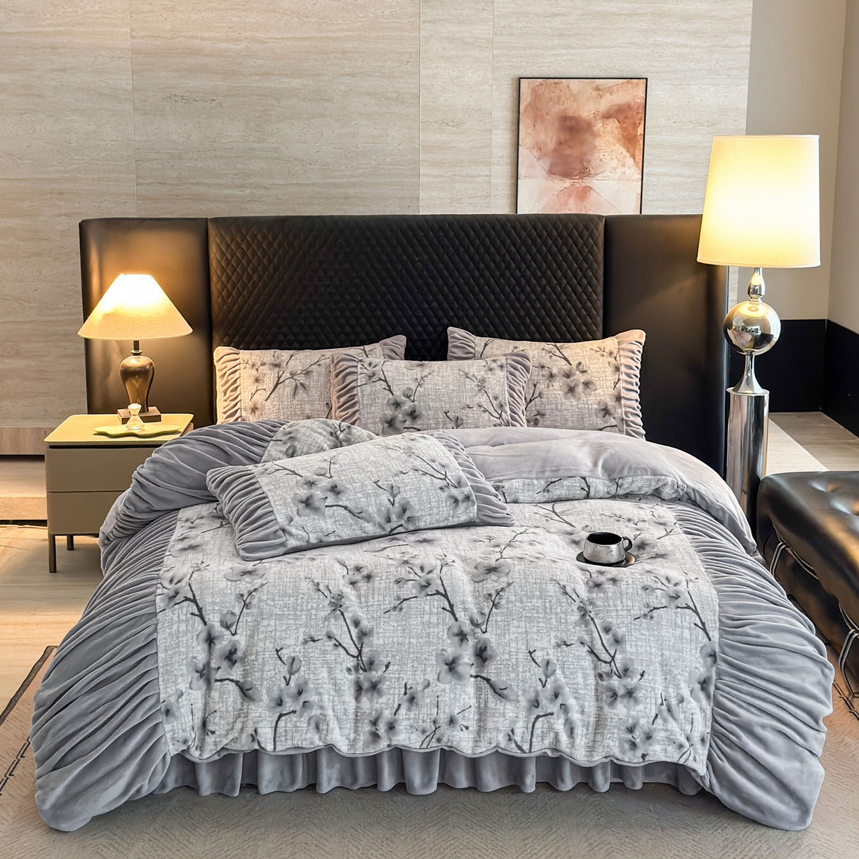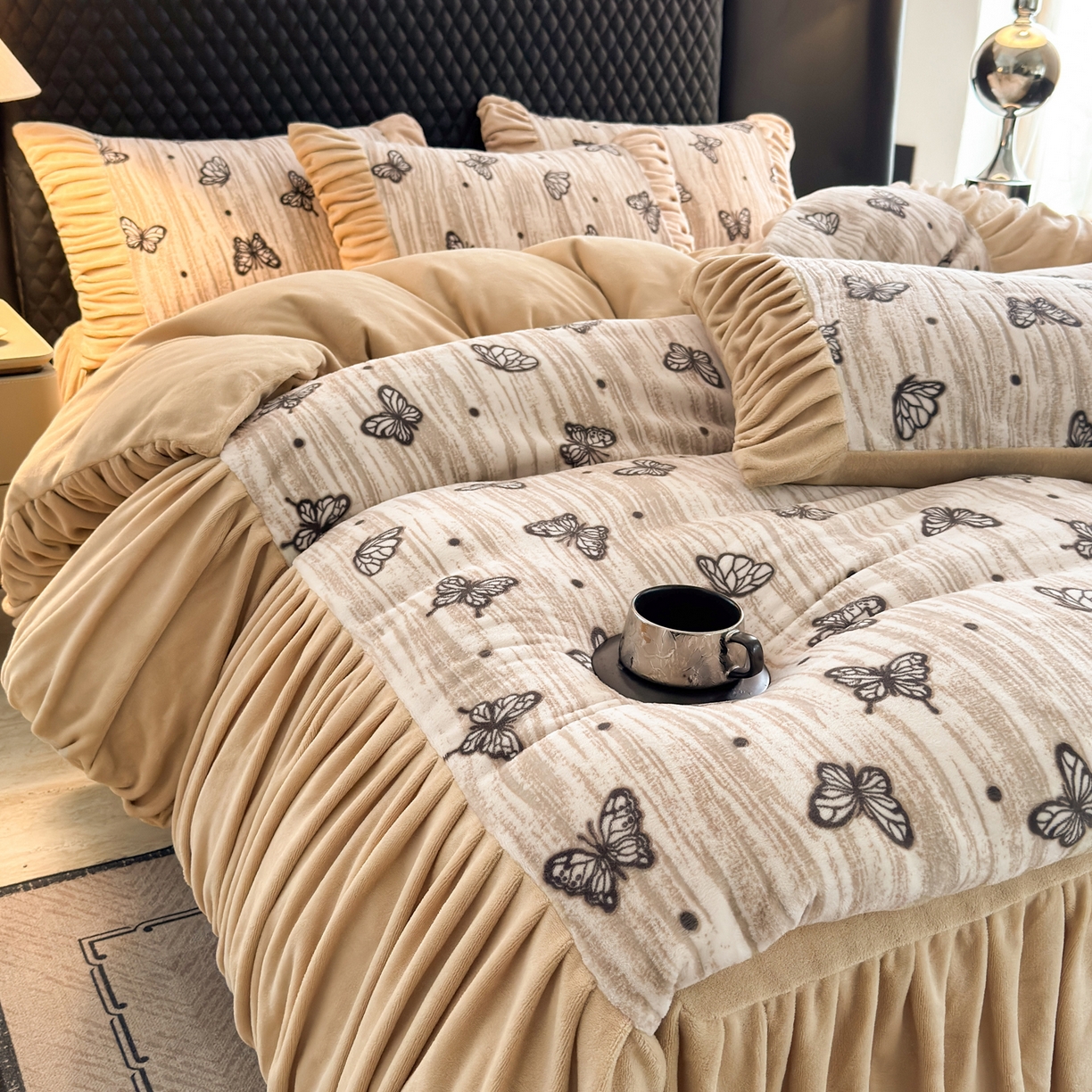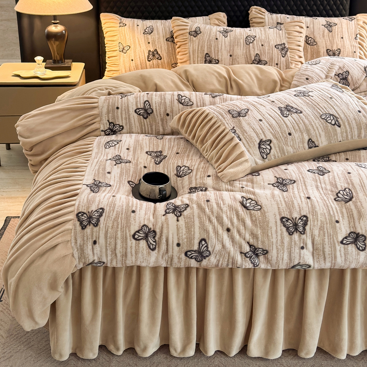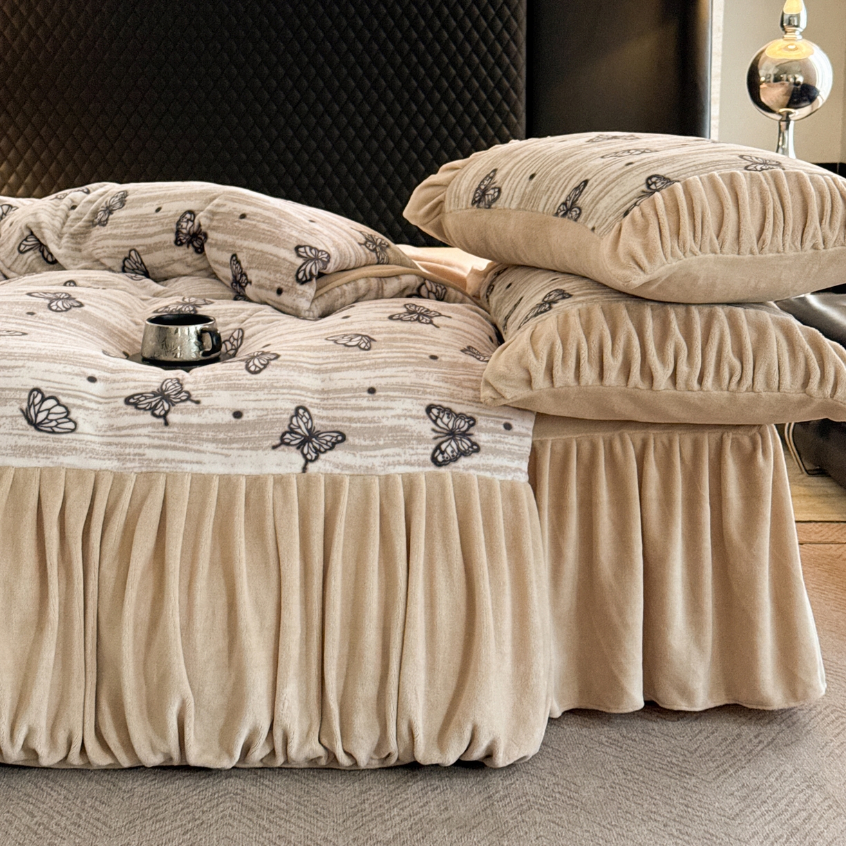 > (总)莱登卡奴 2025新款高克重牛奶绒雕花法式轻奢款床单床裙系列四件套