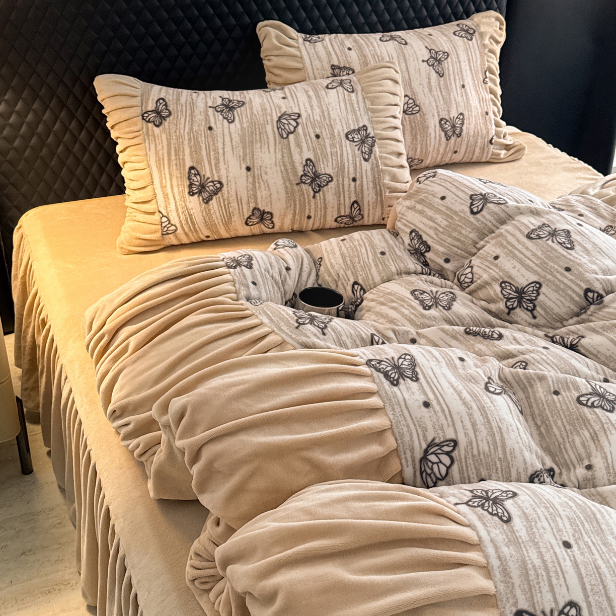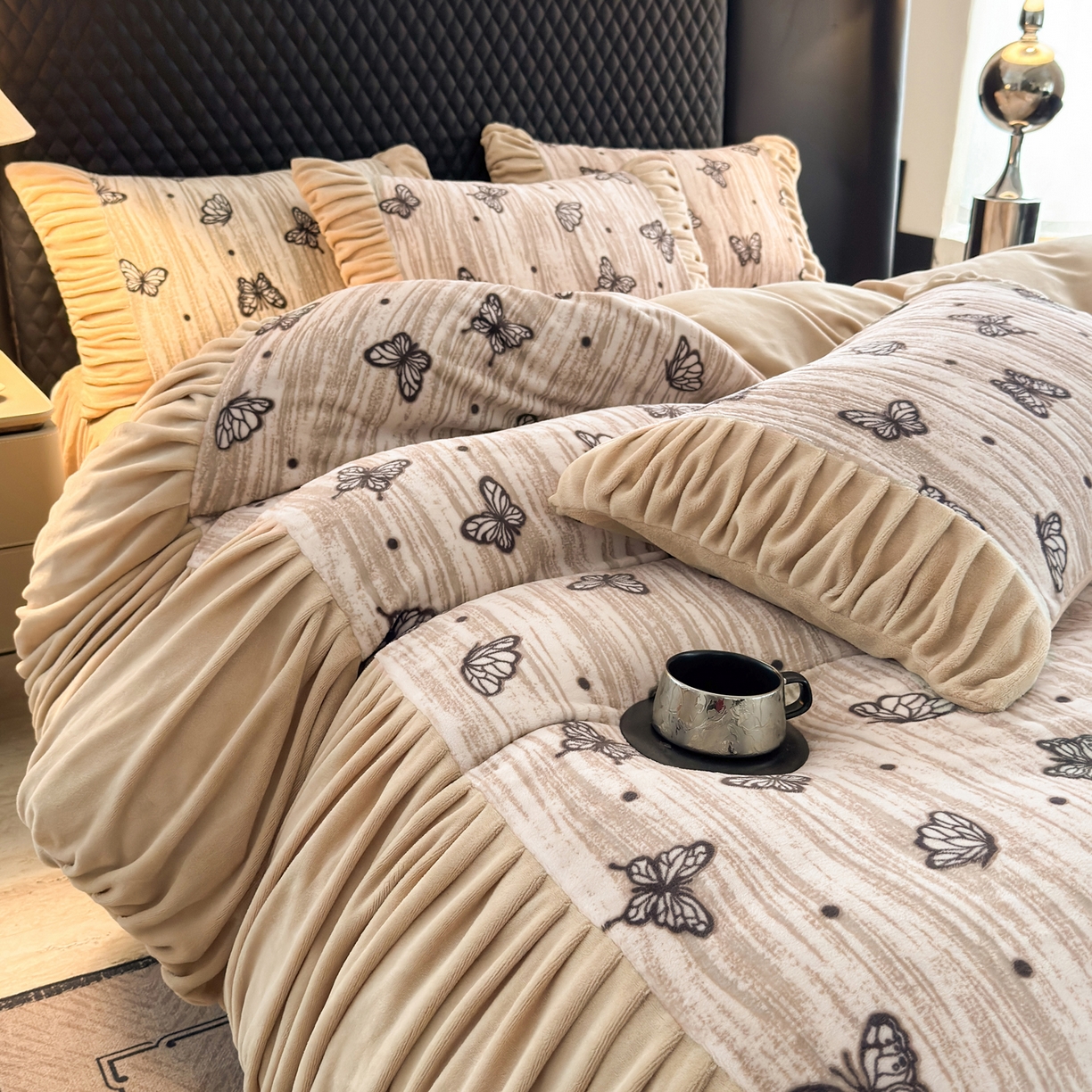 2025新款高克重牛奶绒花边床盖款系列四件套