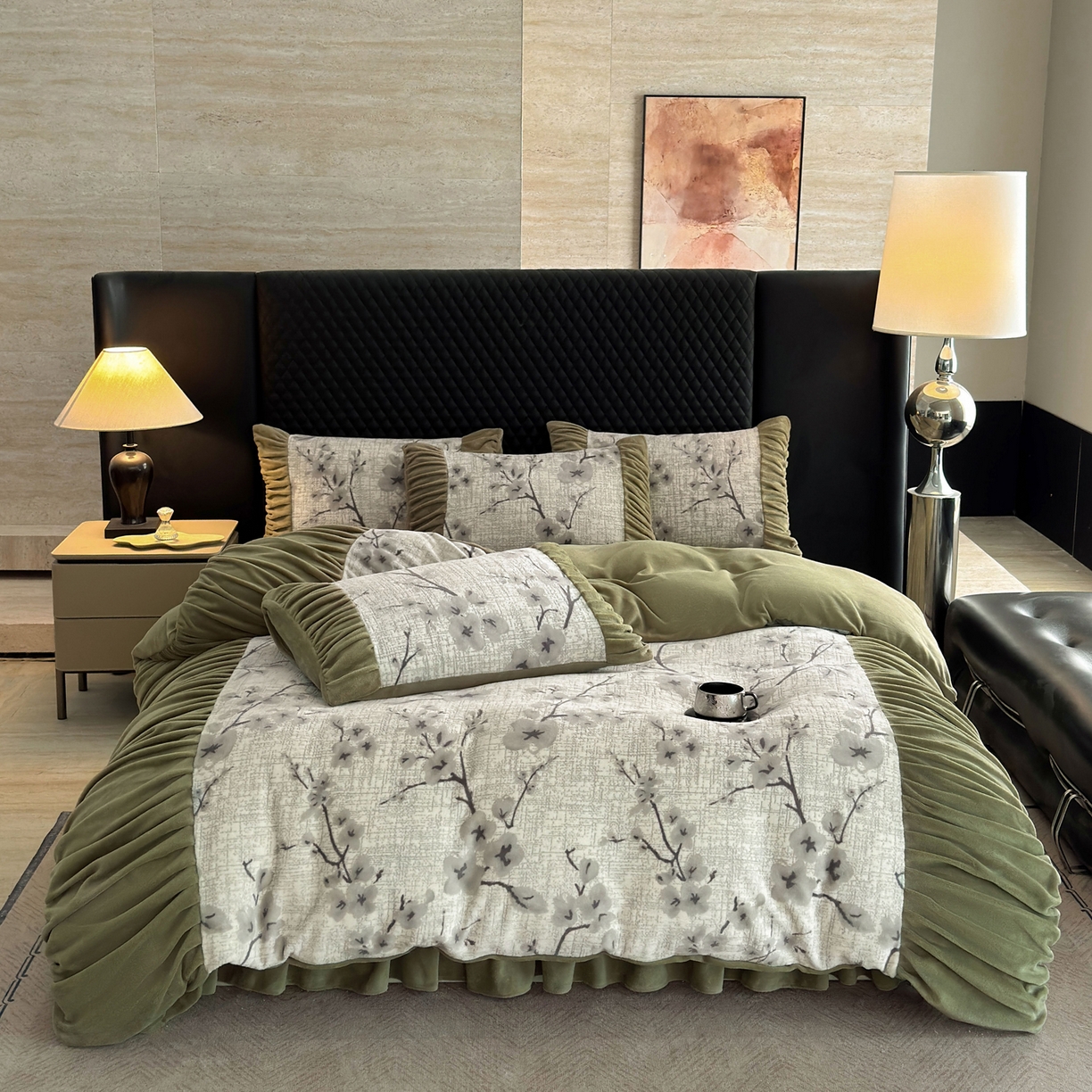 2025新款A类高克重牛奶绒泡泡绒印花美拉德风系列四件套