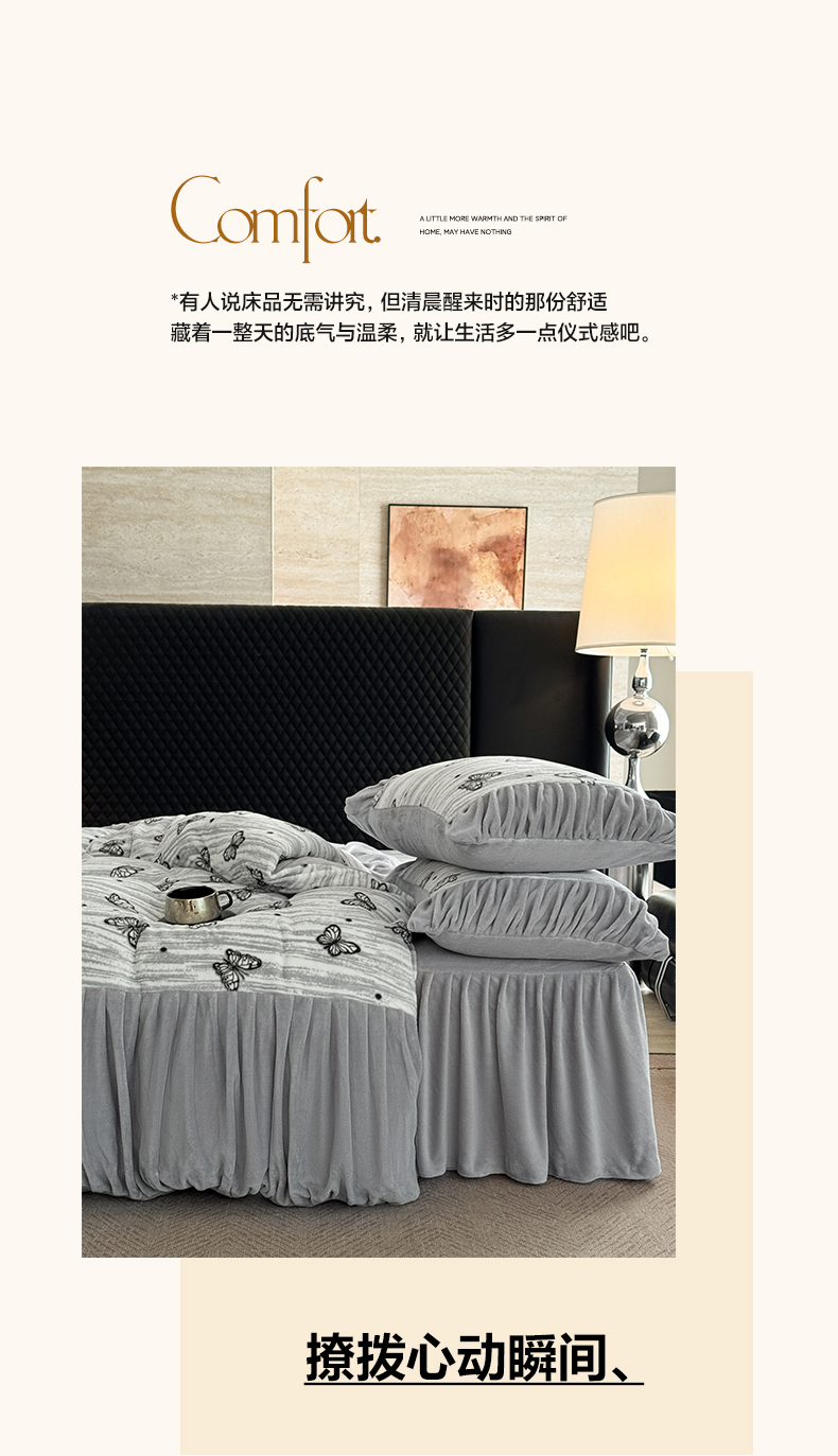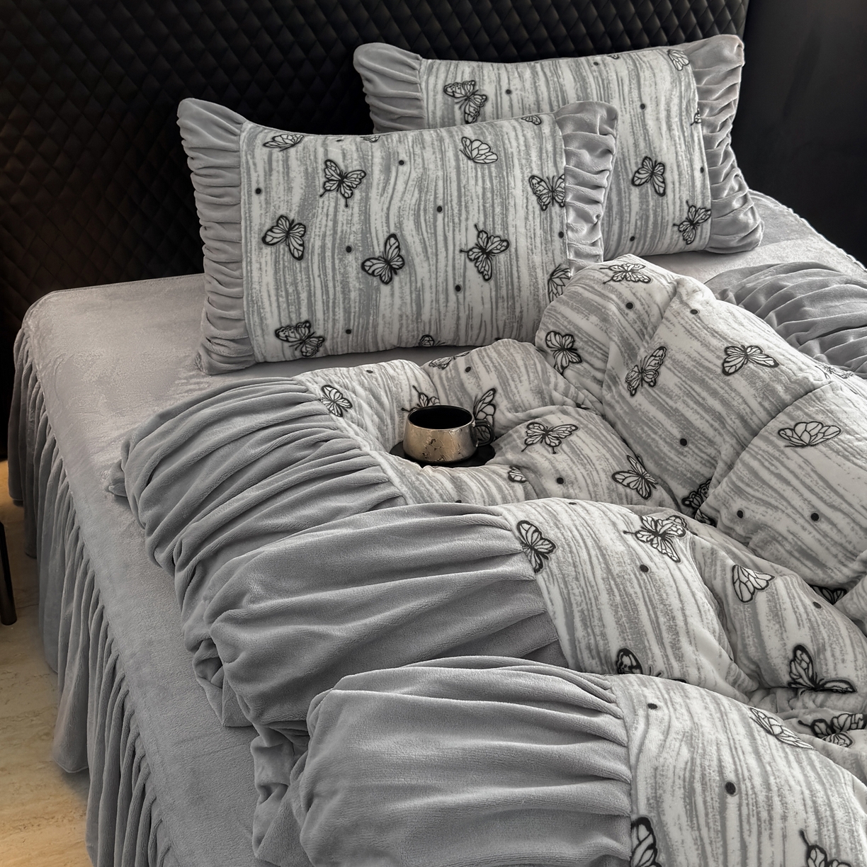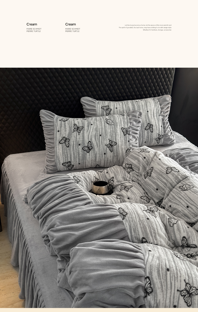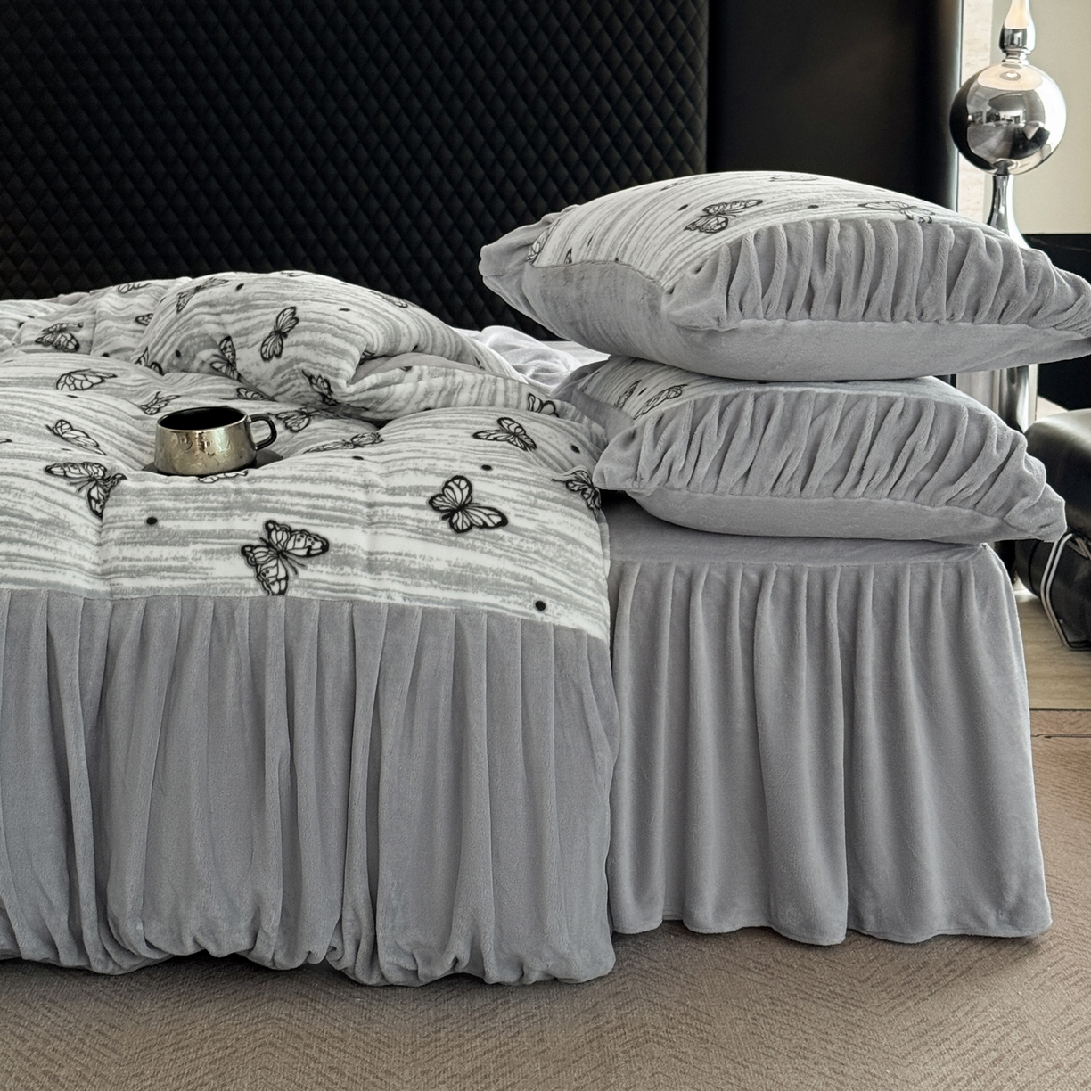 > 莱登卡奴 2025新款高克重牛奶绒雕花法式轻奢款床单床裙系列四件套 轻奢蝶舞-银灰