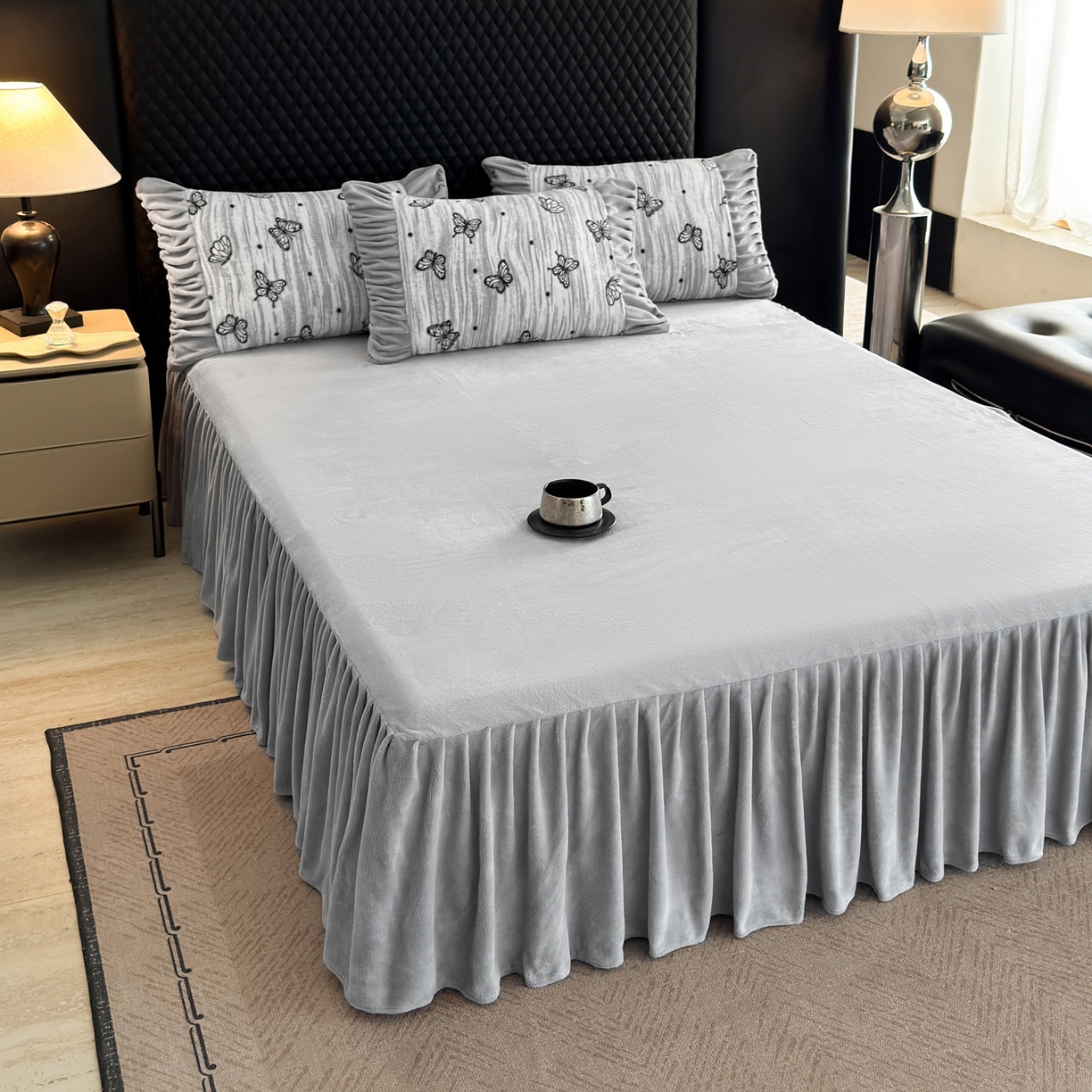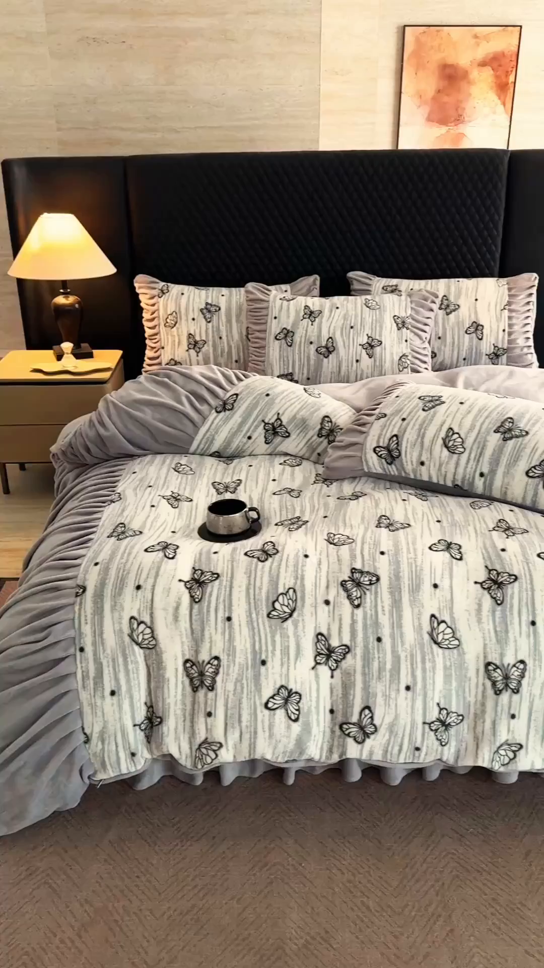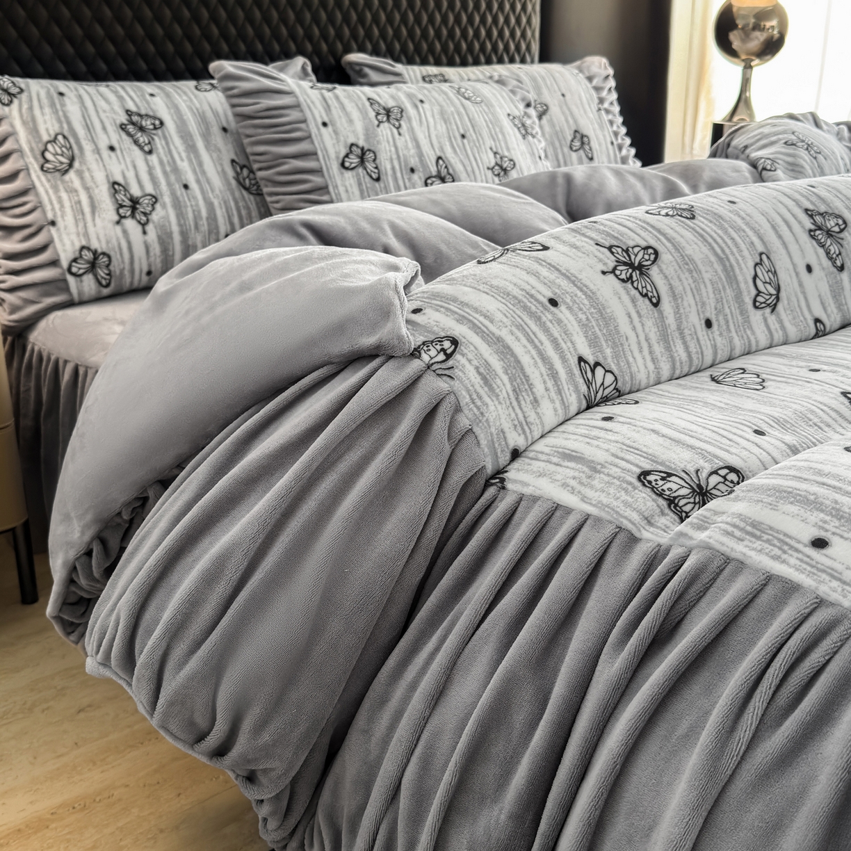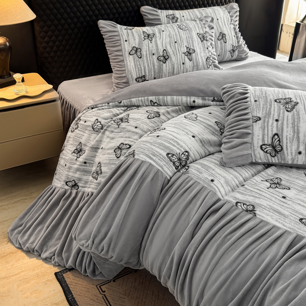 > 莱登卡奴 2025新款高克重牛奶绒雕花法式轻奢款床单床裙系列四件套 轻奢蝶舞-银灰