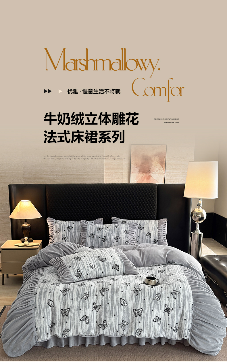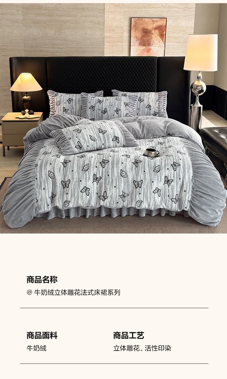 2025新款高克重牛奶绒雕花法式轻奢款床单床裙系列四件套