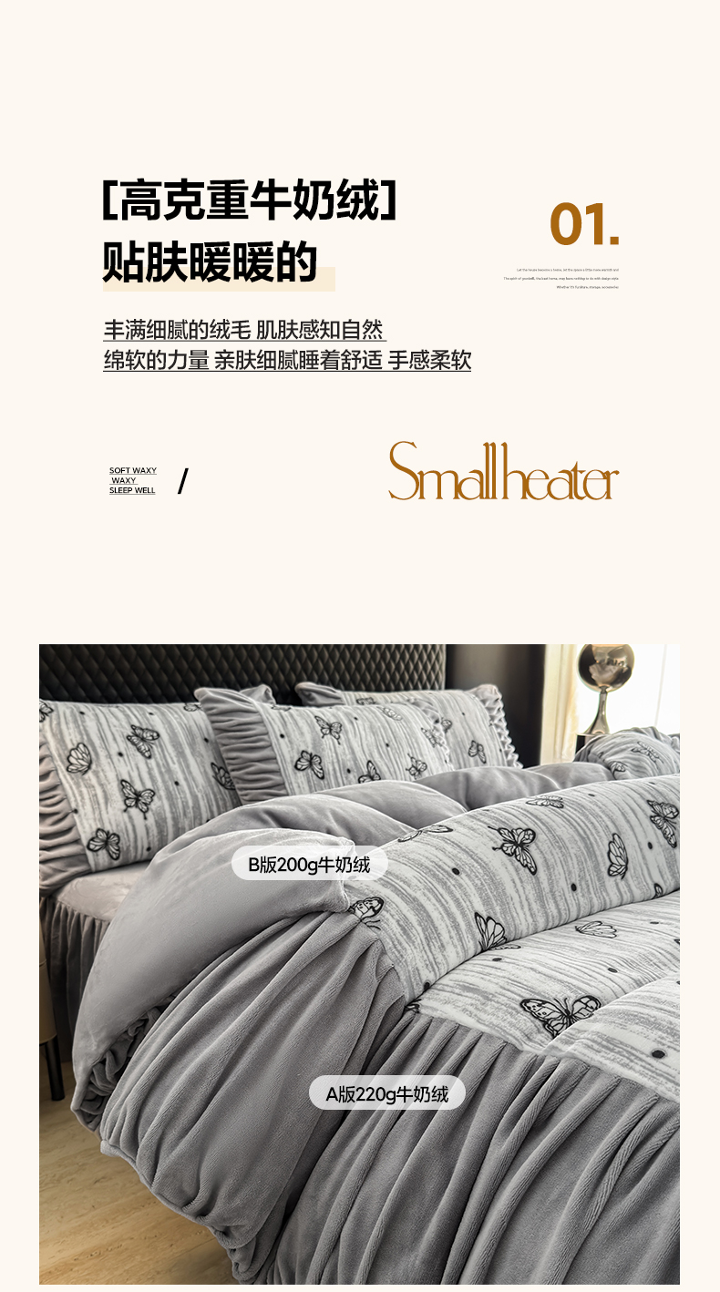 2025新款A类高克重牛奶绒泡泡绒印花美拉德风系列四件套