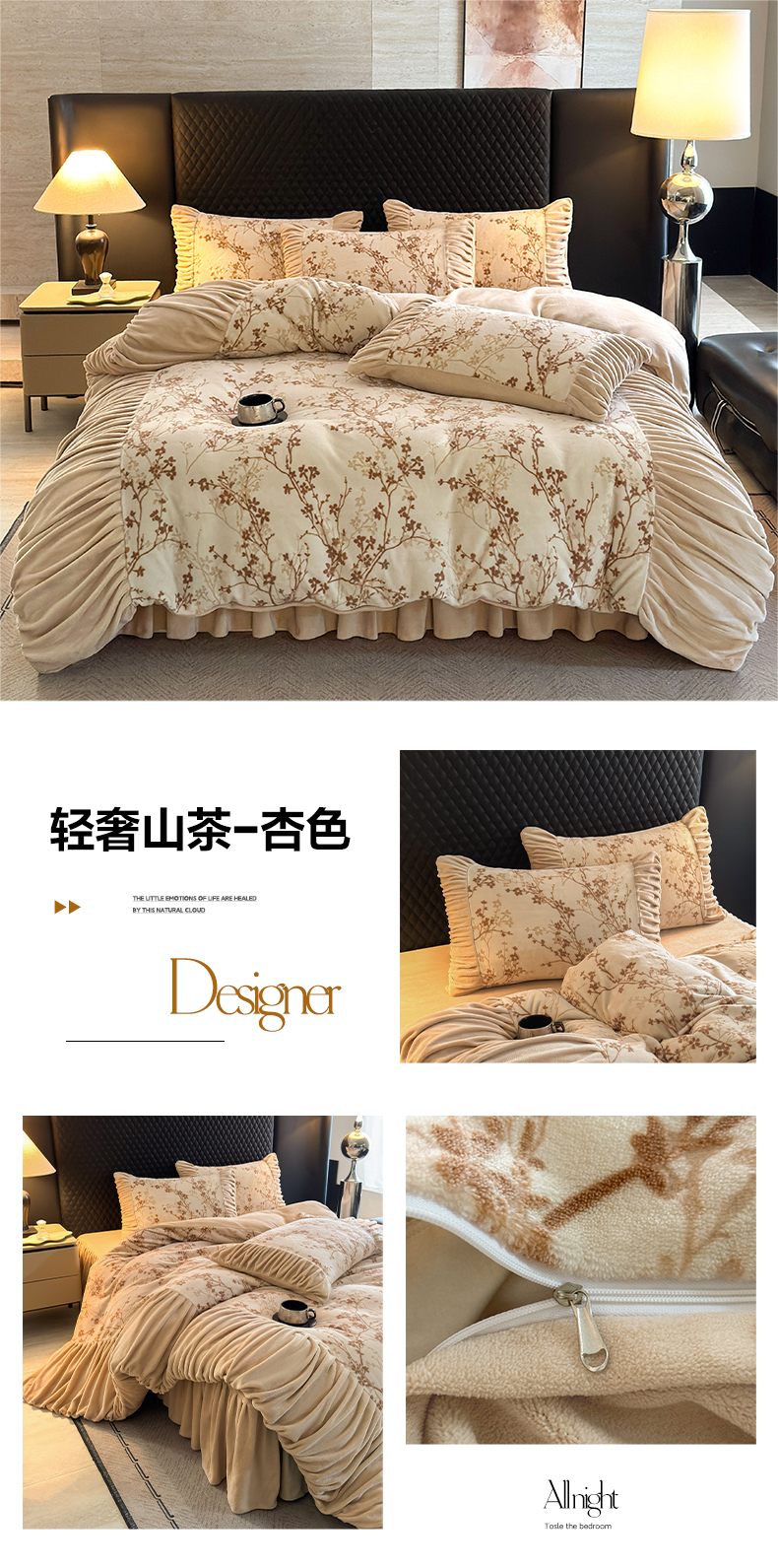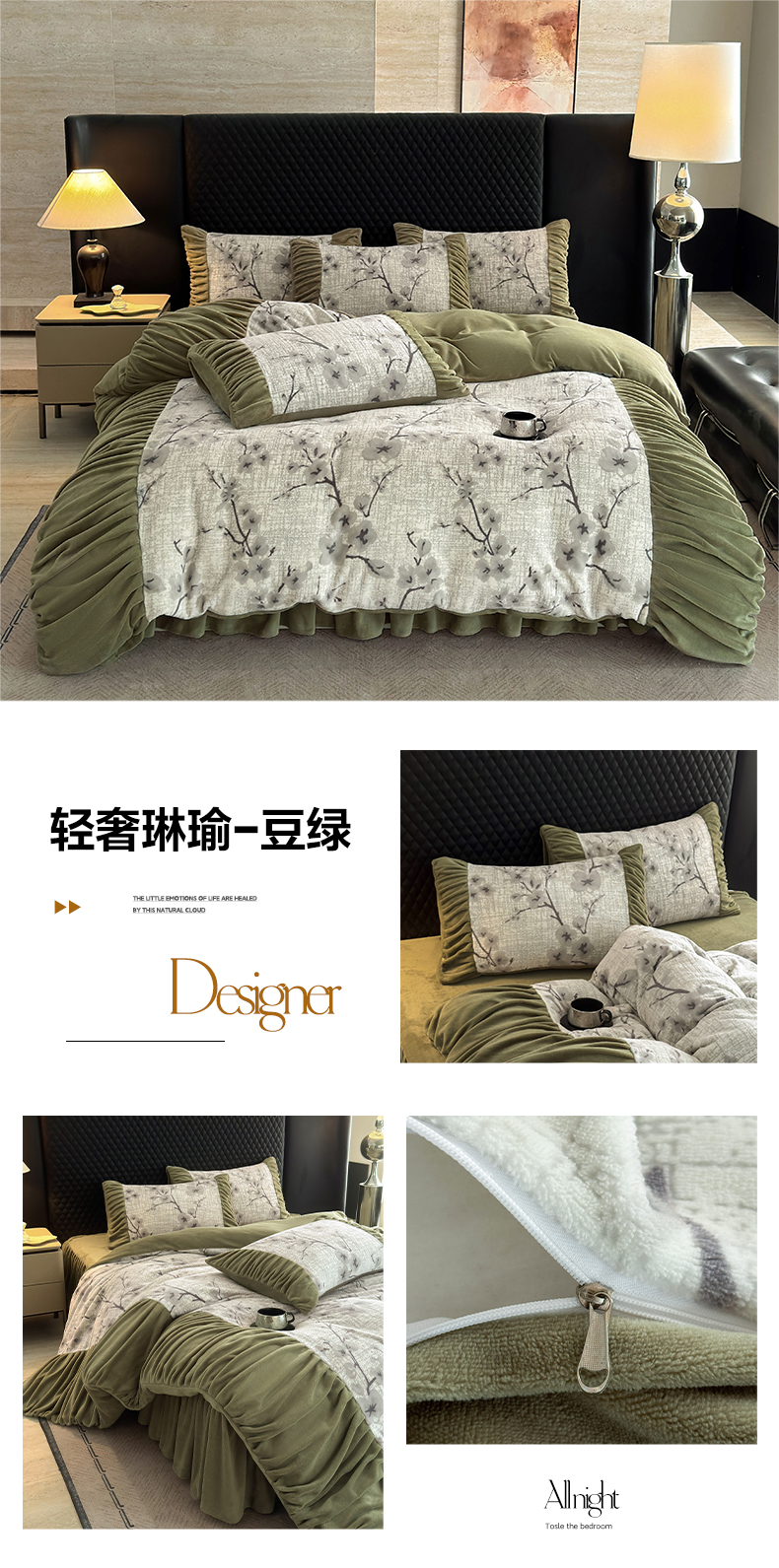 2025新款高克重牛奶绒花边床盖款系列四件套