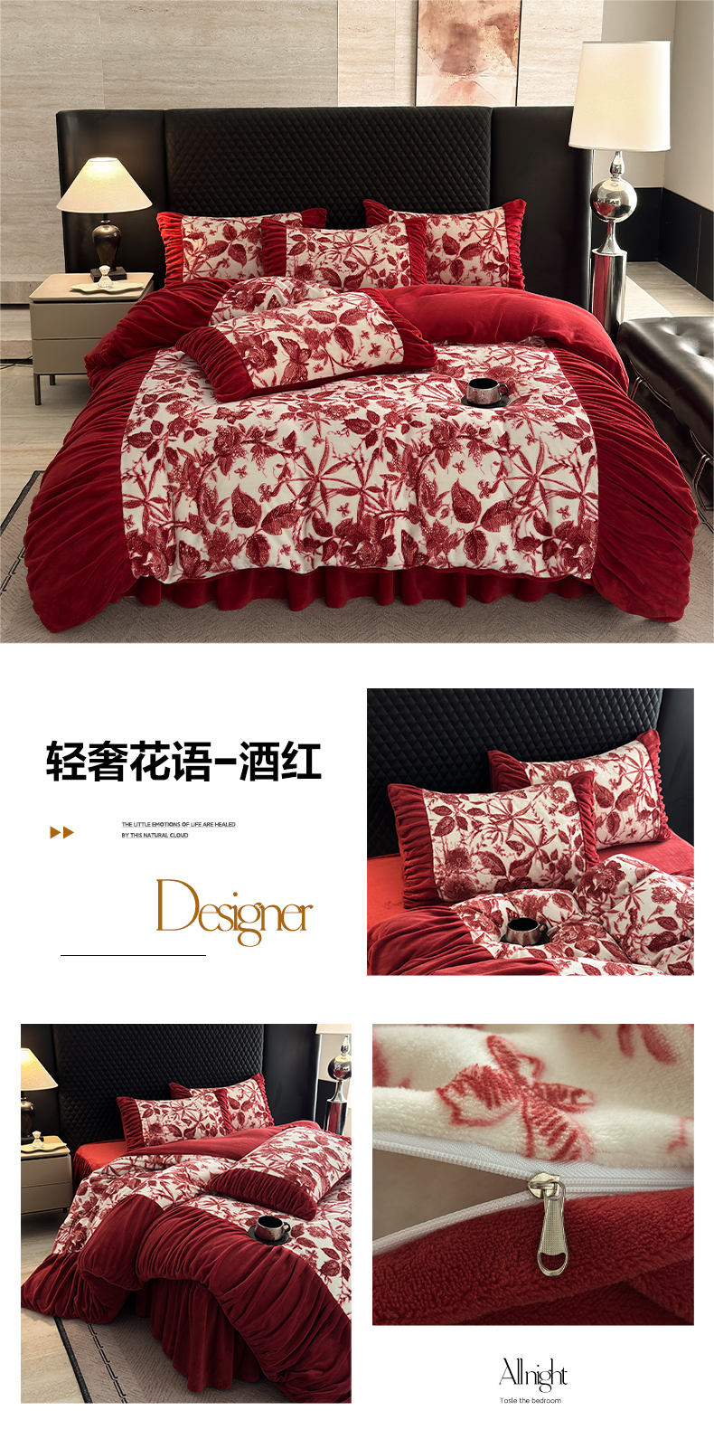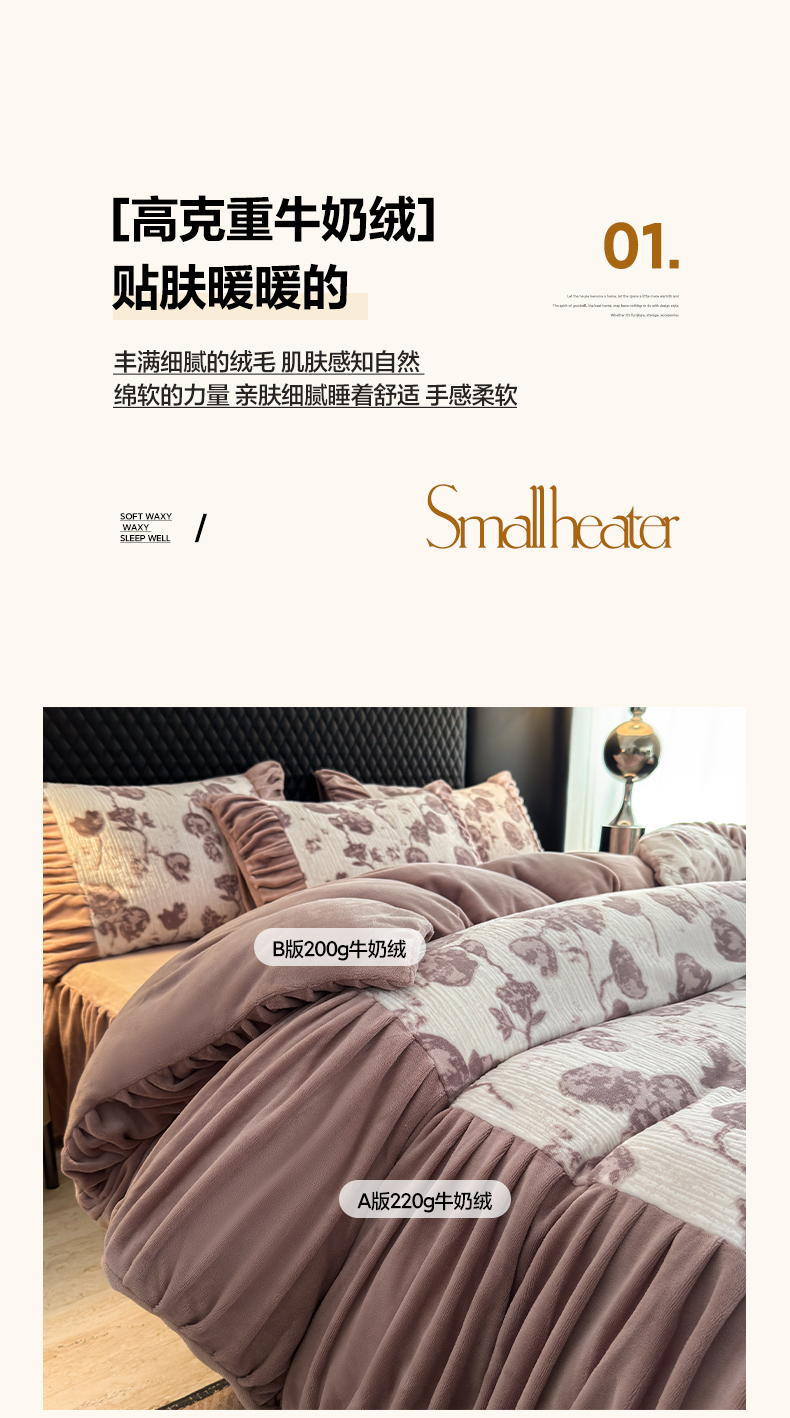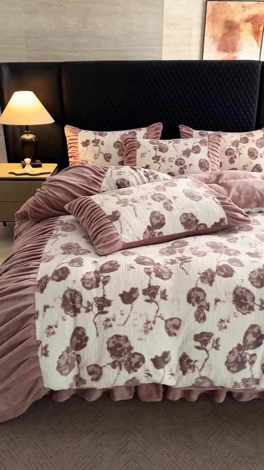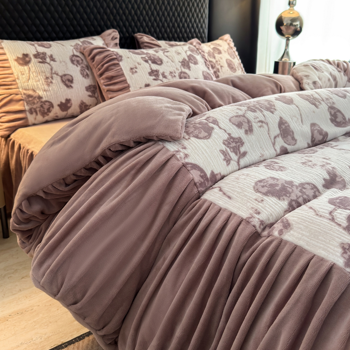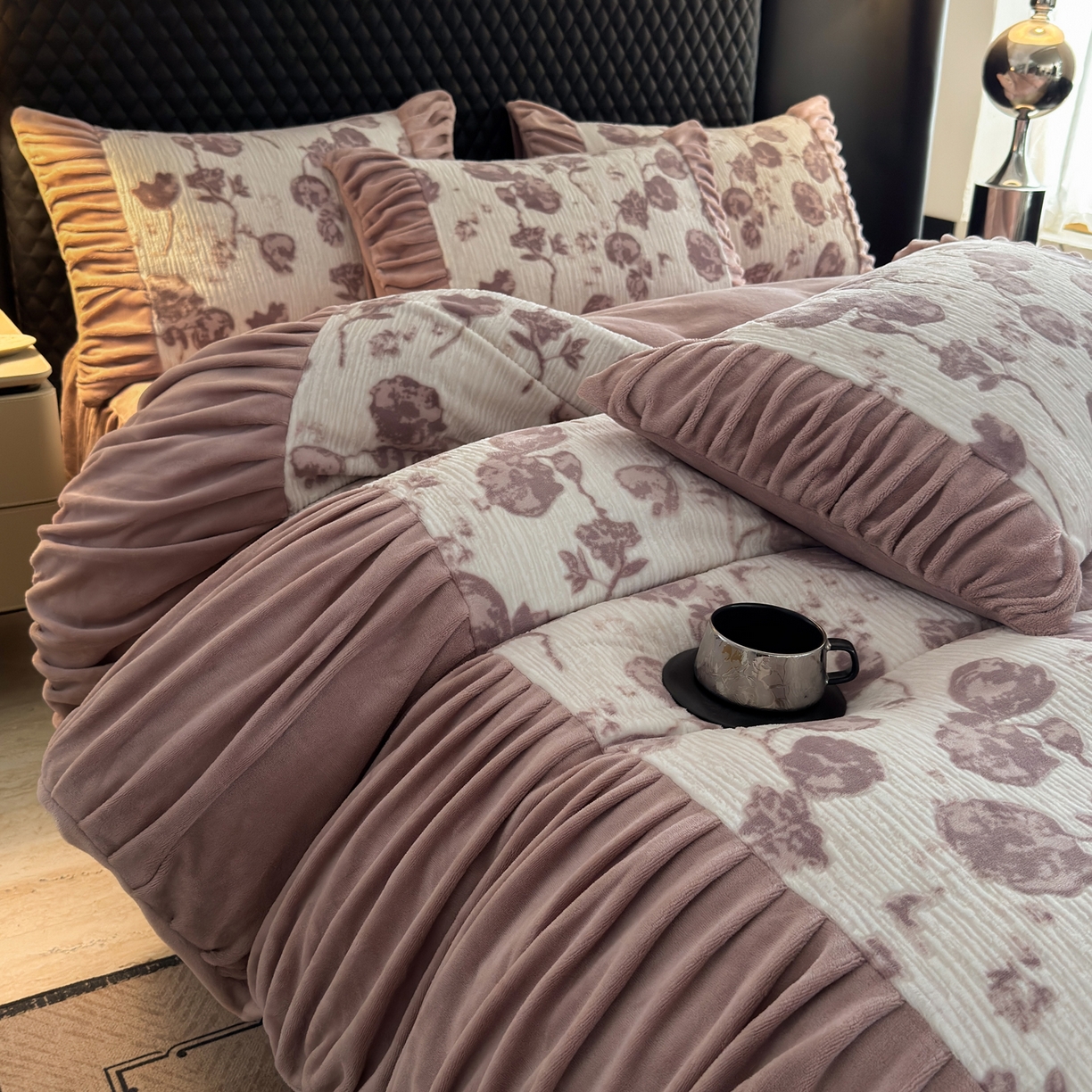 > 莱登卡奴 2025新款高克重牛奶绒雕花法式轻奢款床单床裙系列四件套 轻奢复色-深粉