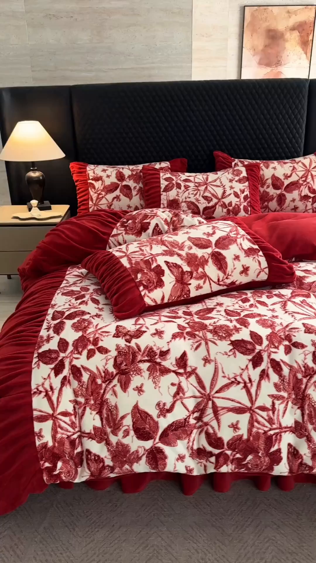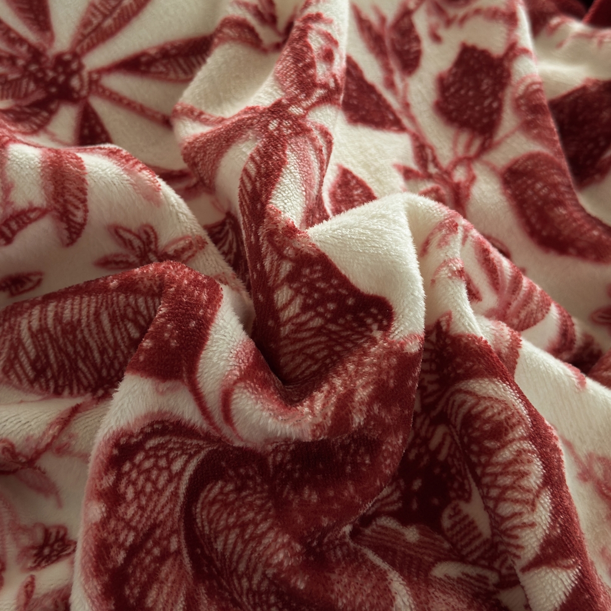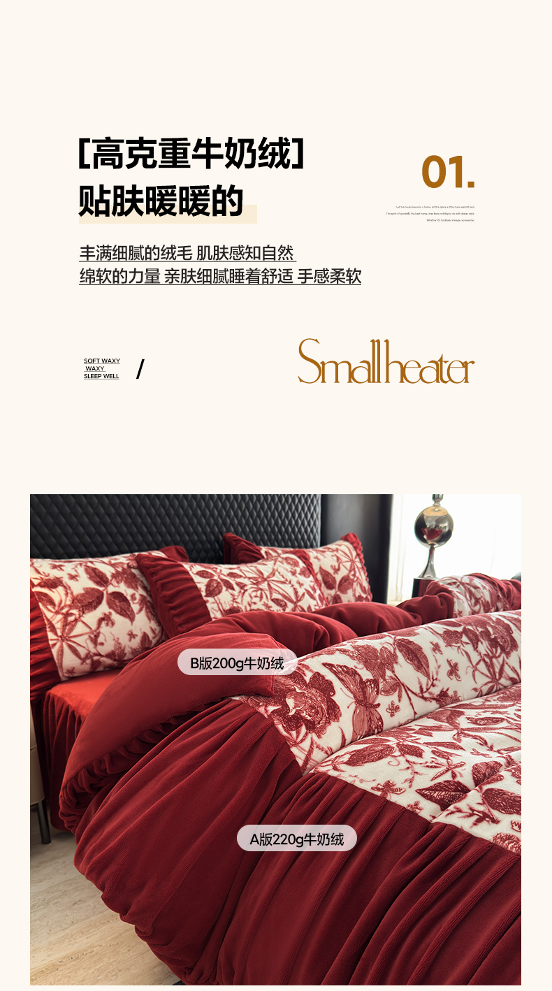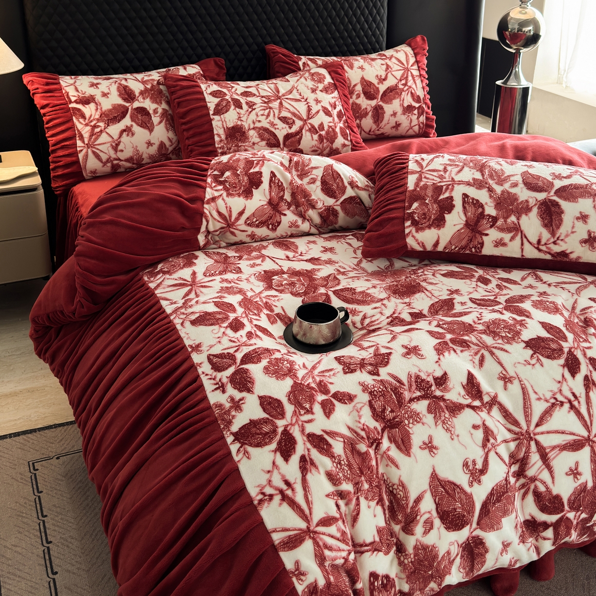 > 莱登卡奴 2025新款高克重牛奶绒雕花法式轻奢款床单床裙系列四件套 轻奢花语-酒红