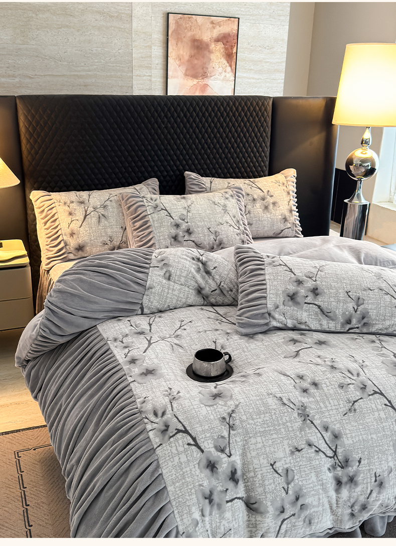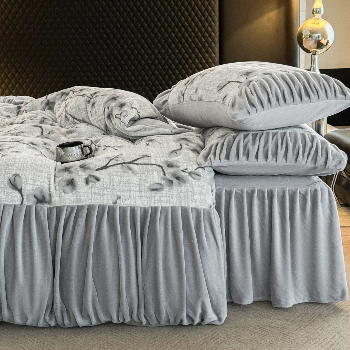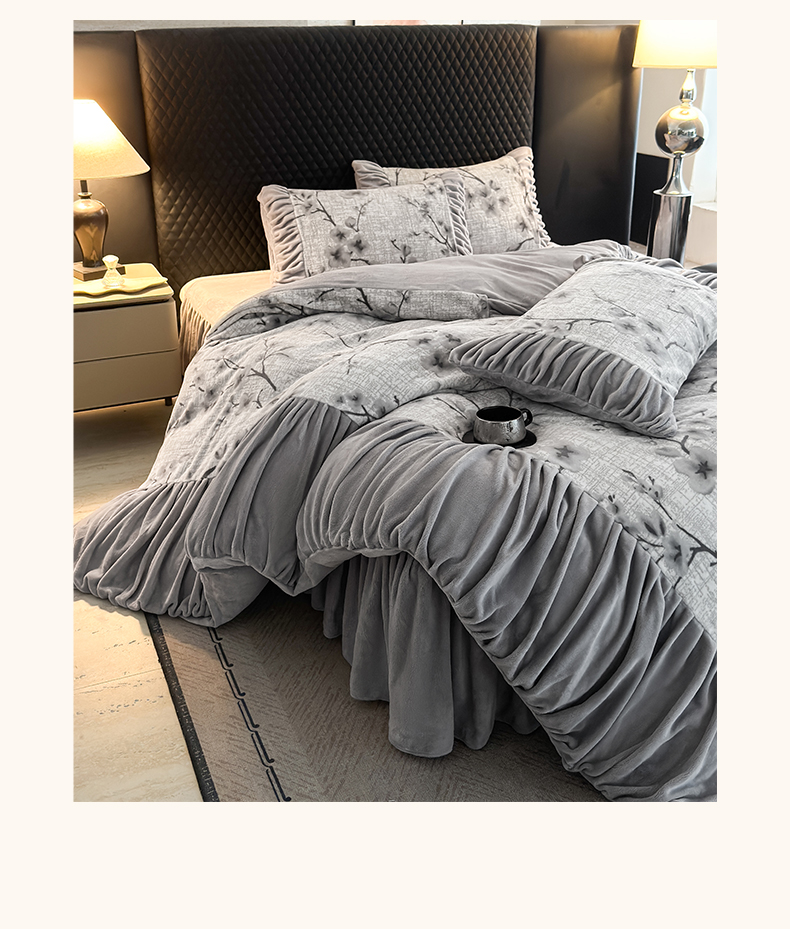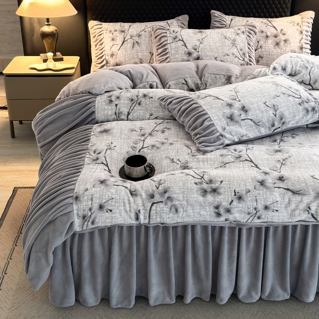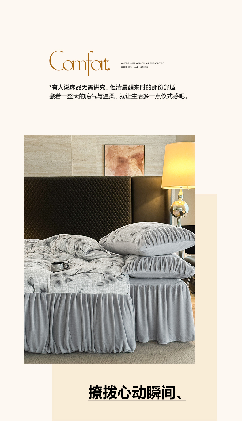 > 莱登卡奴 2025新款高克重牛奶绒雕花法式轻奢款床单床裙系列四件套 轻奢琳瑜-银灰