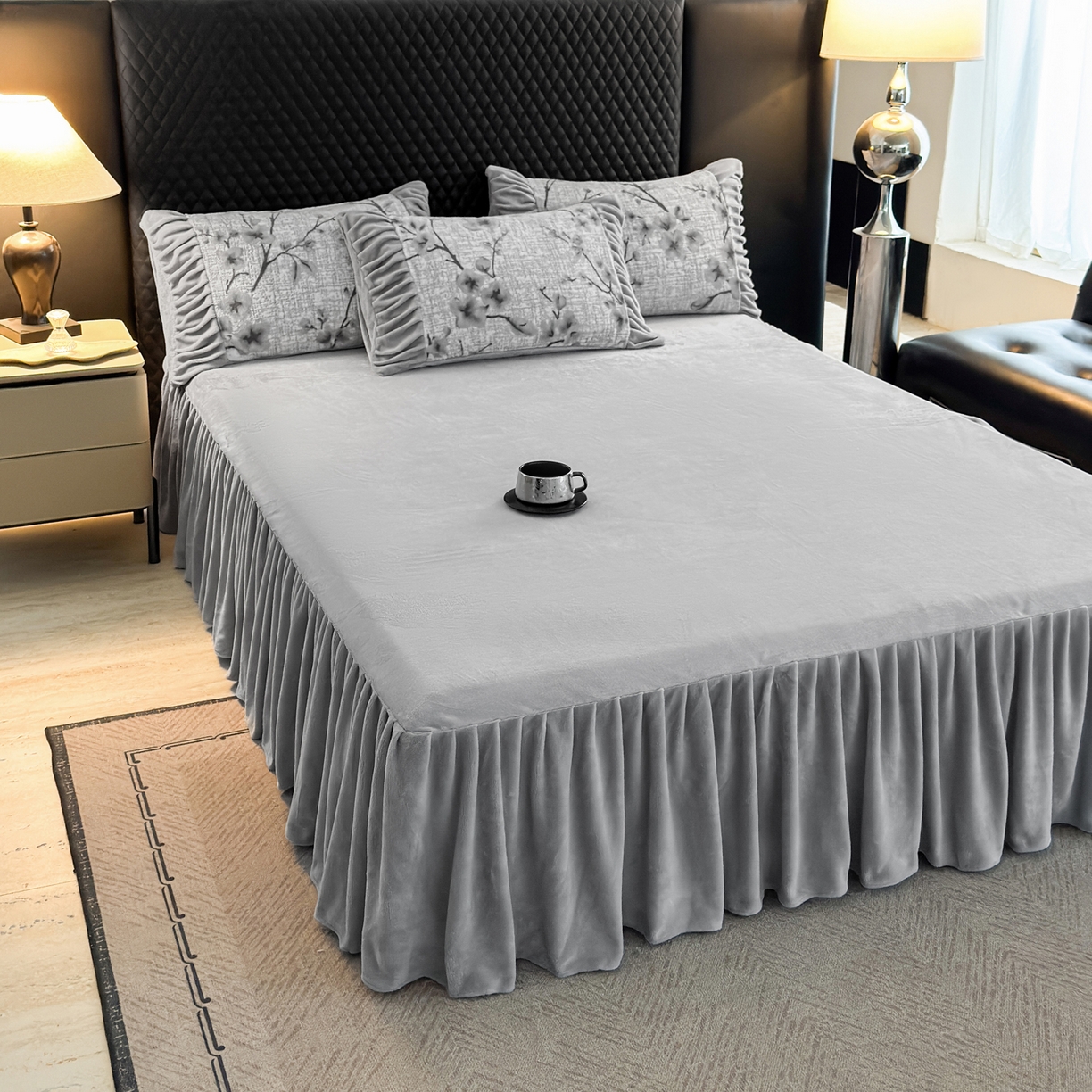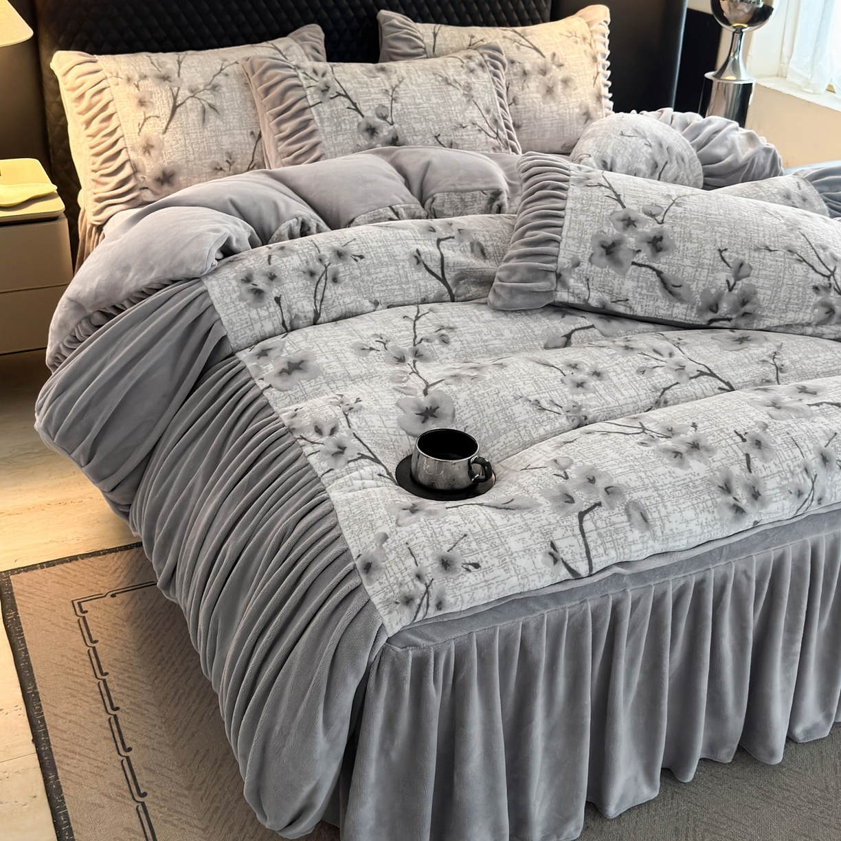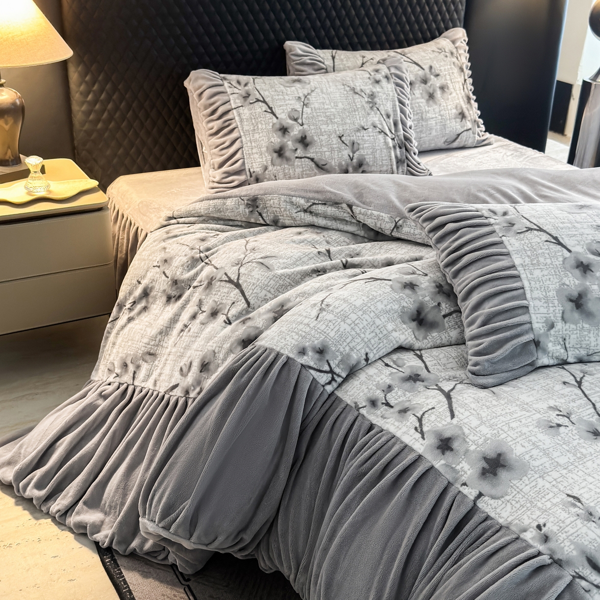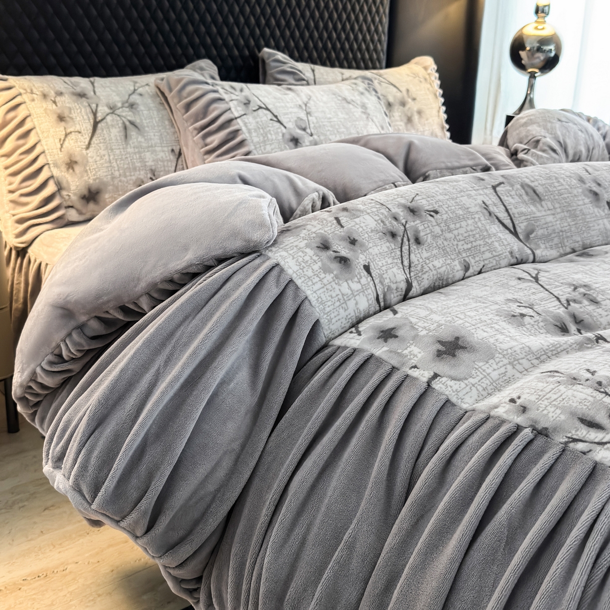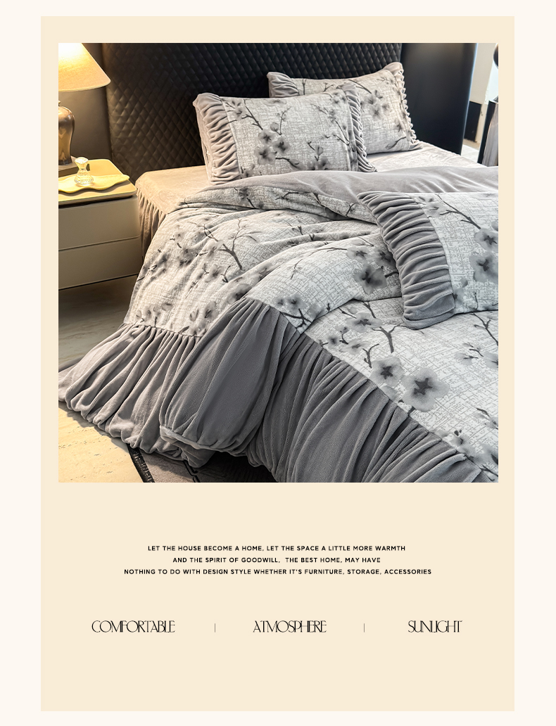 > 莱登卡奴 2025新款高克重牛奶绒雕花法式轻奢款床单床裙系列四件套 轻奢琳瑜-银灰