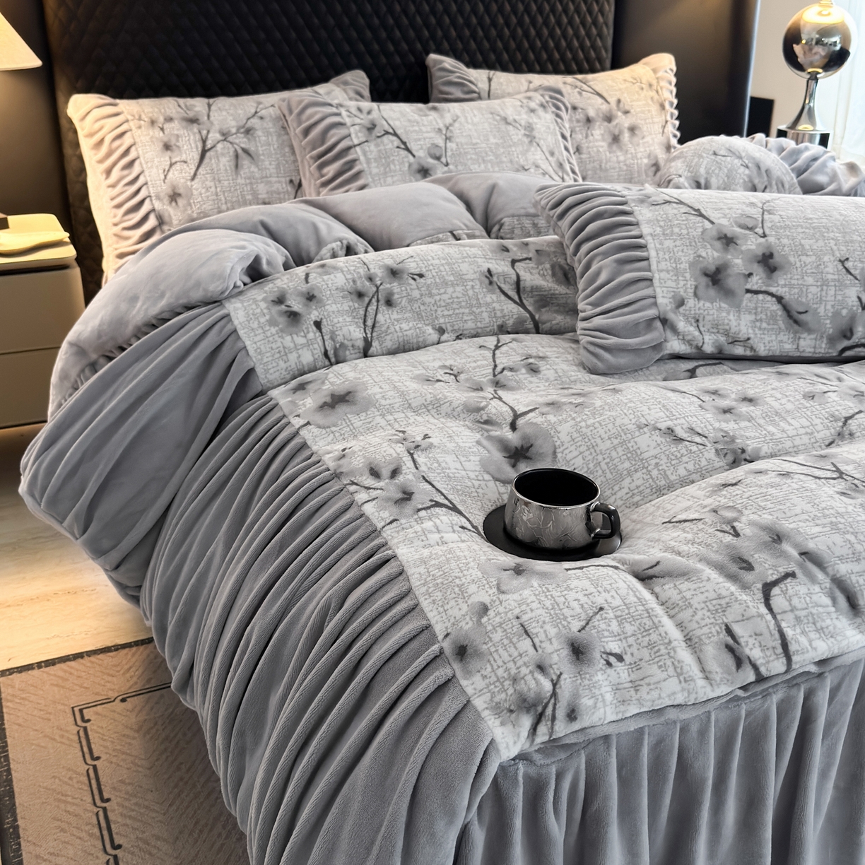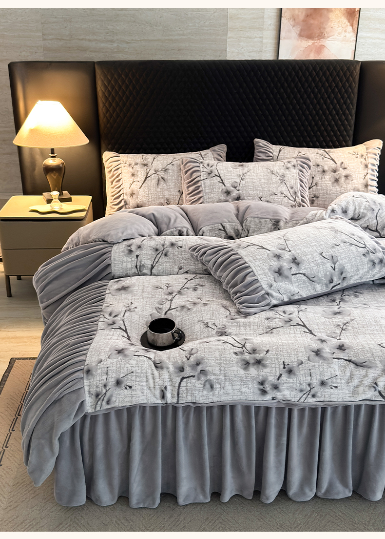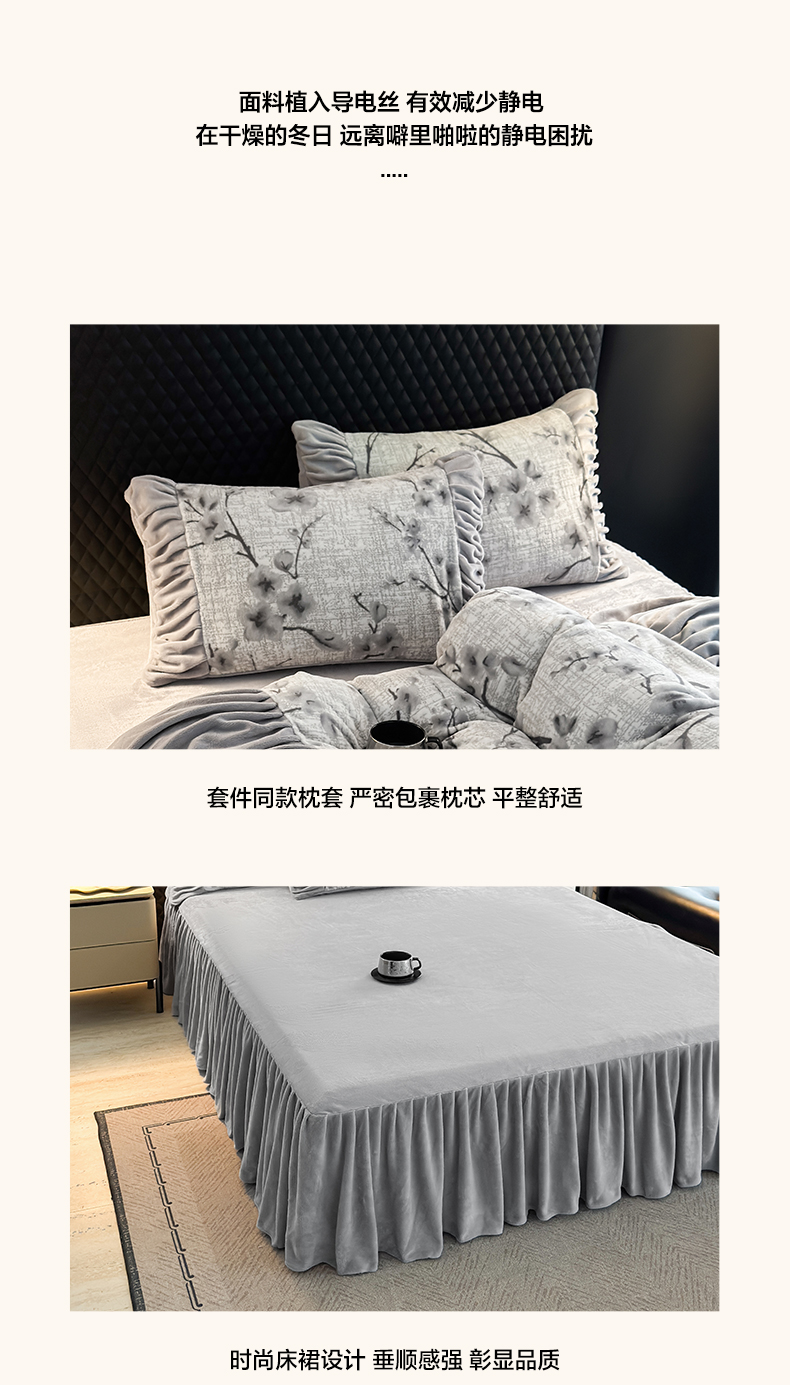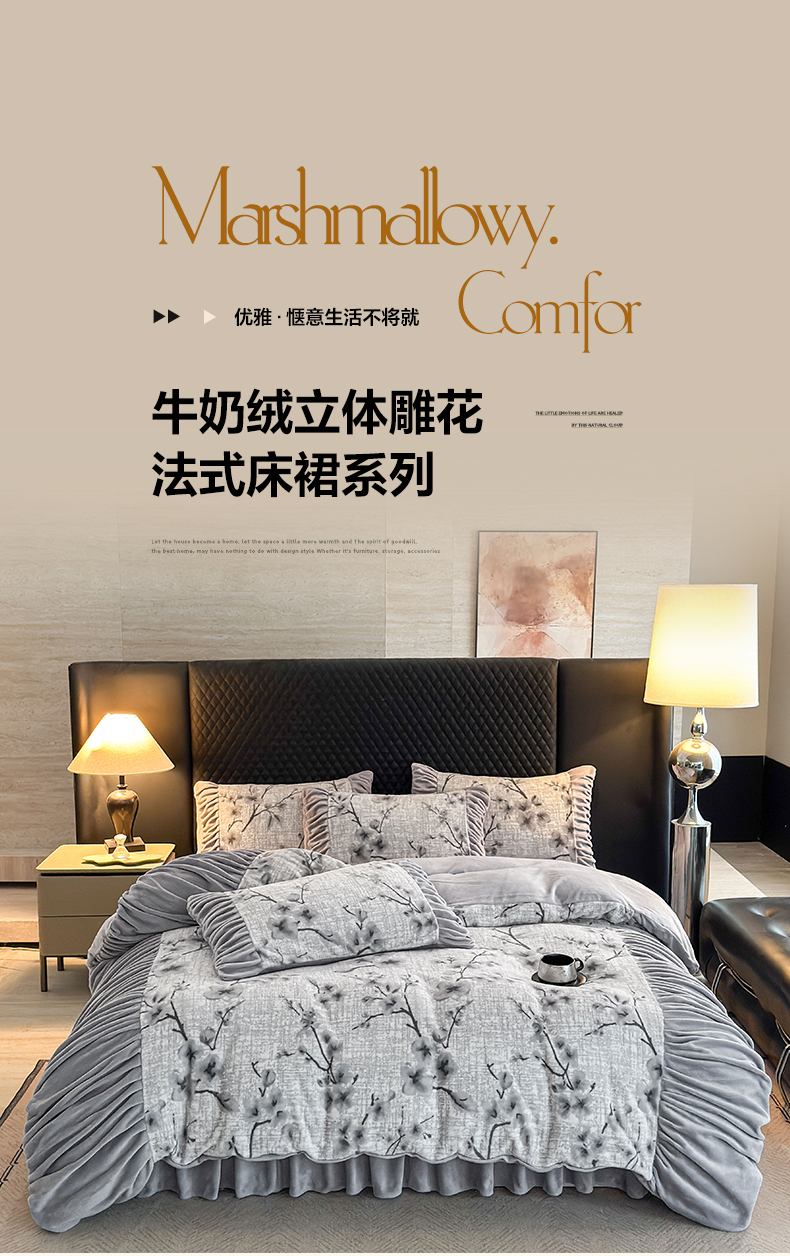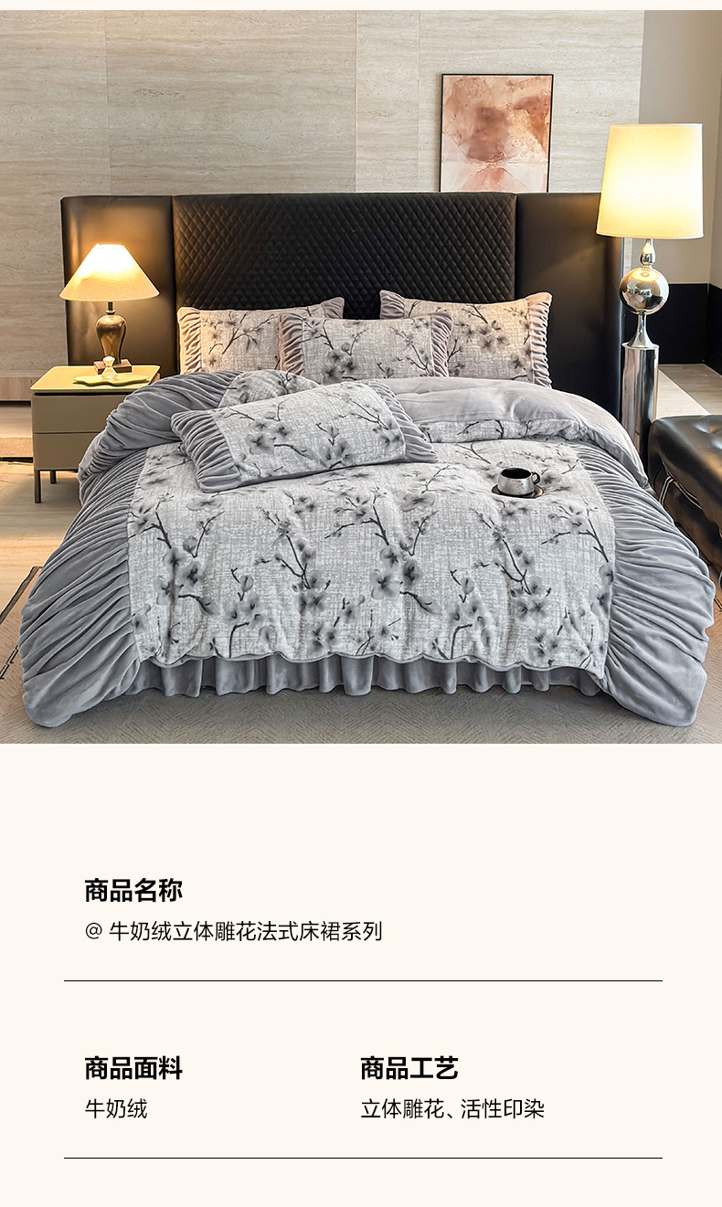 2025新款高克重牛奶绒雕花法式轻奢款床单床裙系列四件套