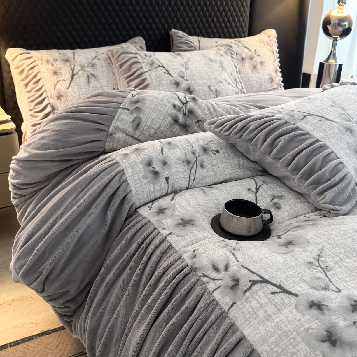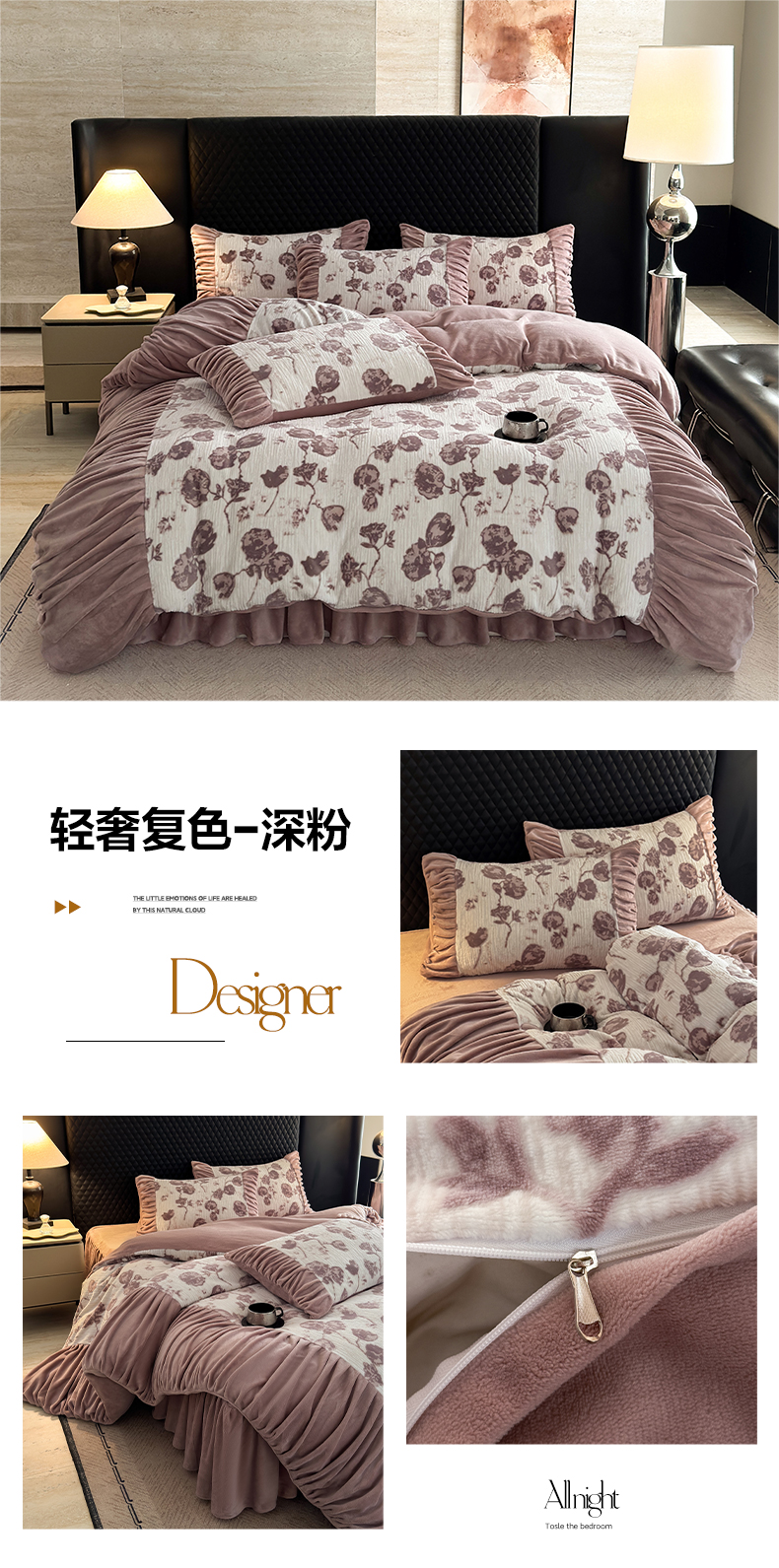 2025新款牛奶绒着色立体浮雕雕花绒-浪漫花开系列四件套