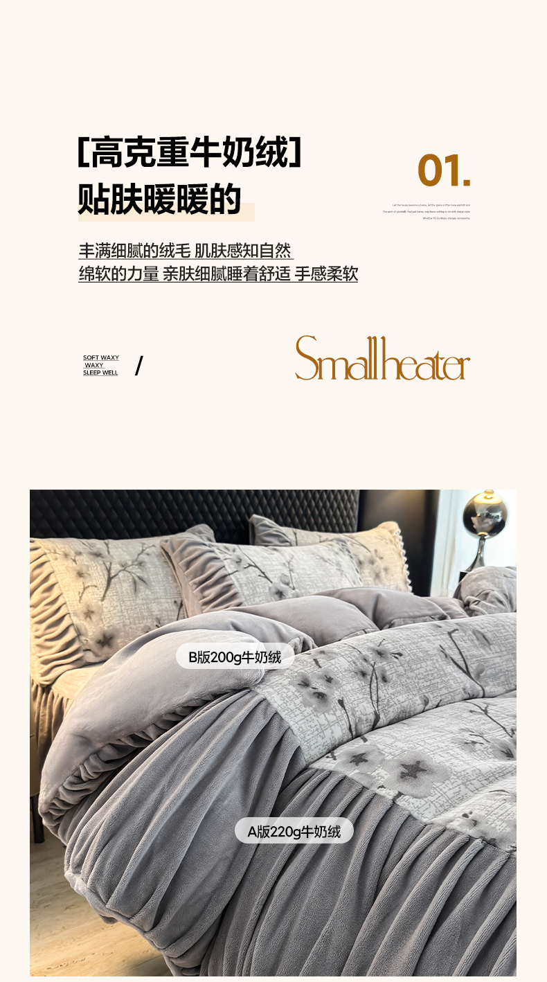 2025新款A类高克重牛奶绒泡泡绒印花美拉德风系列四件套